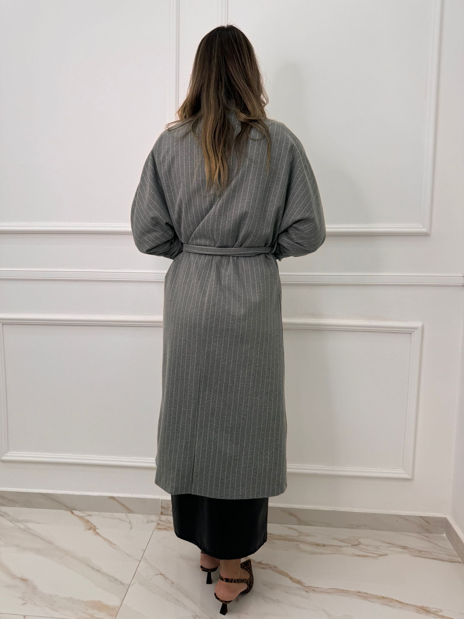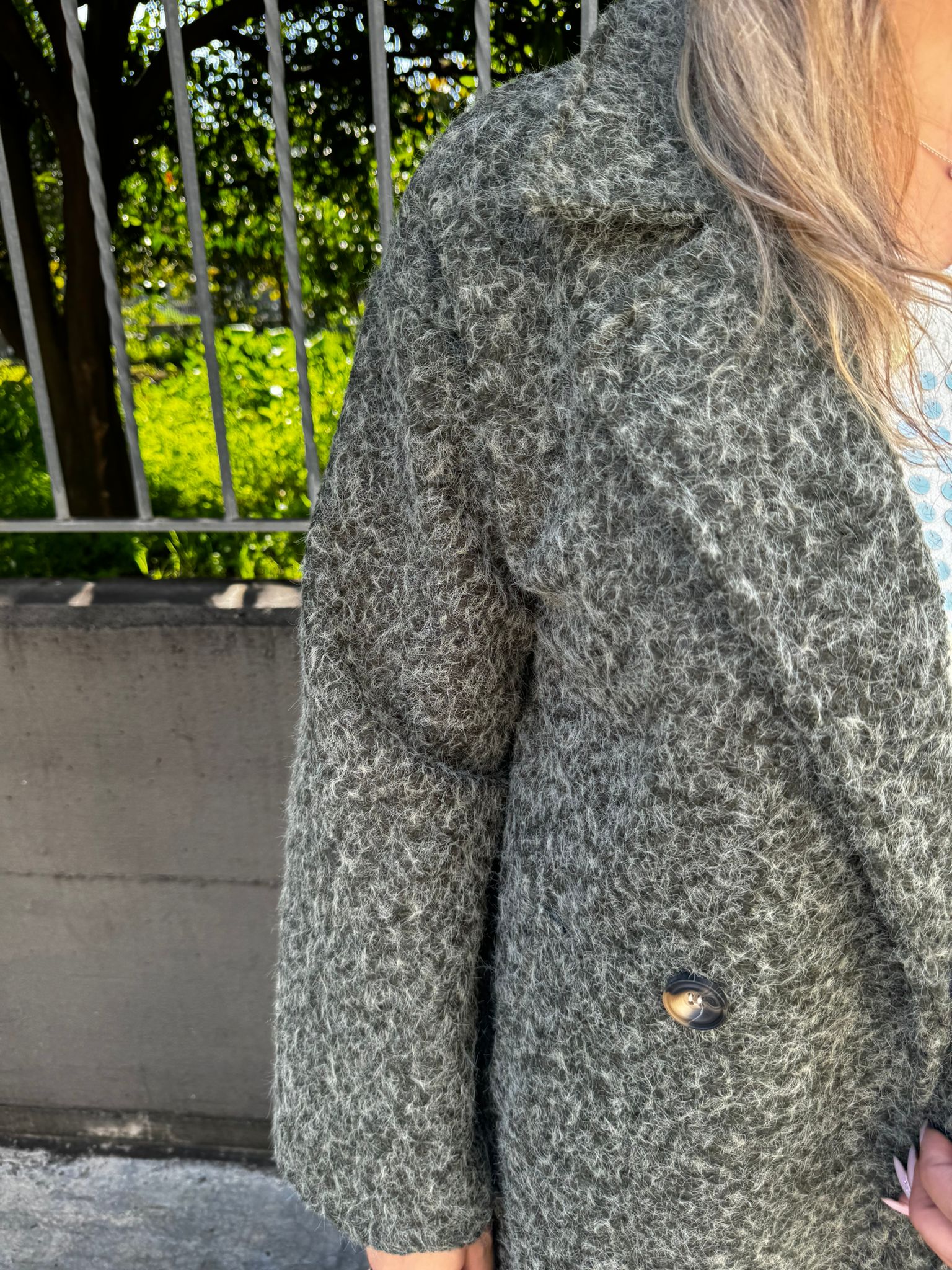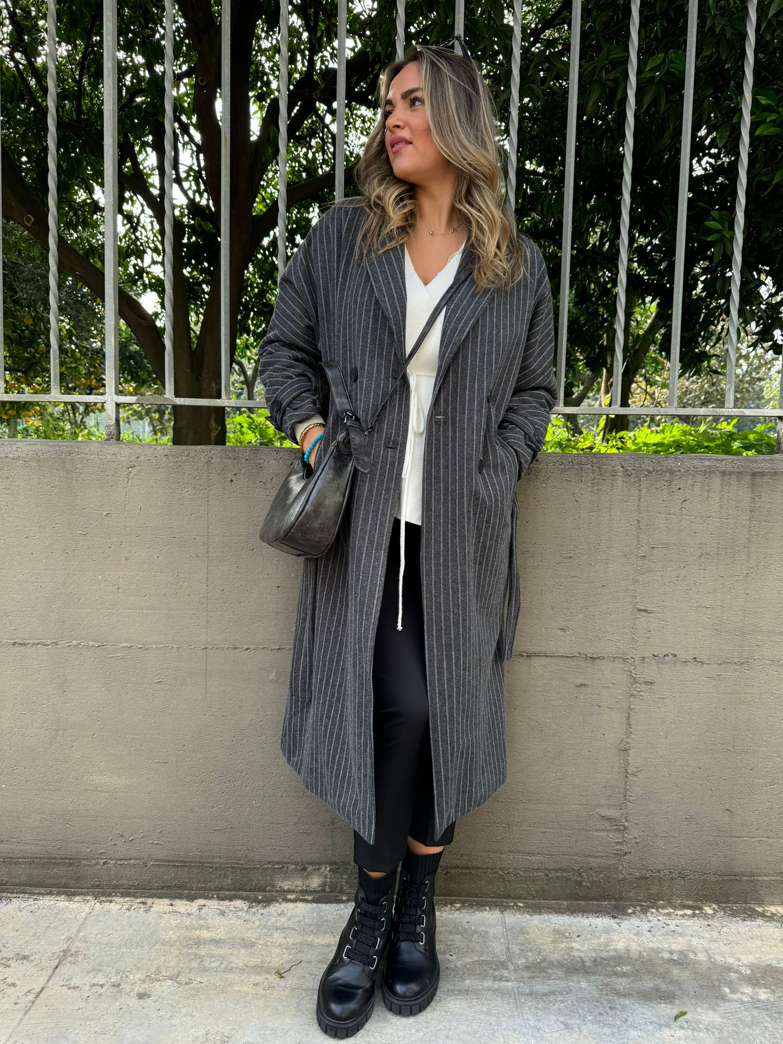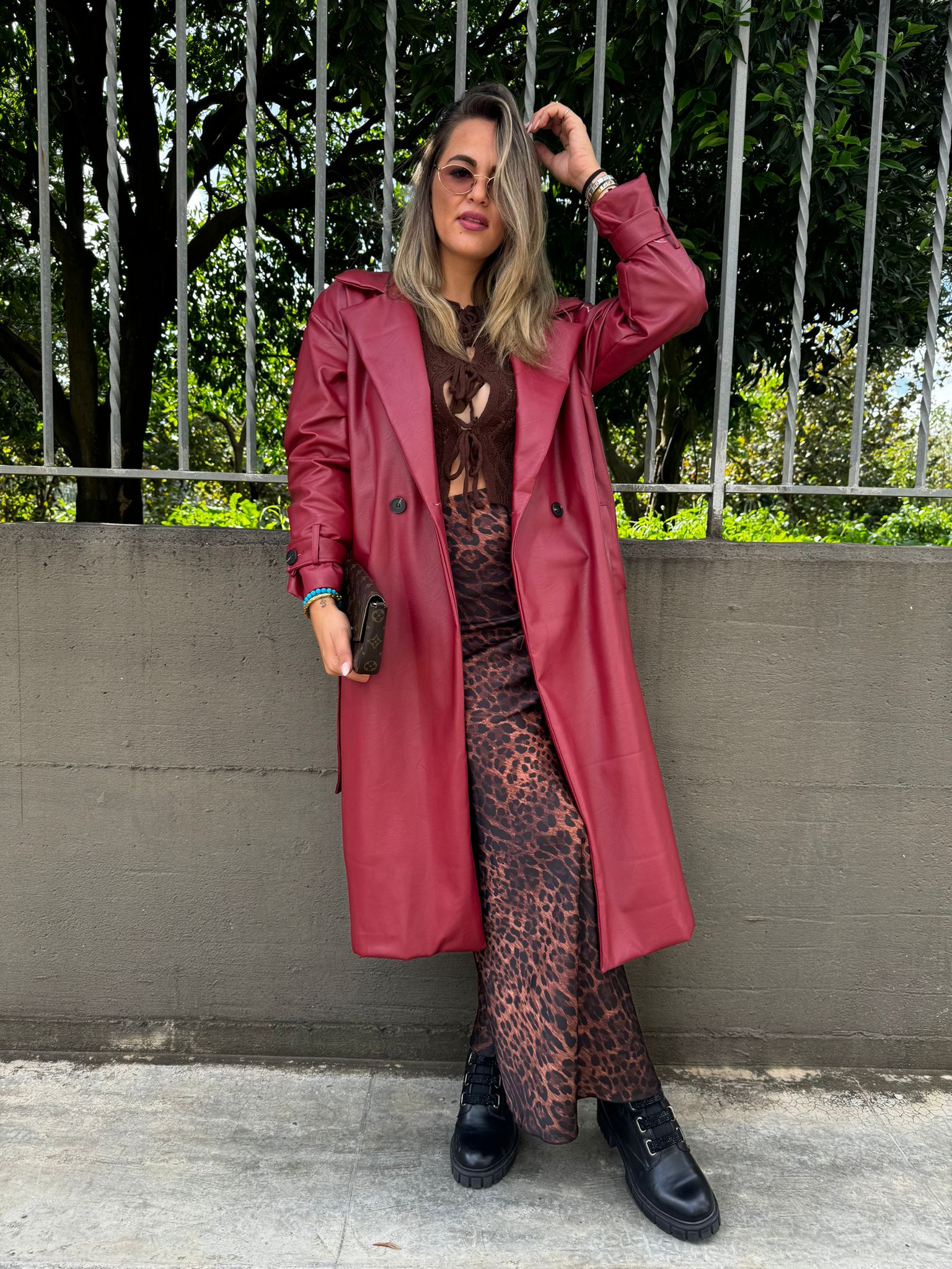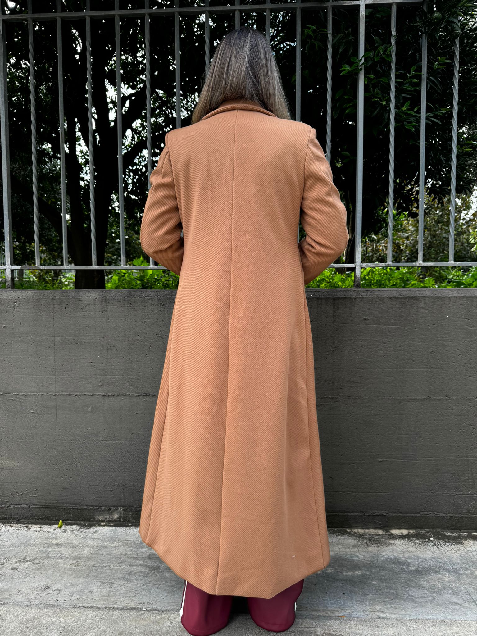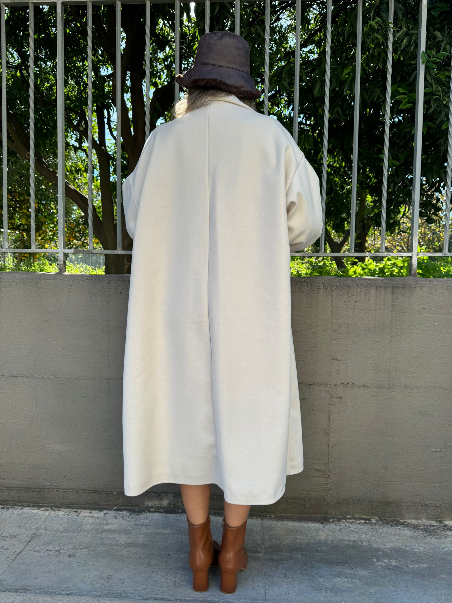 Cappotto doppio petto con cintura e fibbie eco pelle
