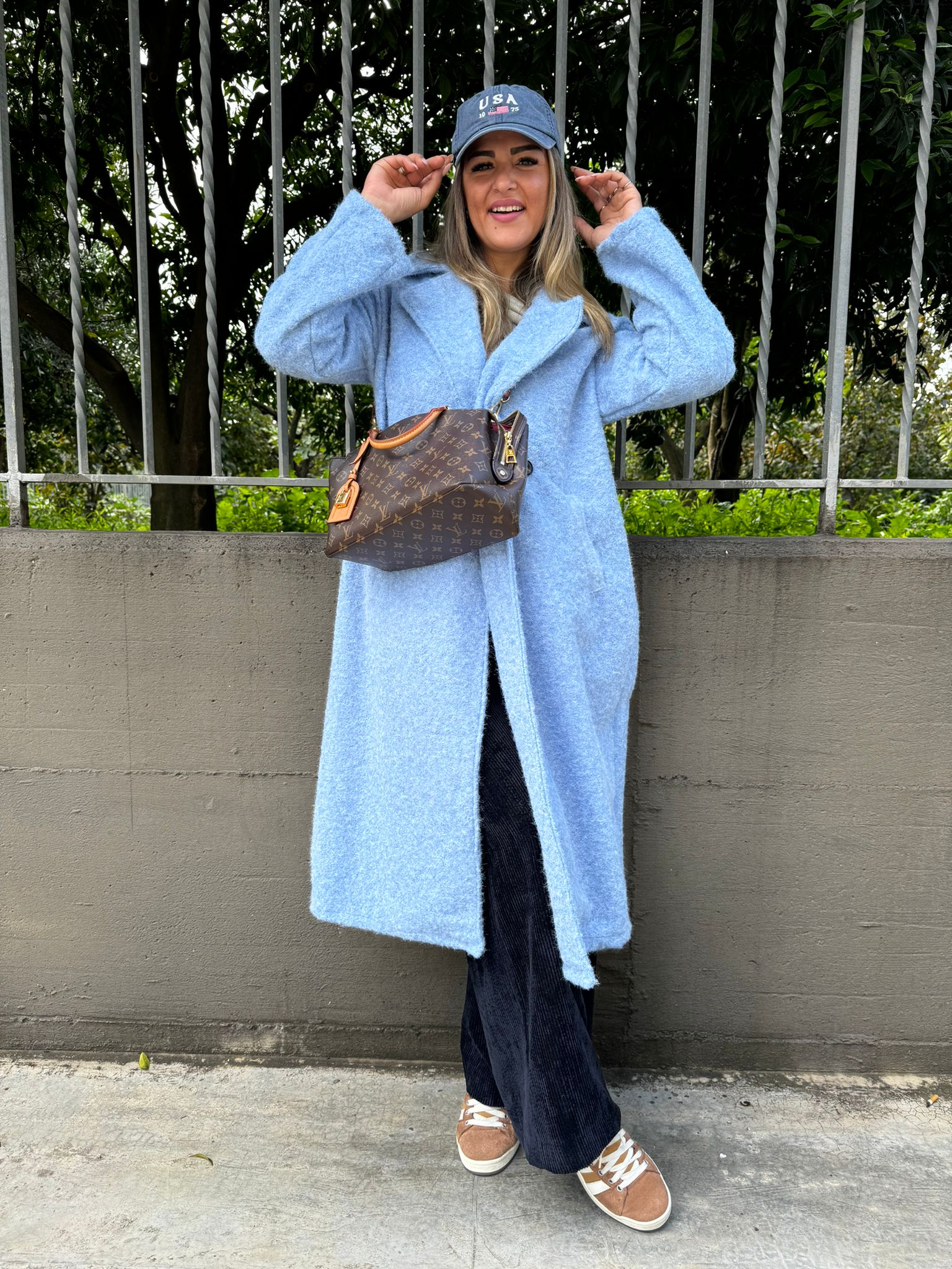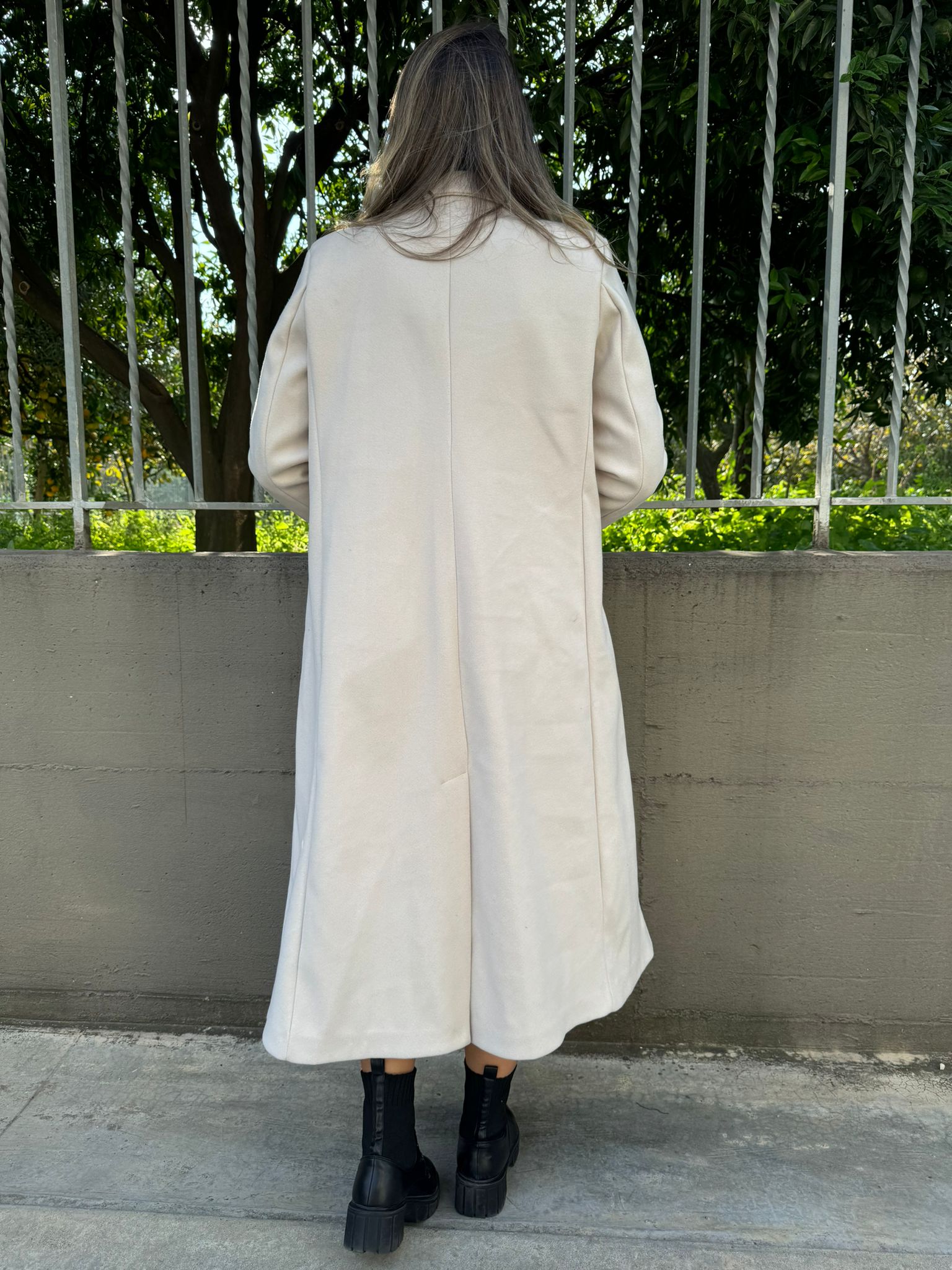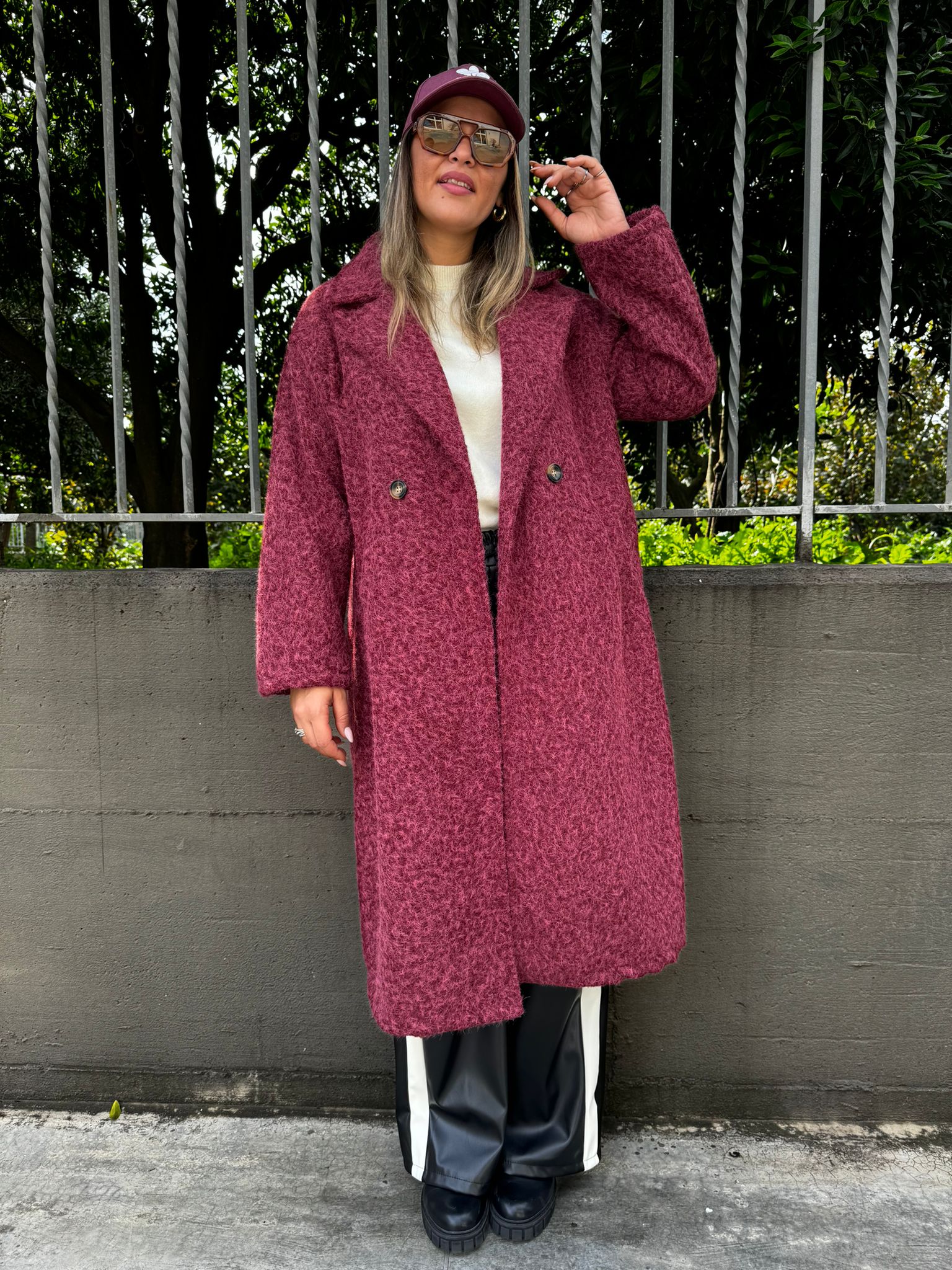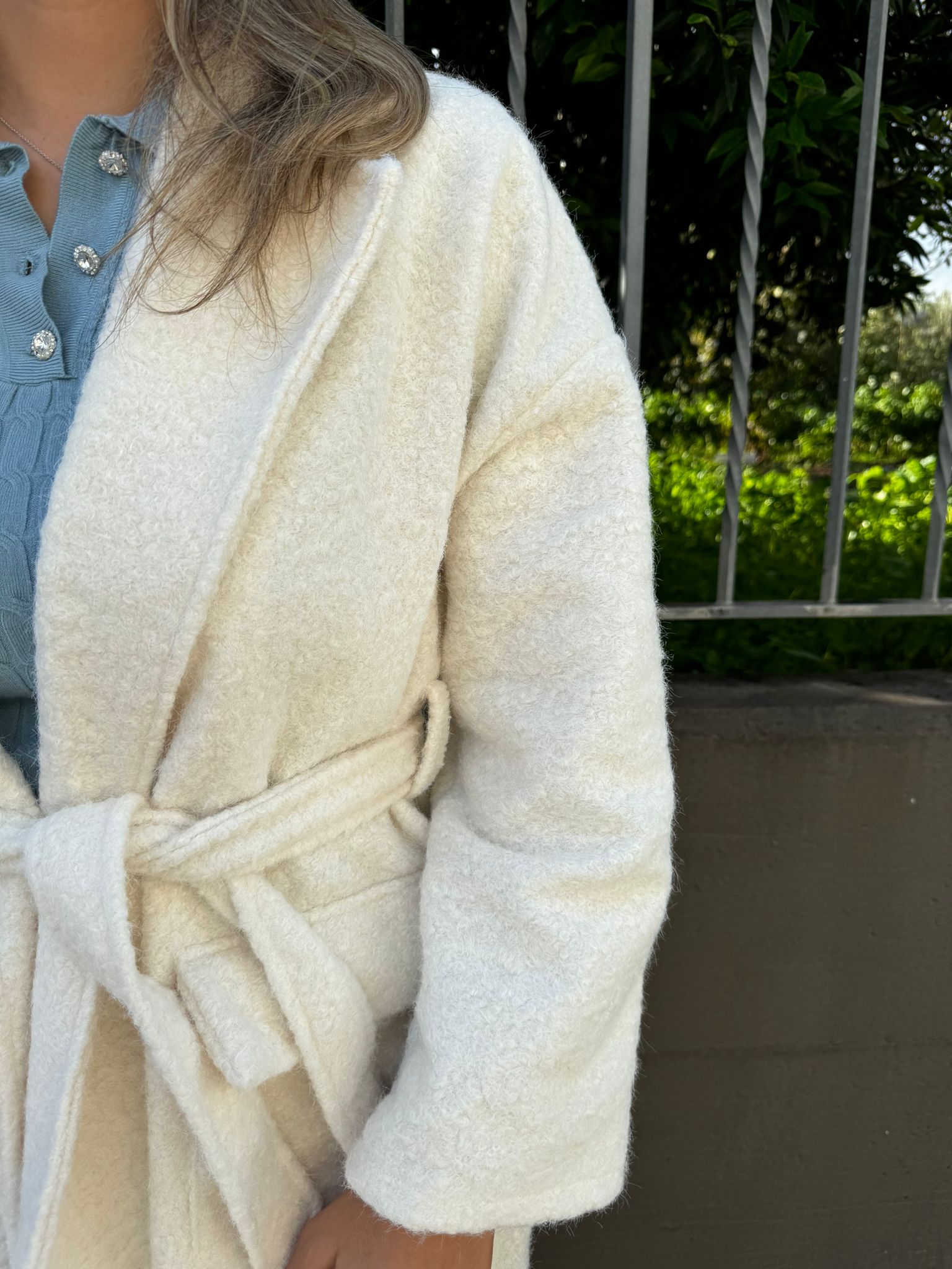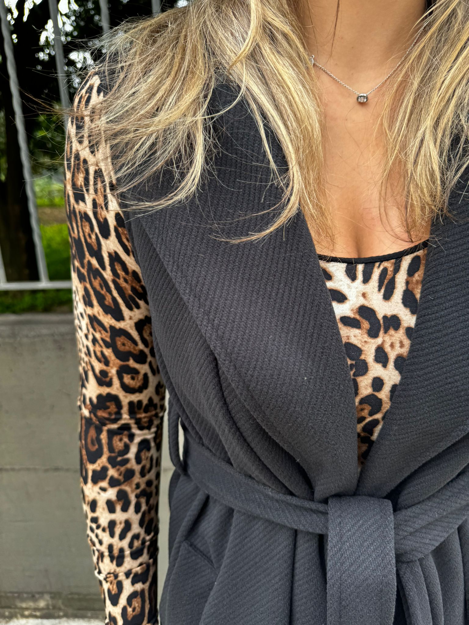 Cappotto doppio petto con cintura e fibbie eco pelle