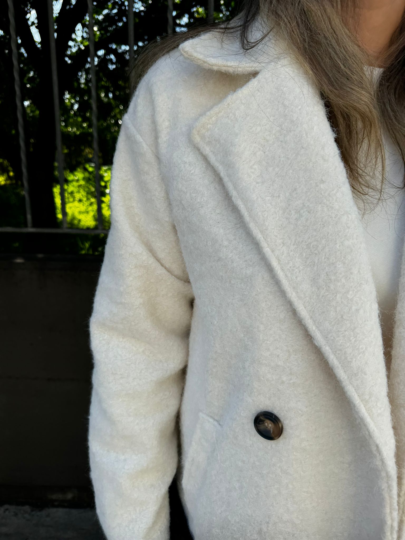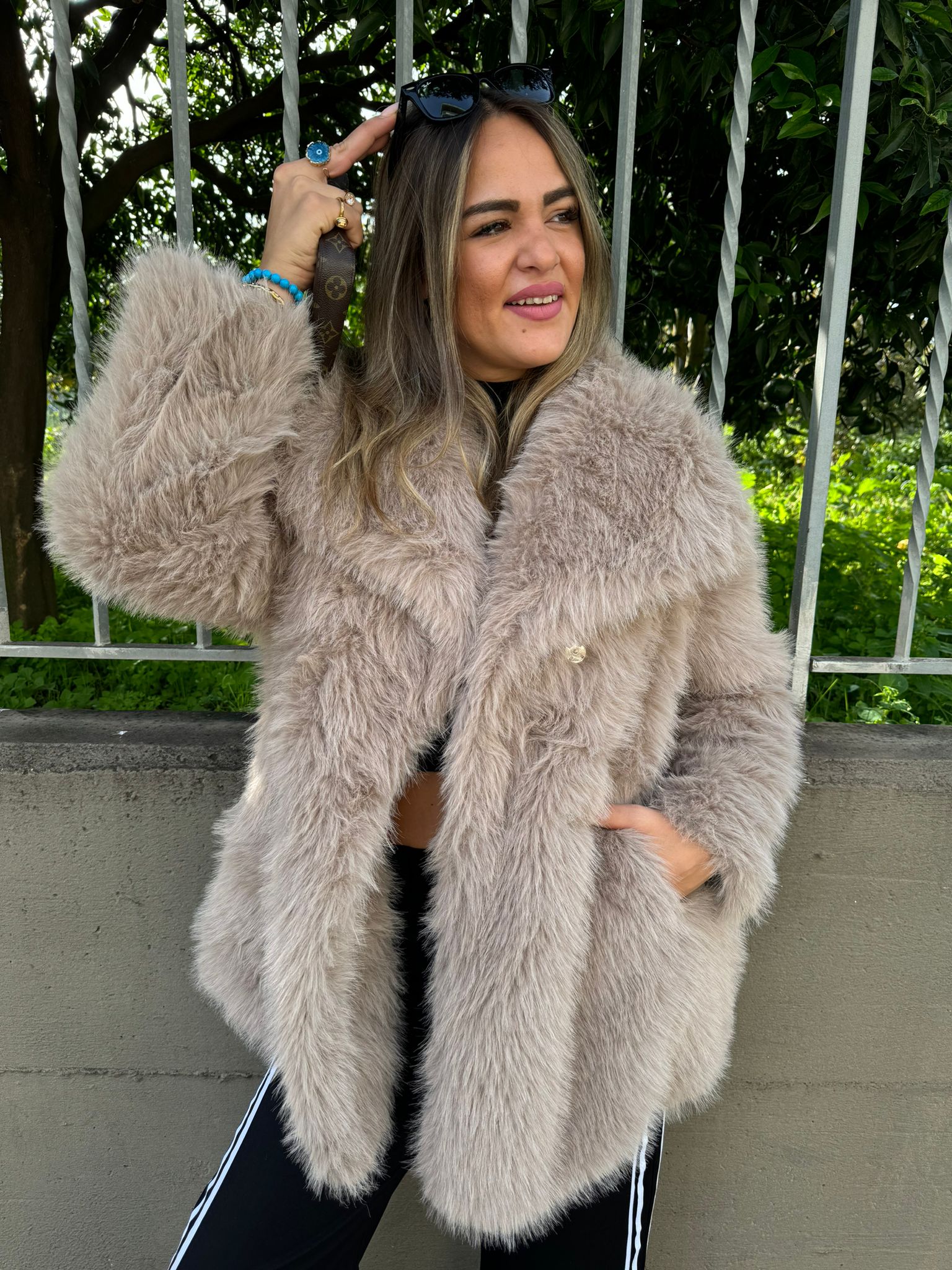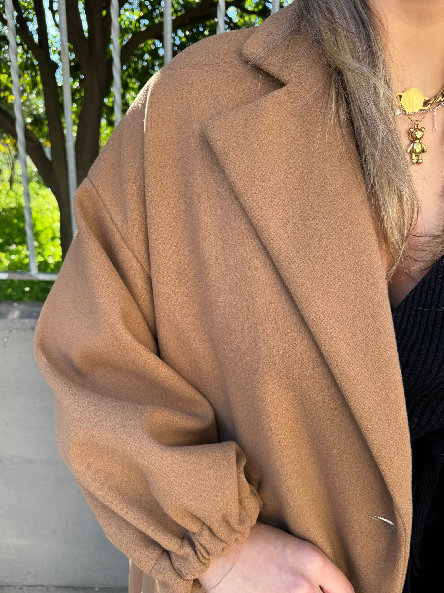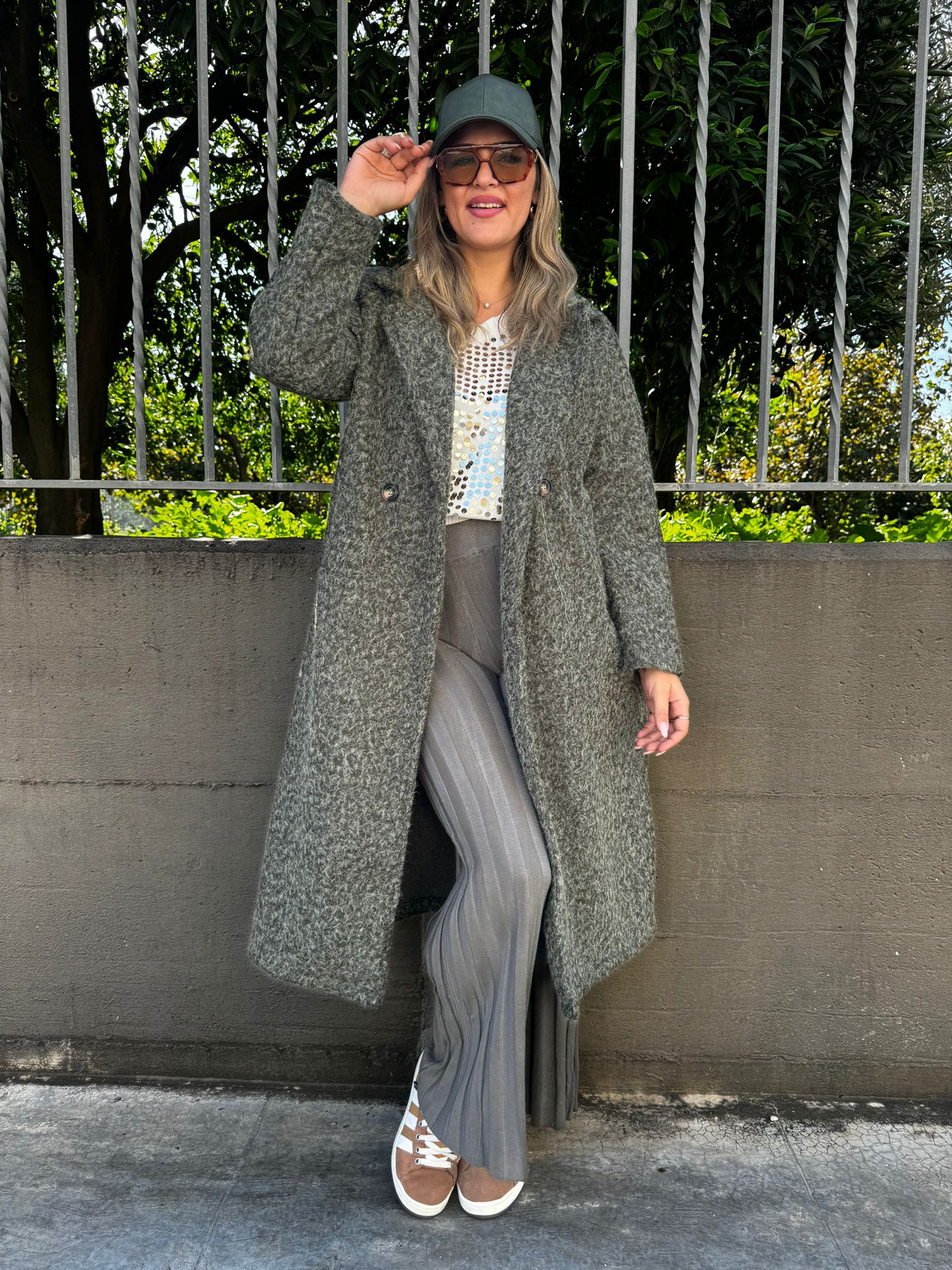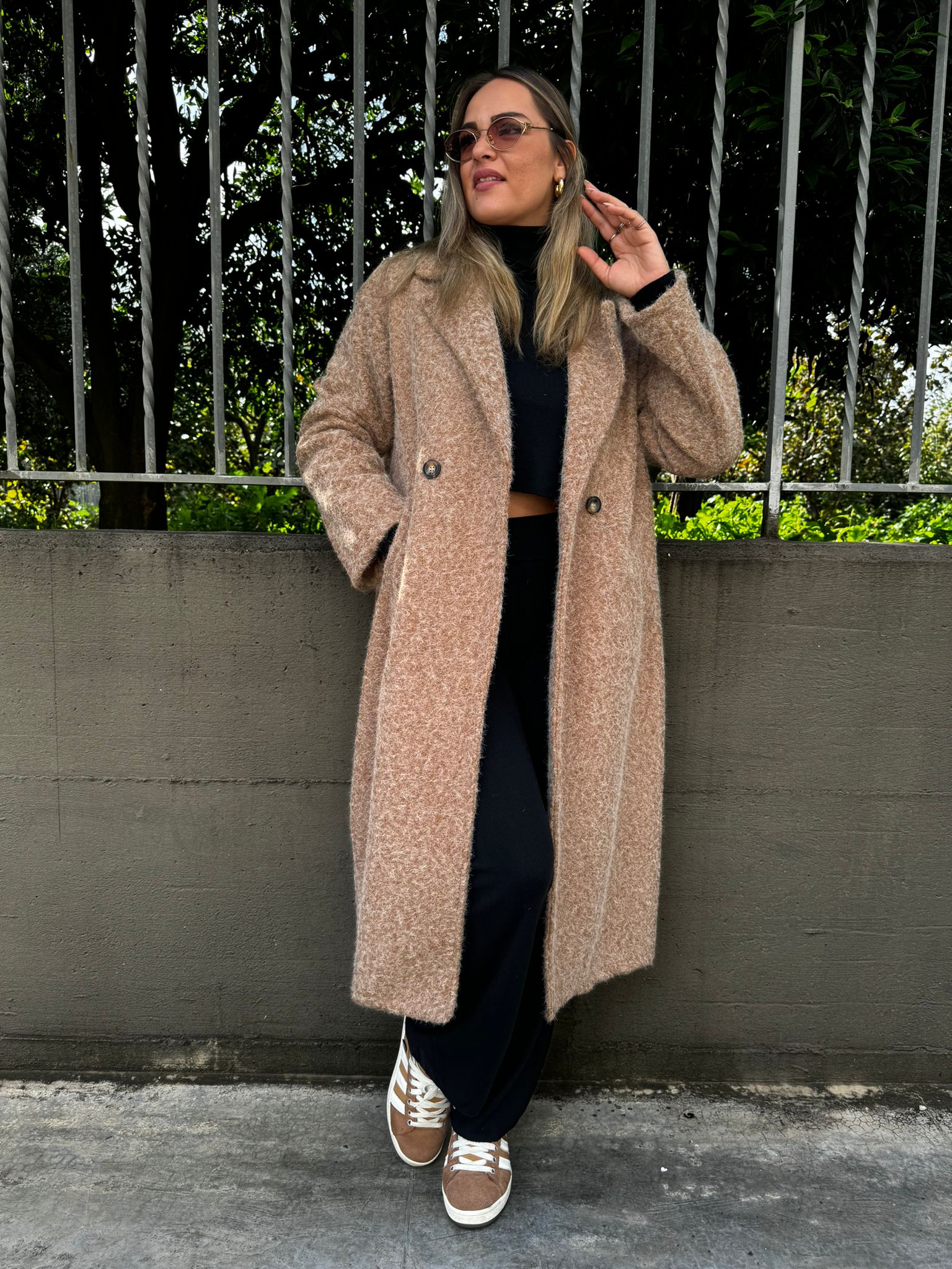 Cappotto doppio petto con cintura e fibbie eco pelle