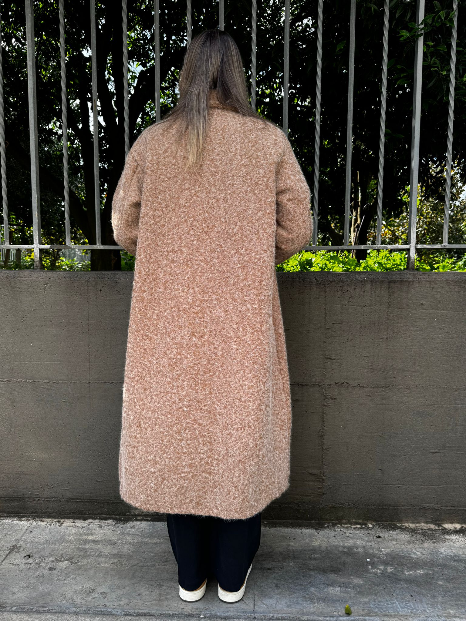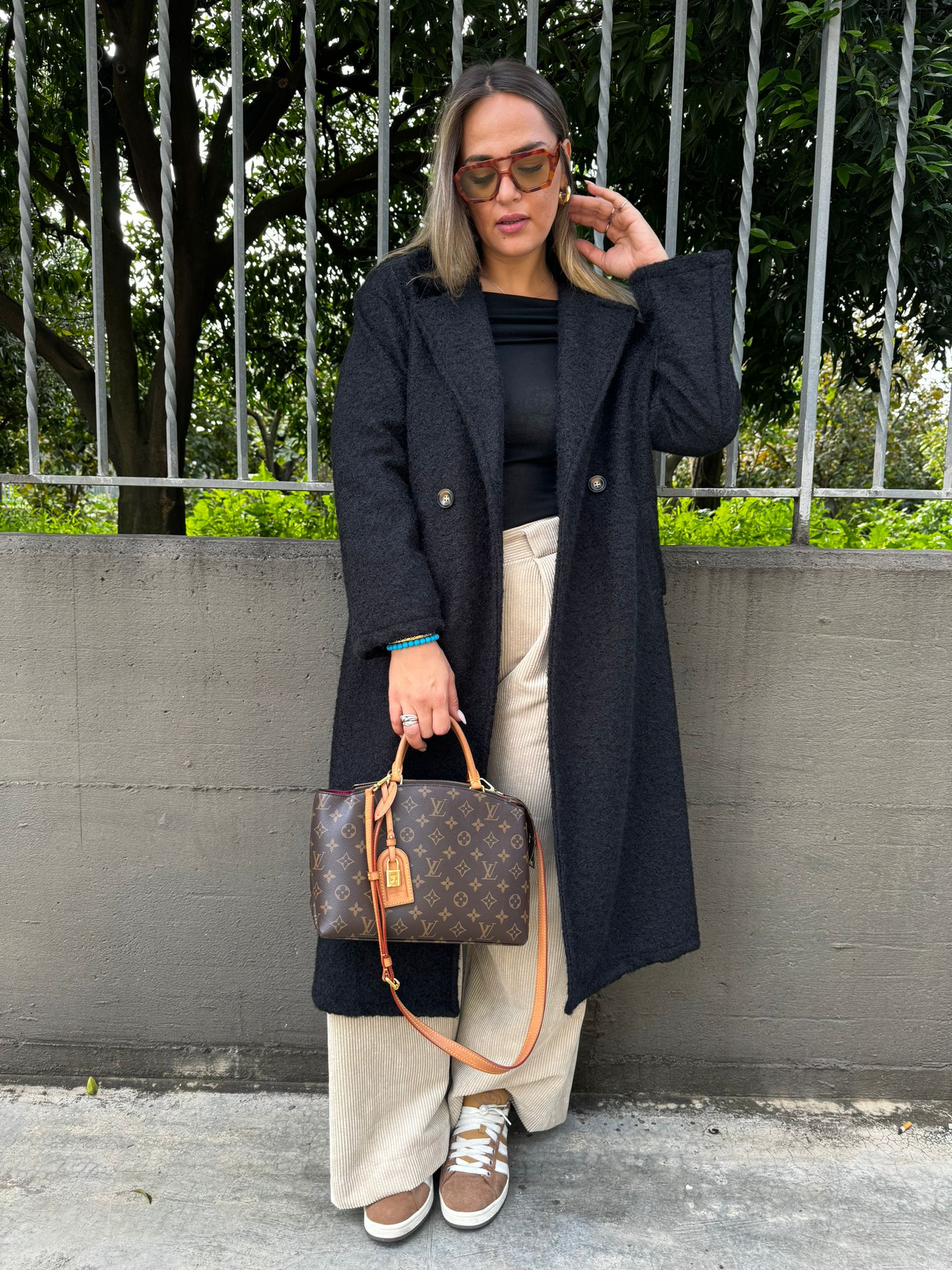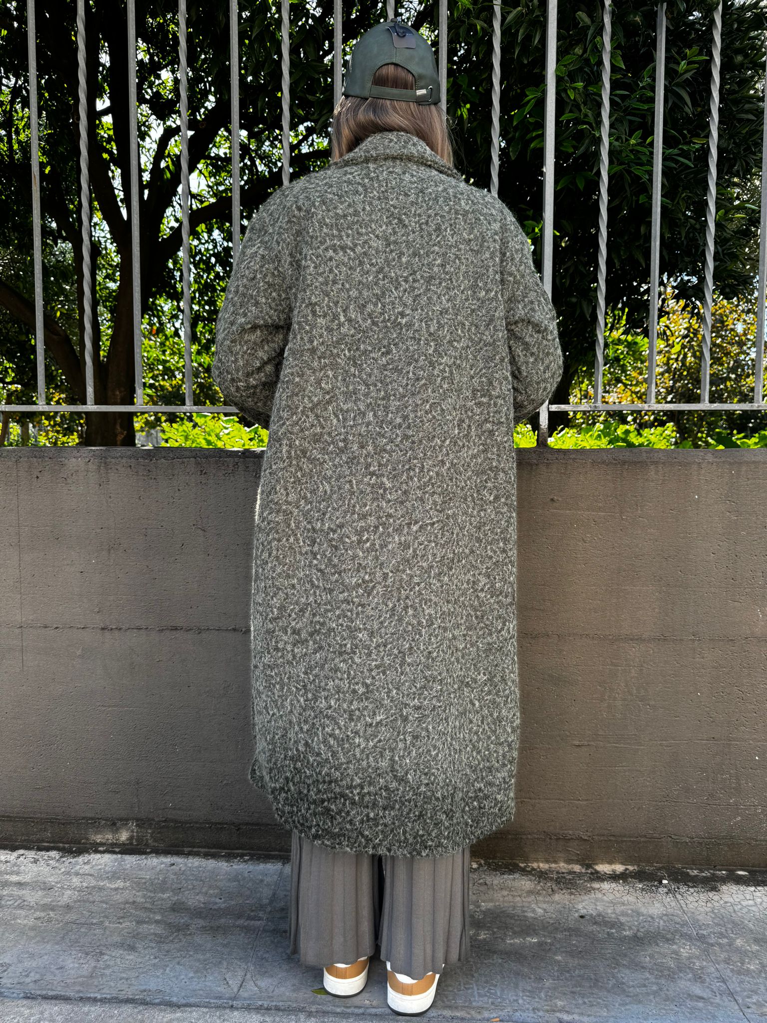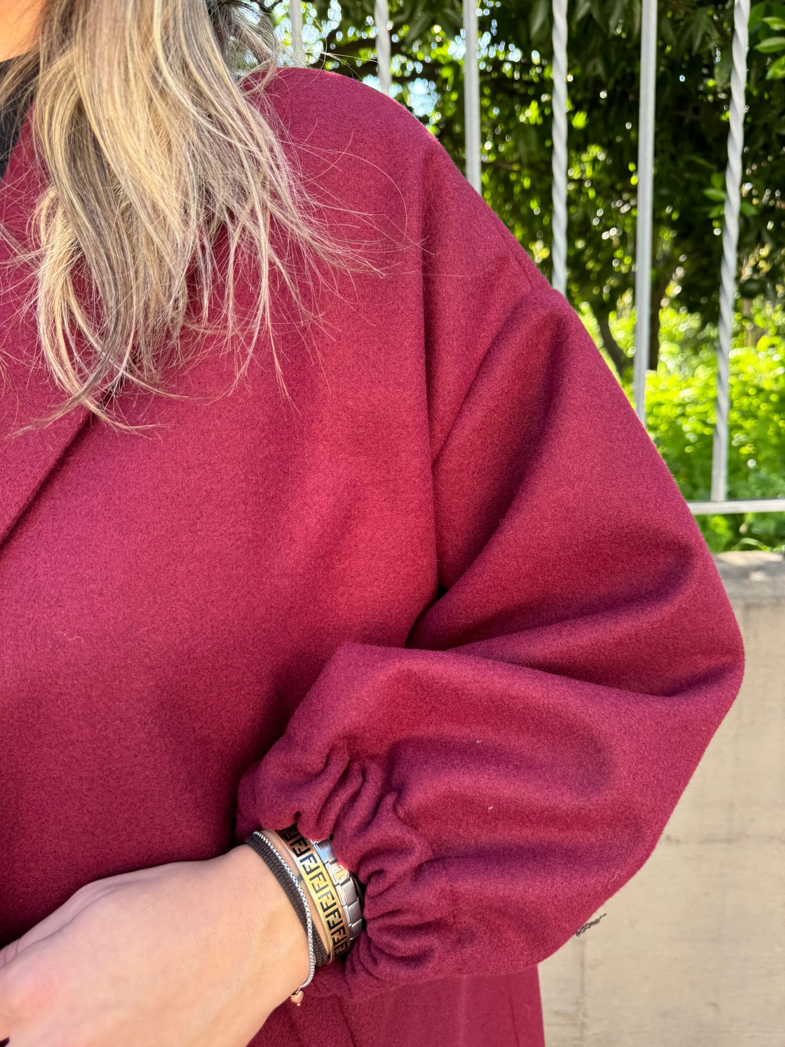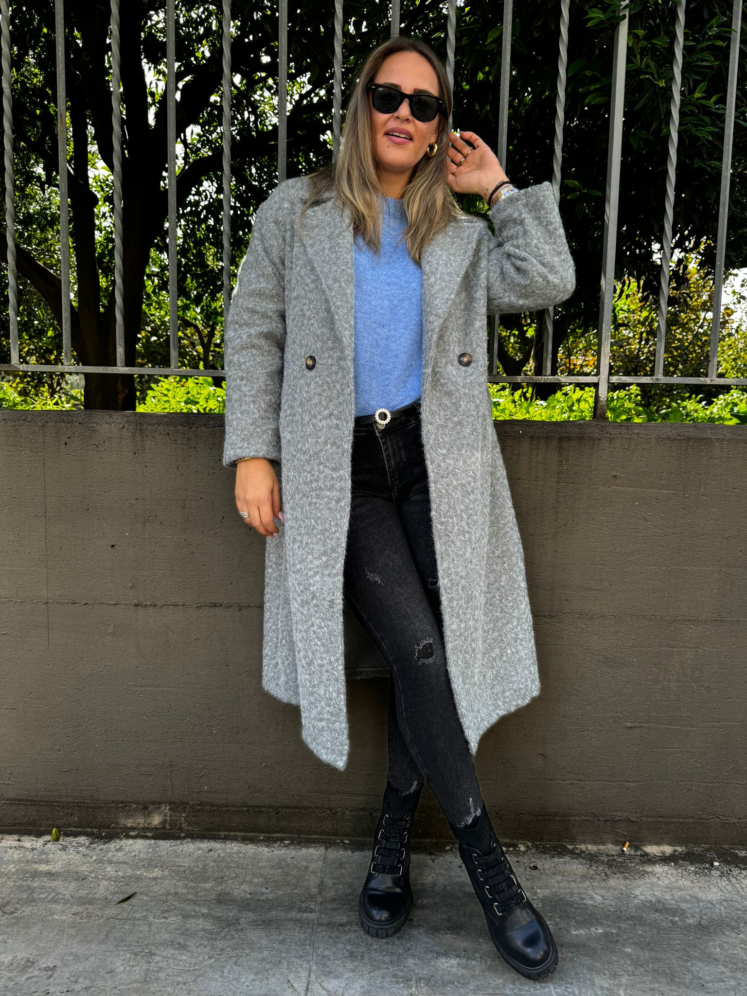 Cappotto doppio petto con cintura e fibbie eco pelle
