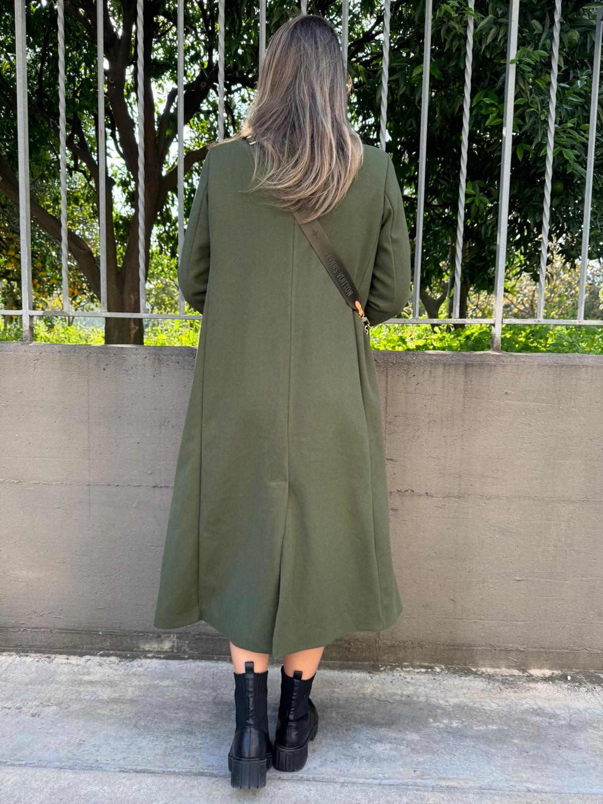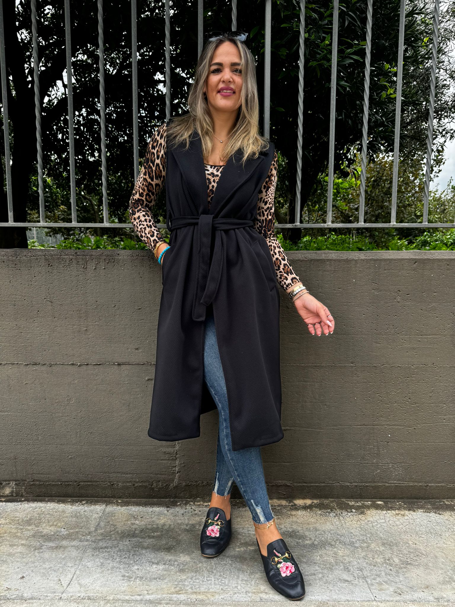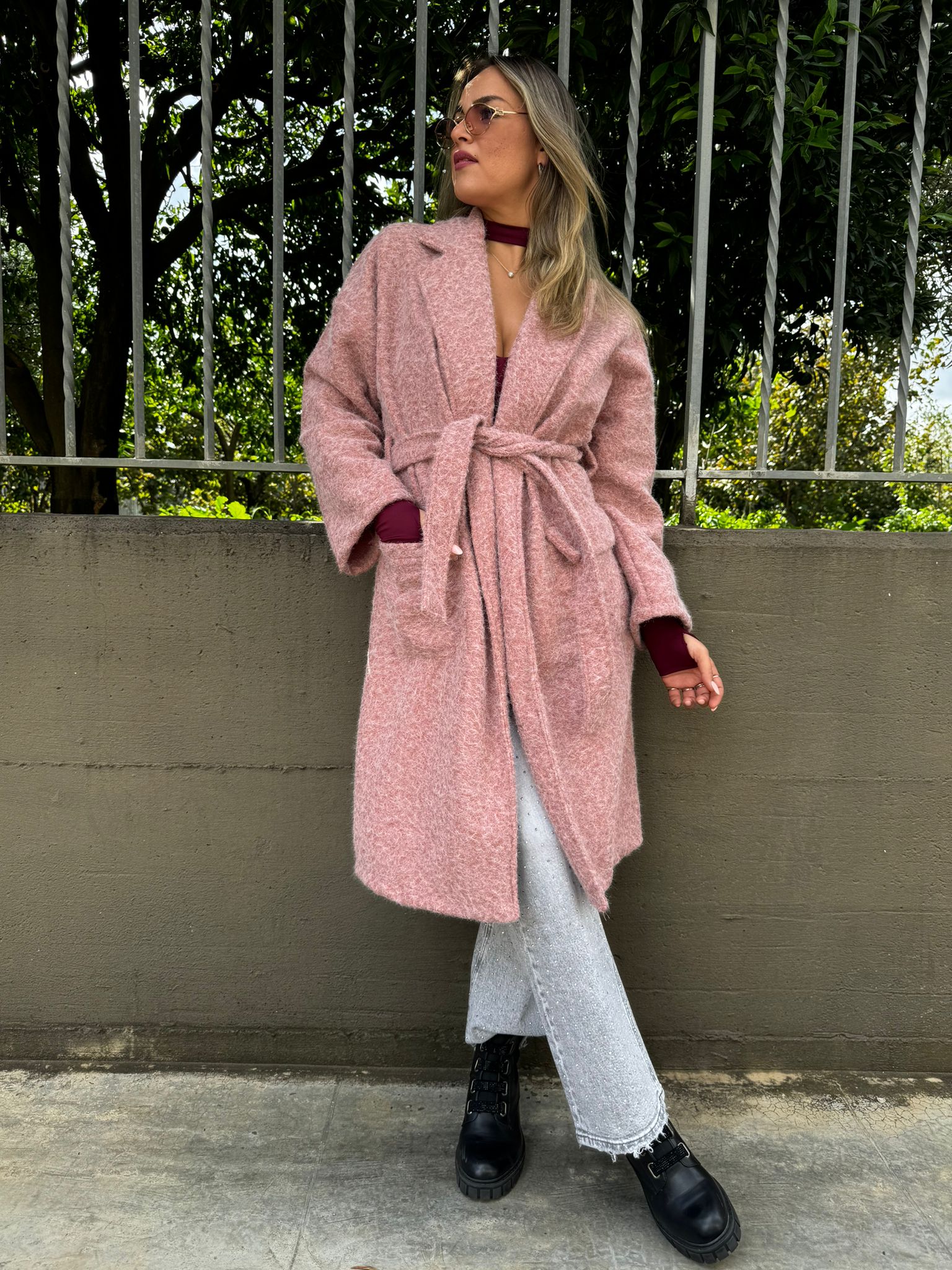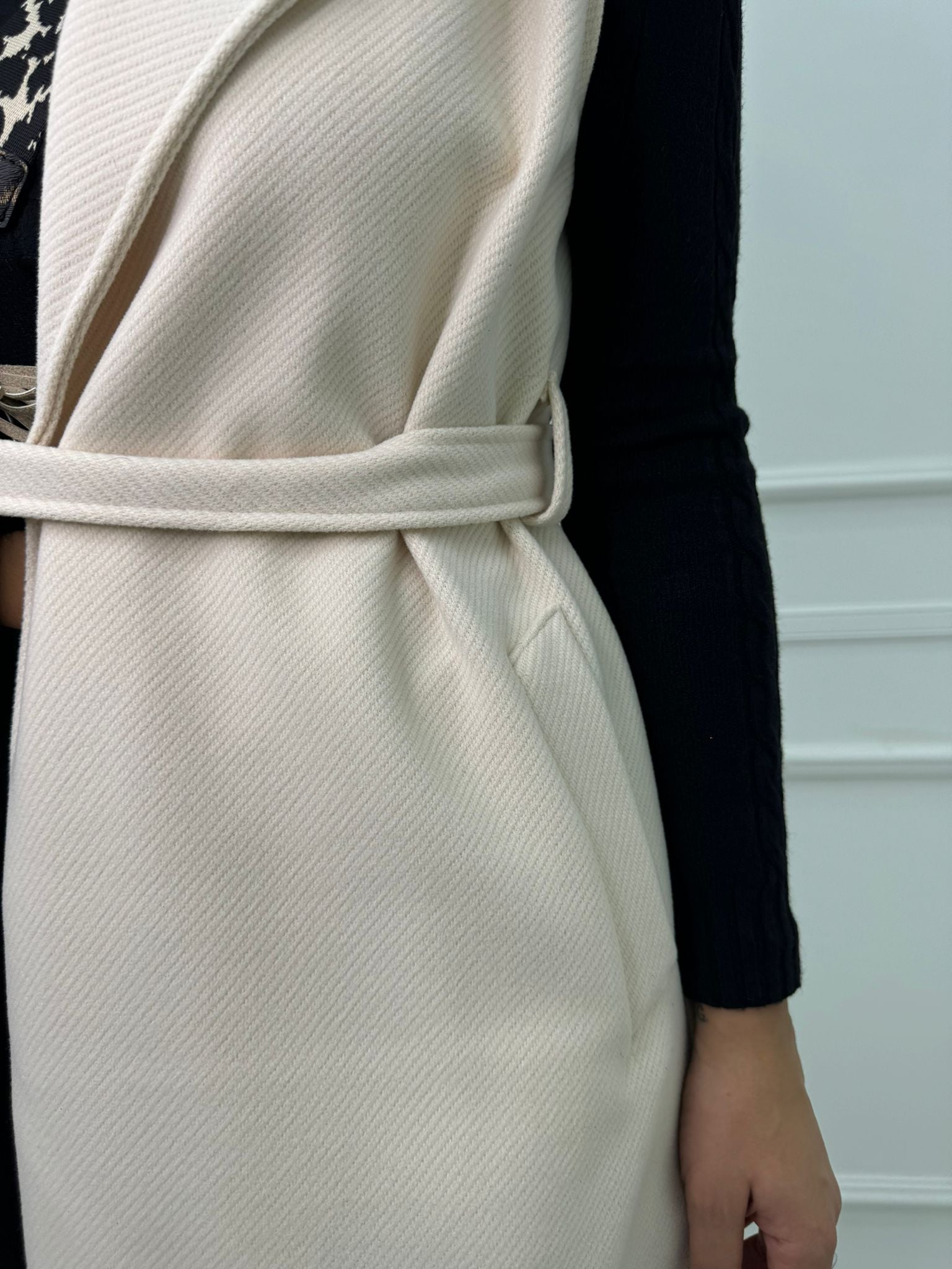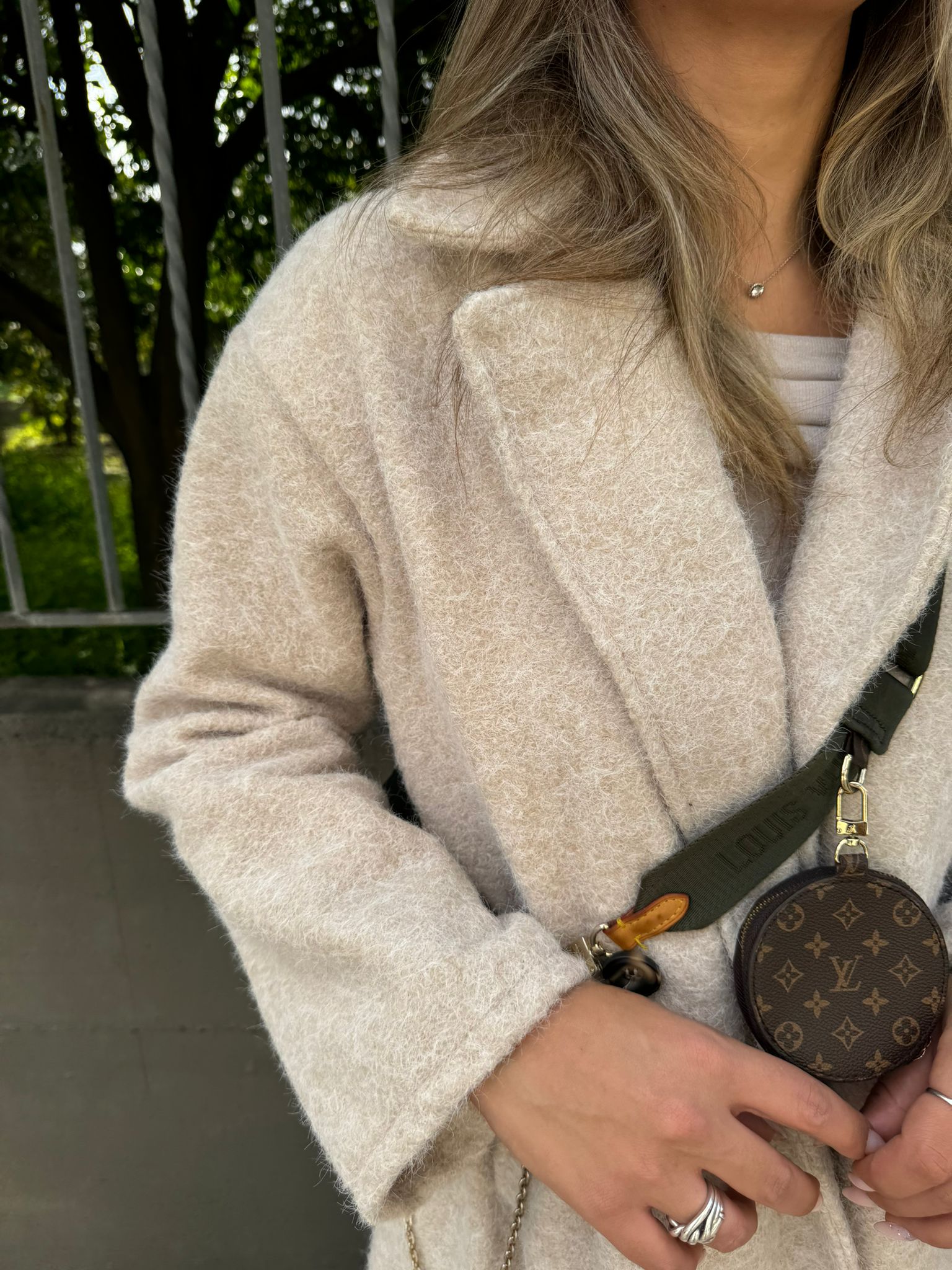 Cappotto doppio petto con cintura e fibbie eco pelle