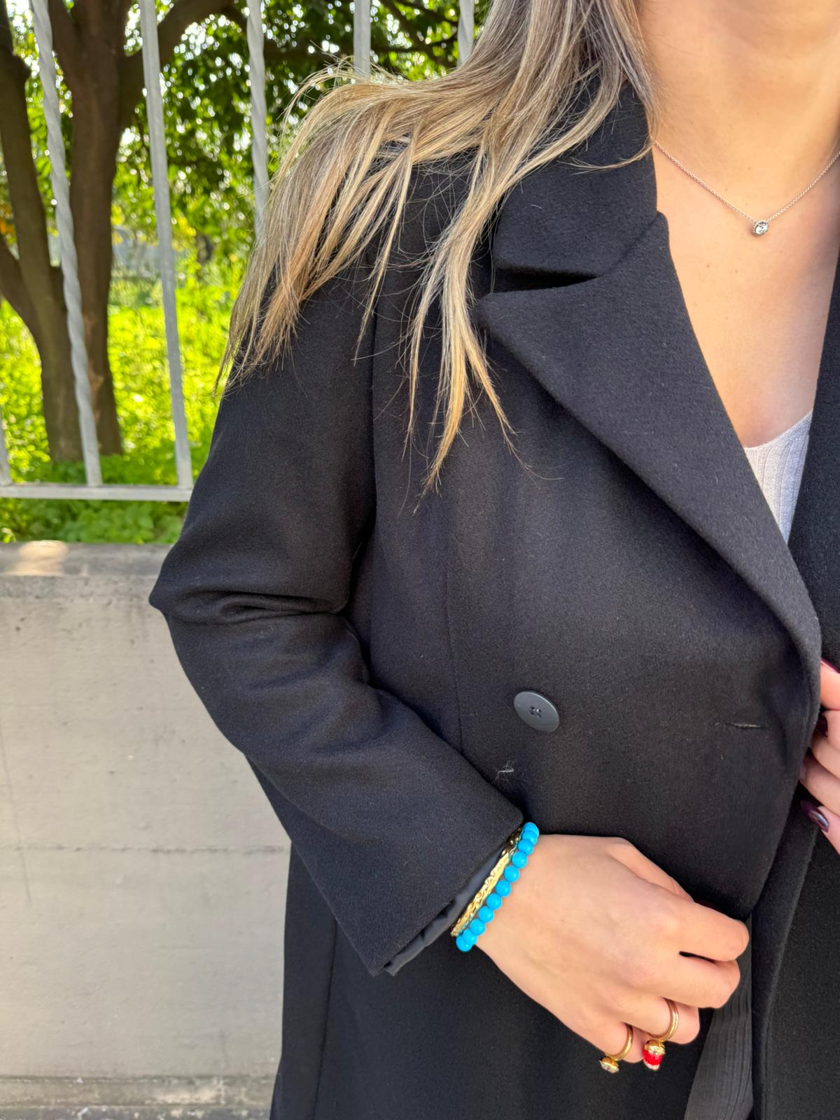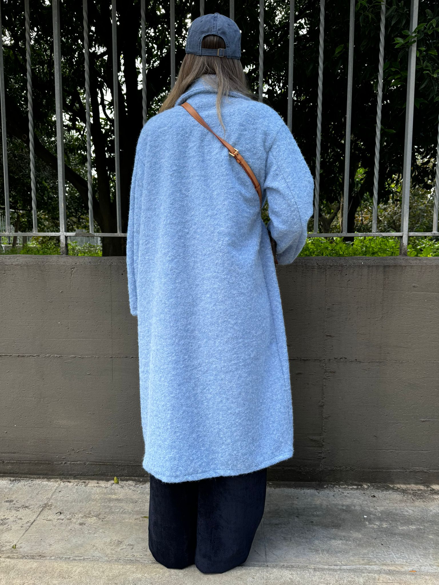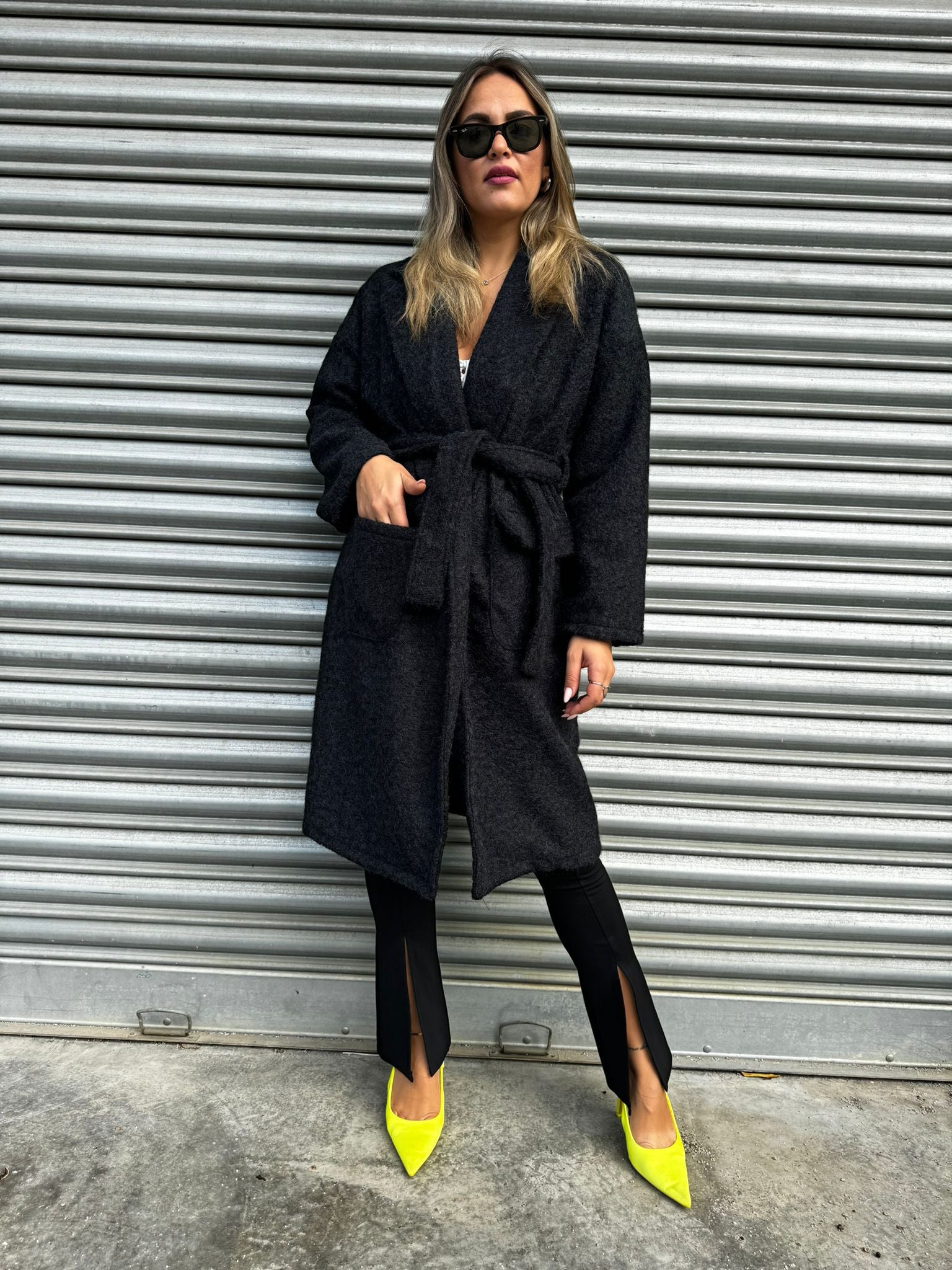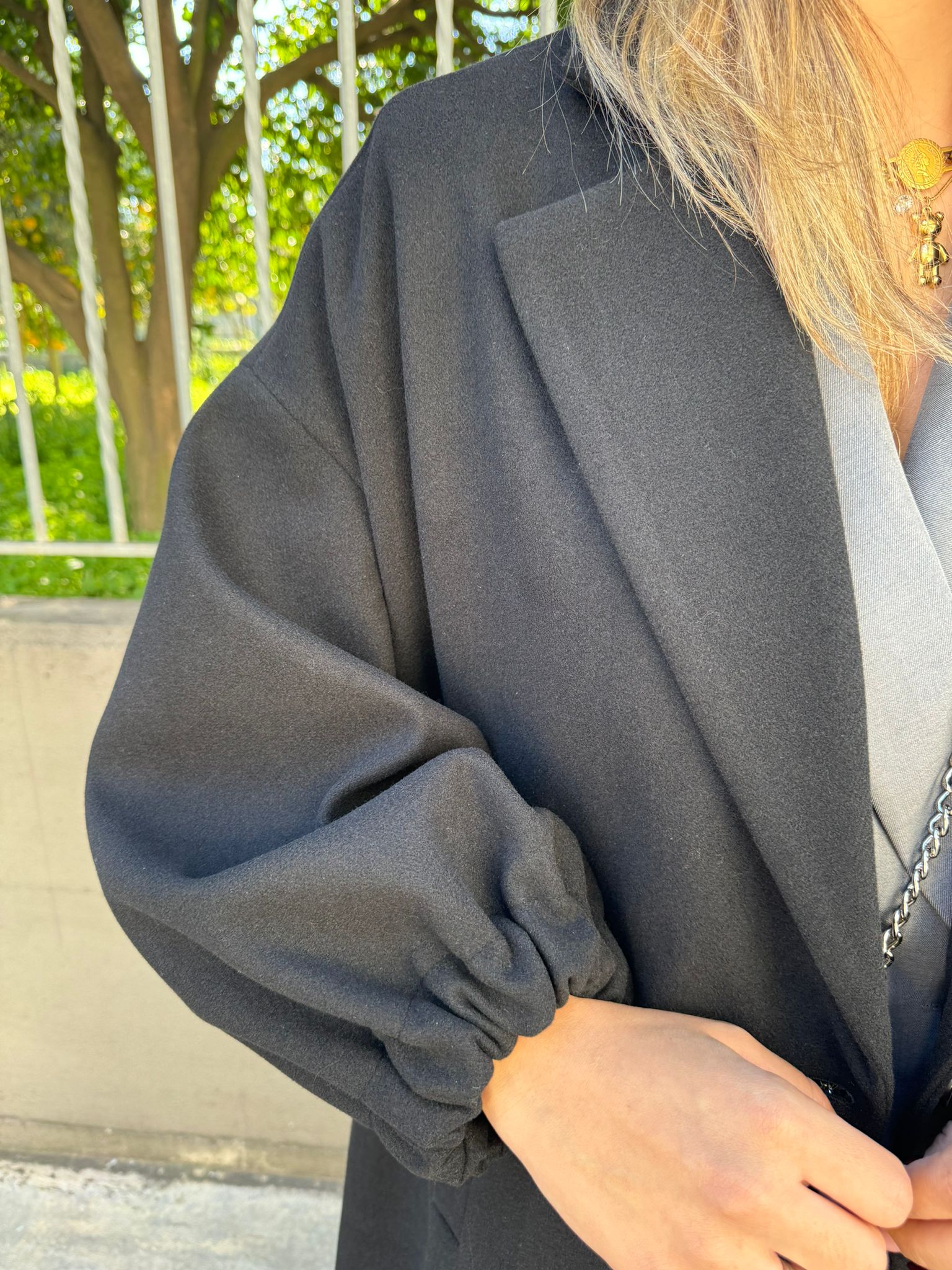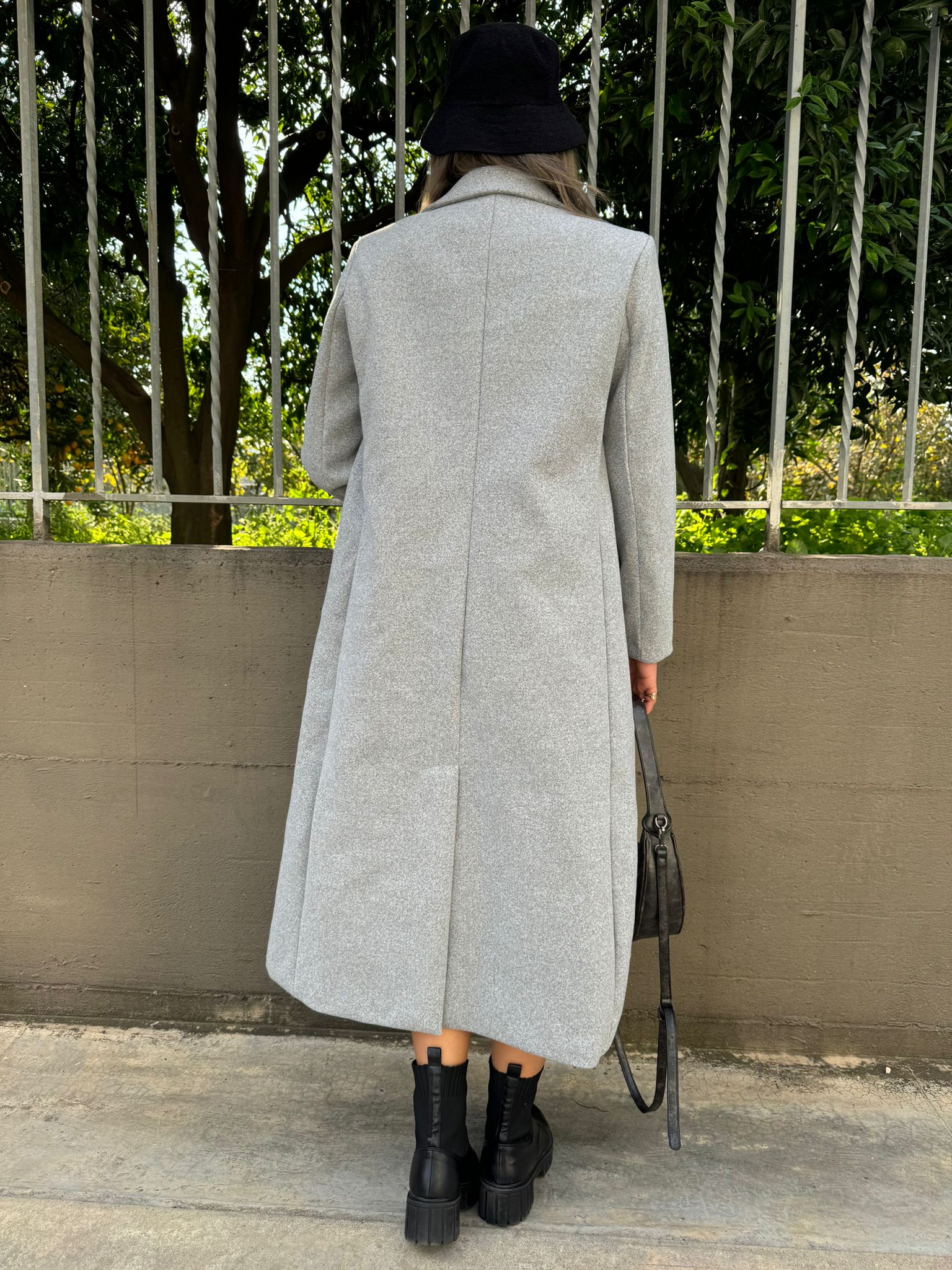 Cappotto doppio petto con cintura e fibbie eco pelle
