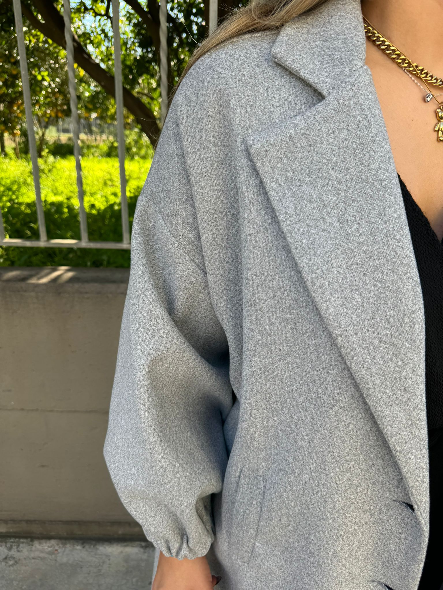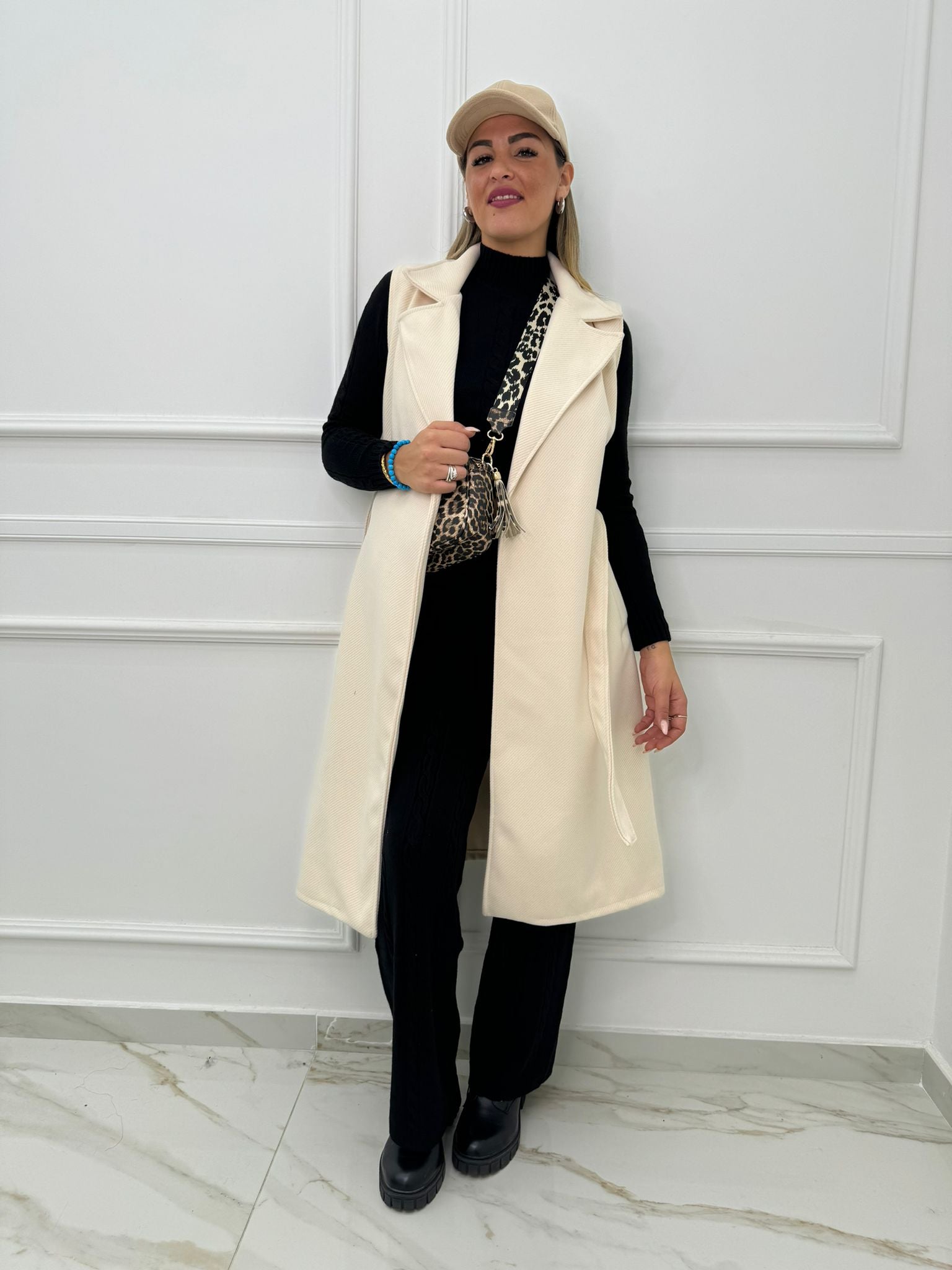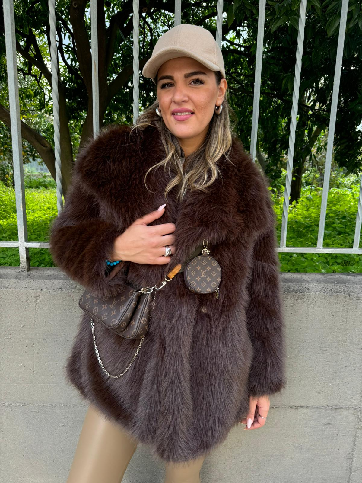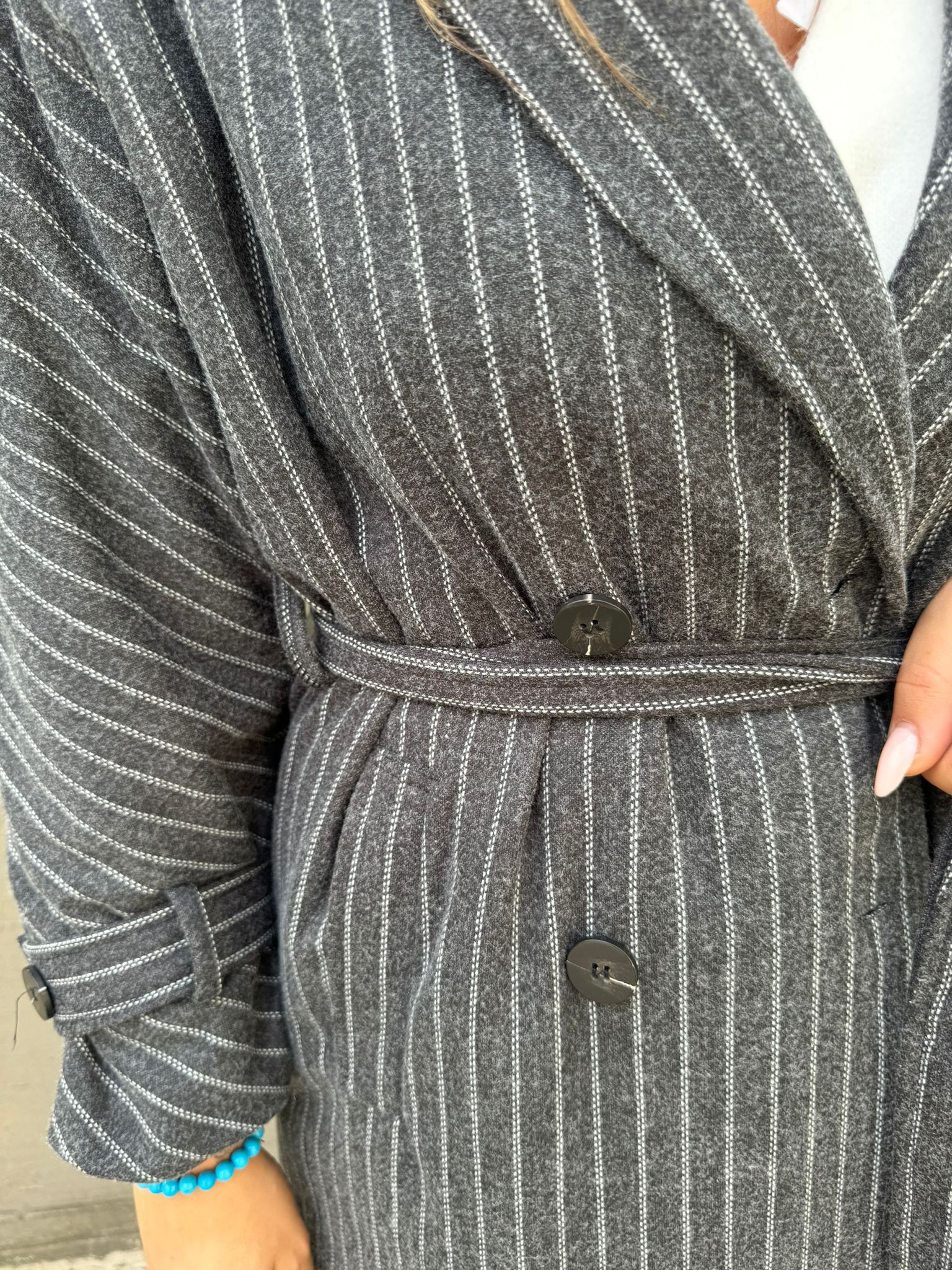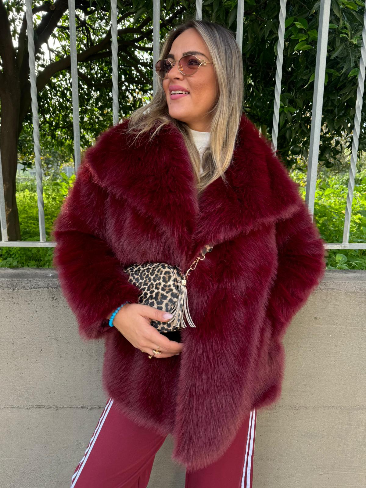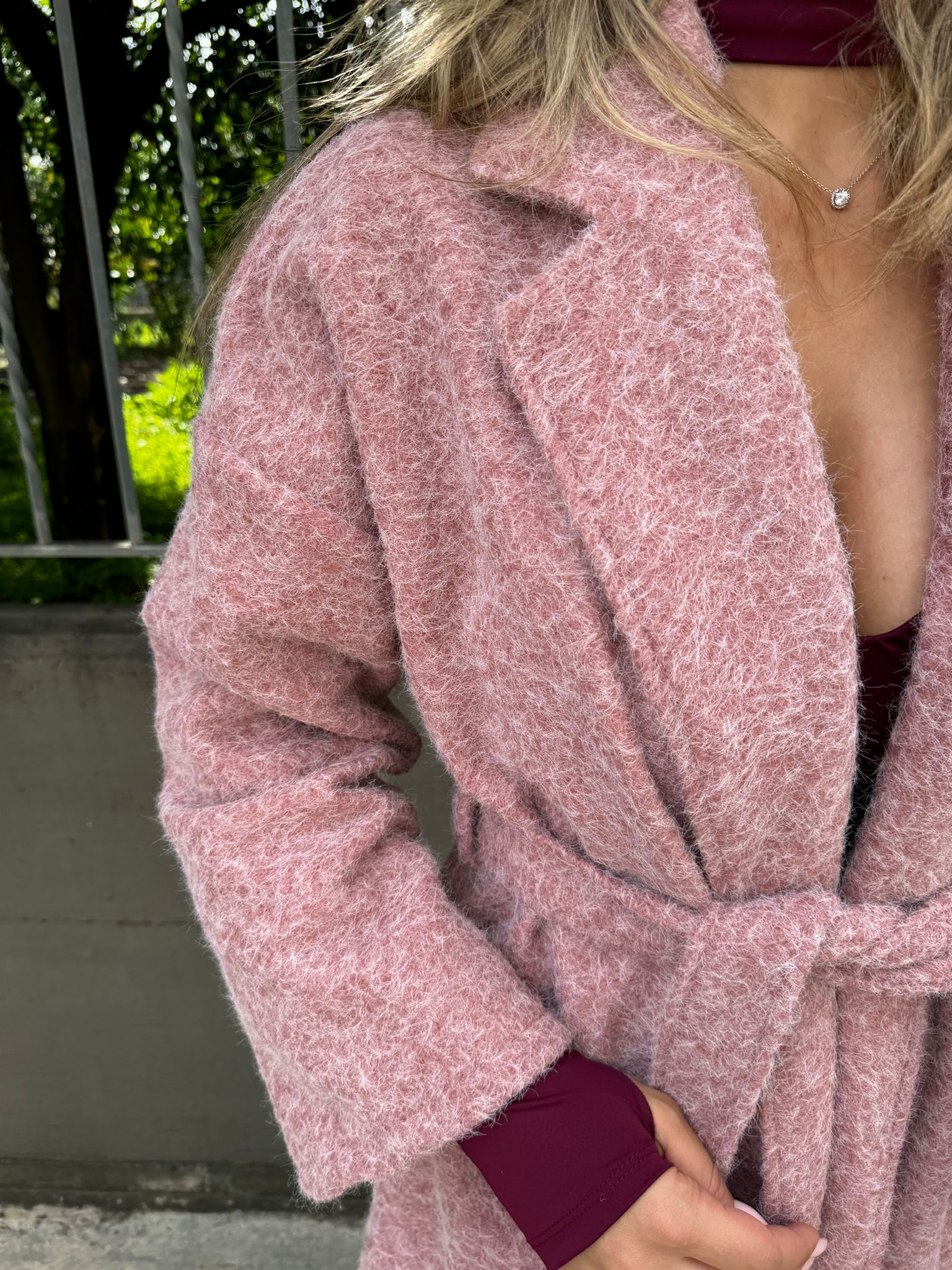 Cappotto doppio petto con cintura e fibbie eco pelle