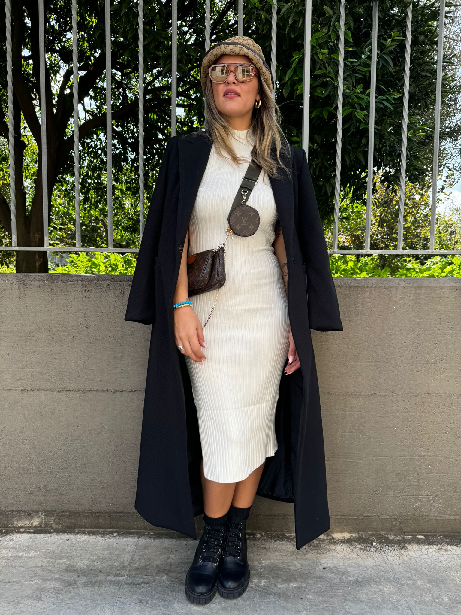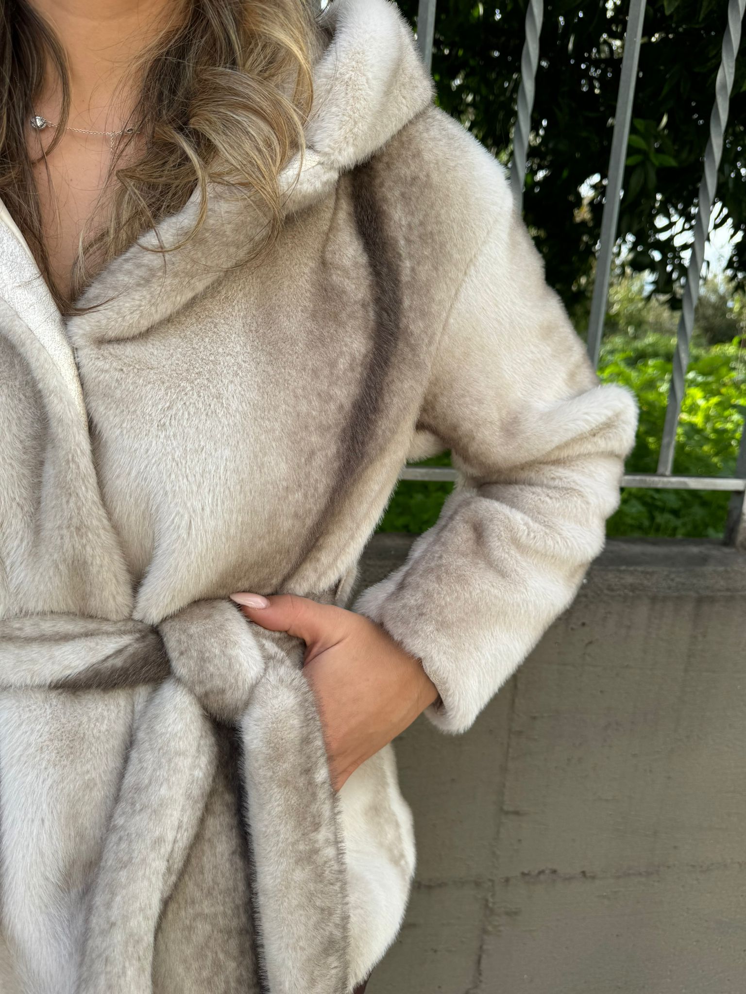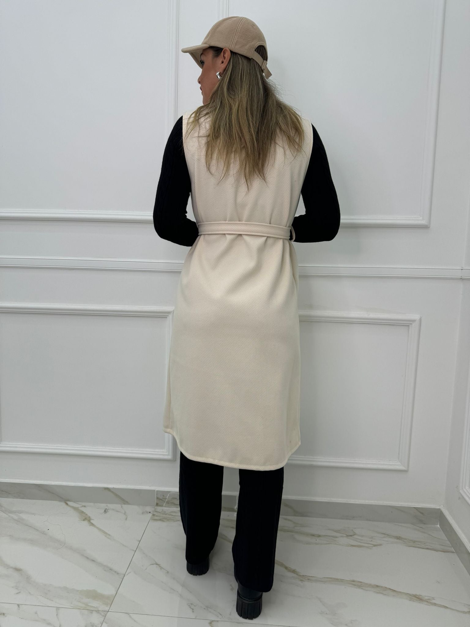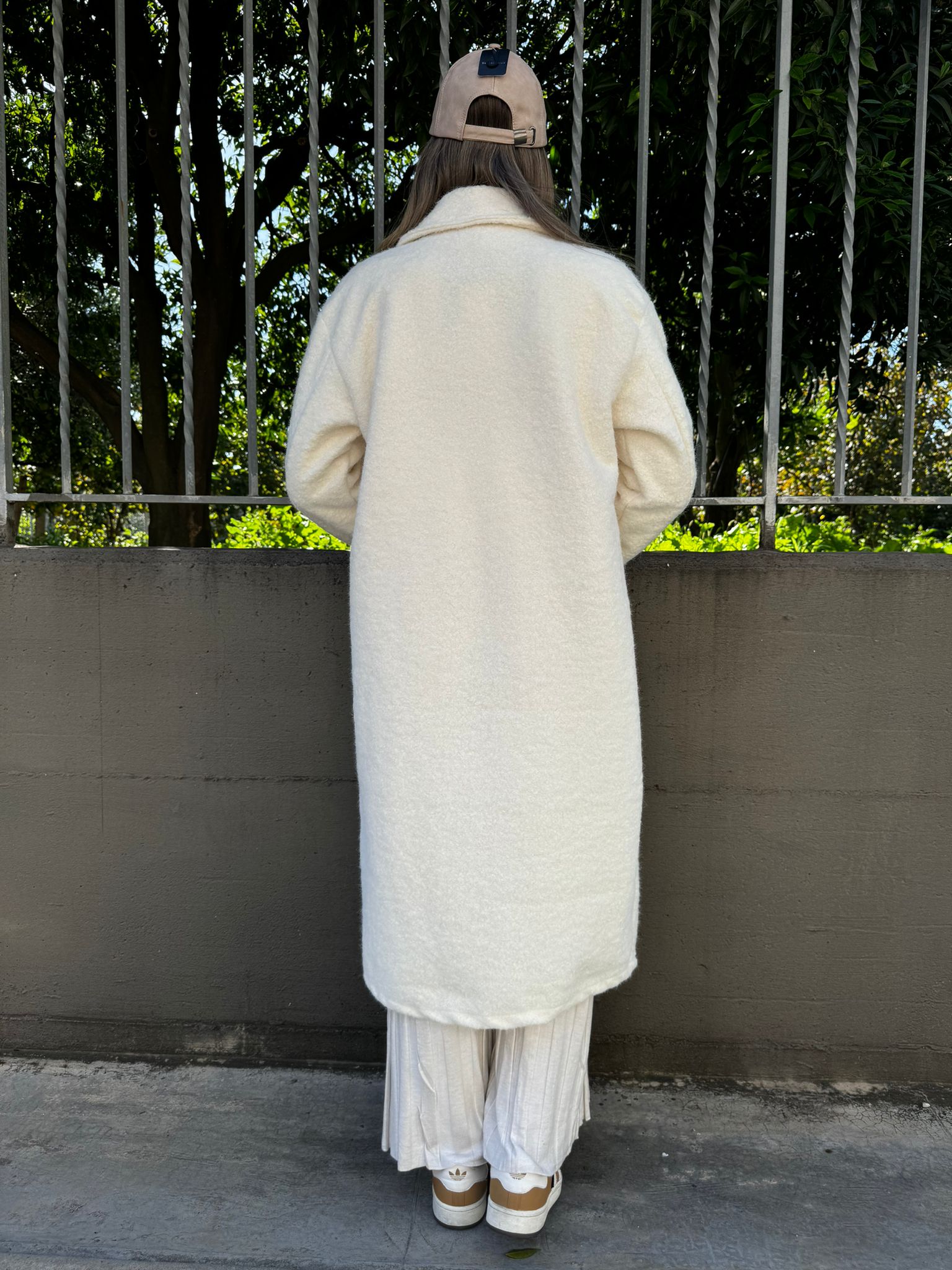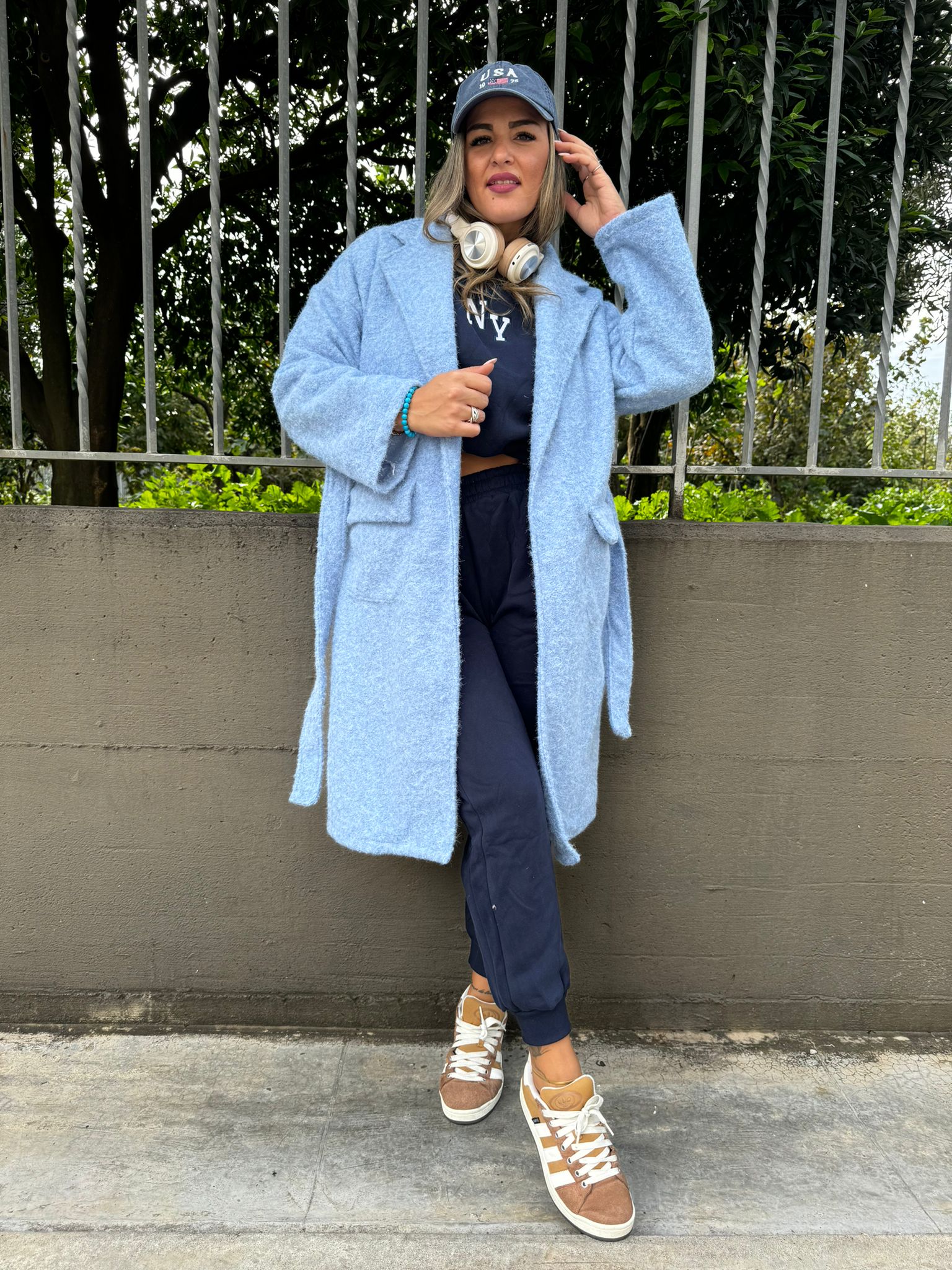 Cappotto doppio petto con cintura e fibbie eco pelle