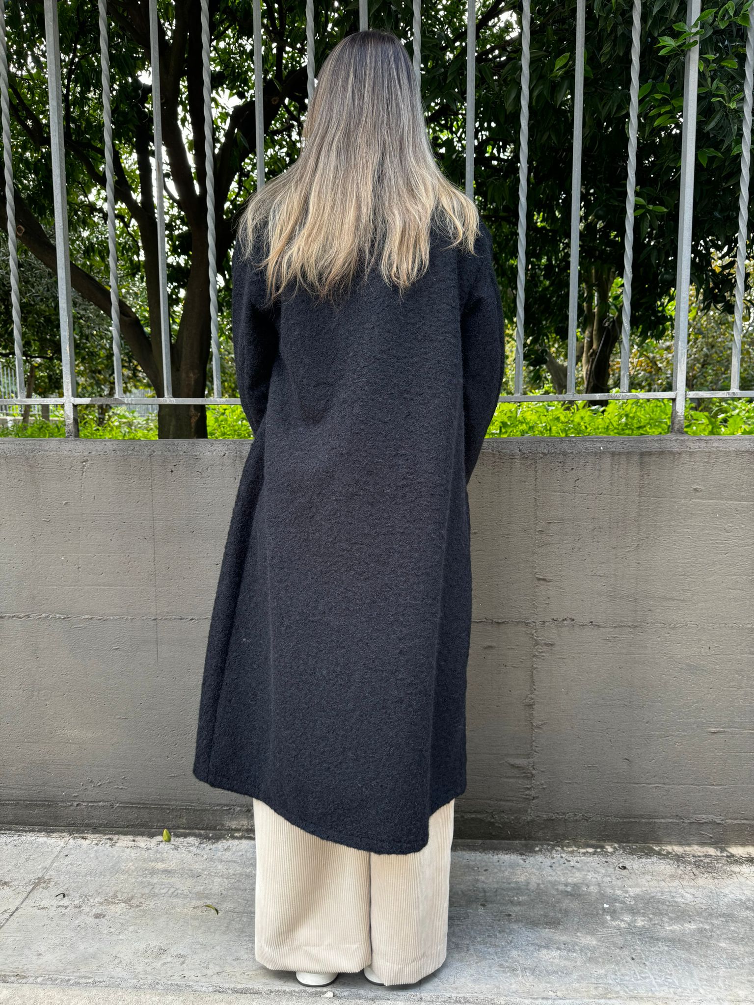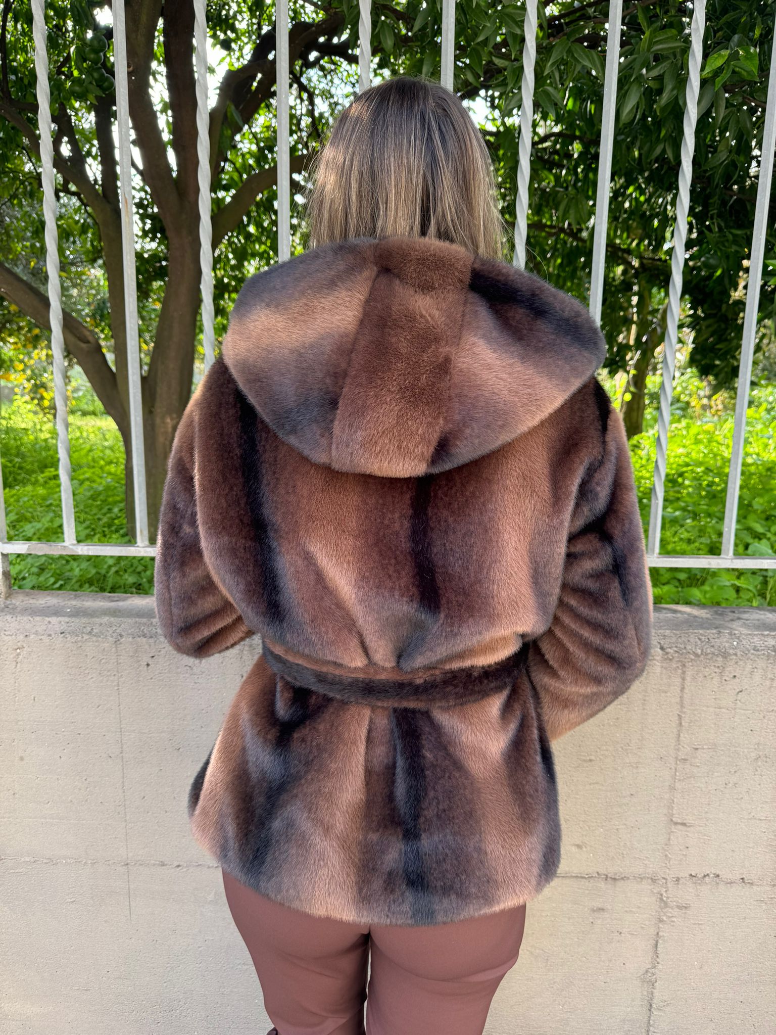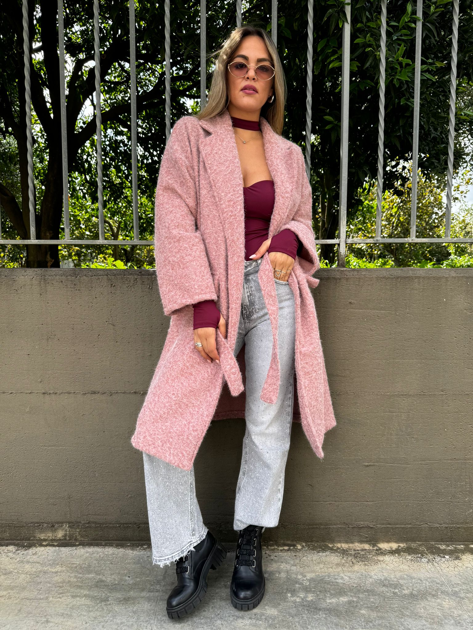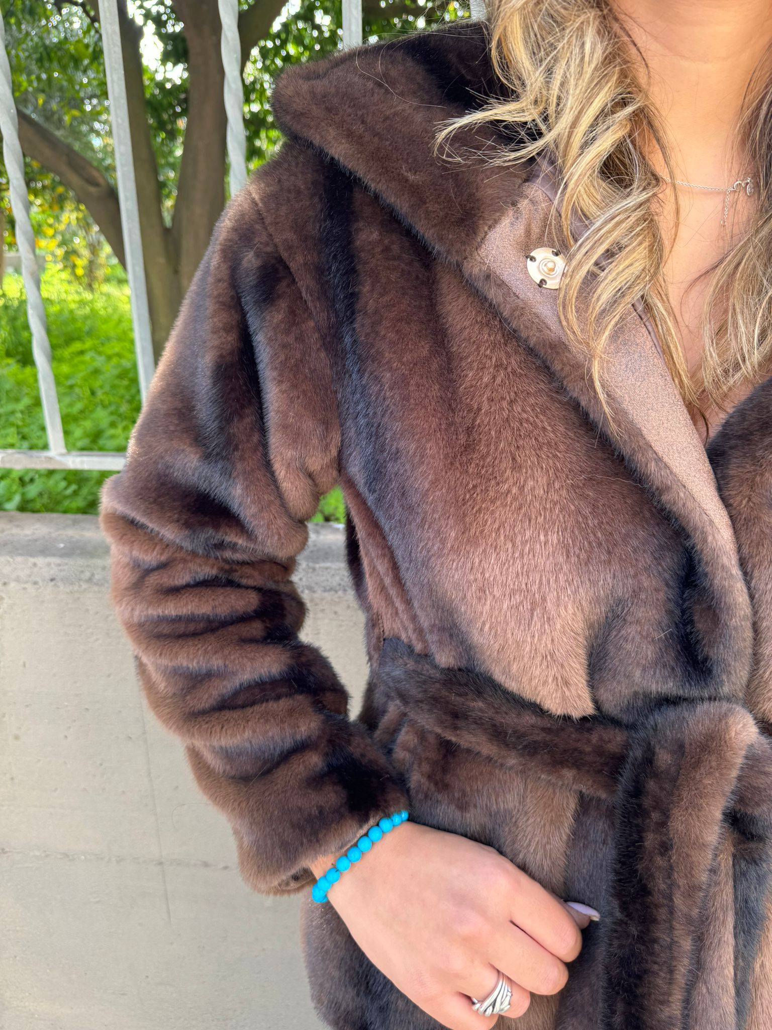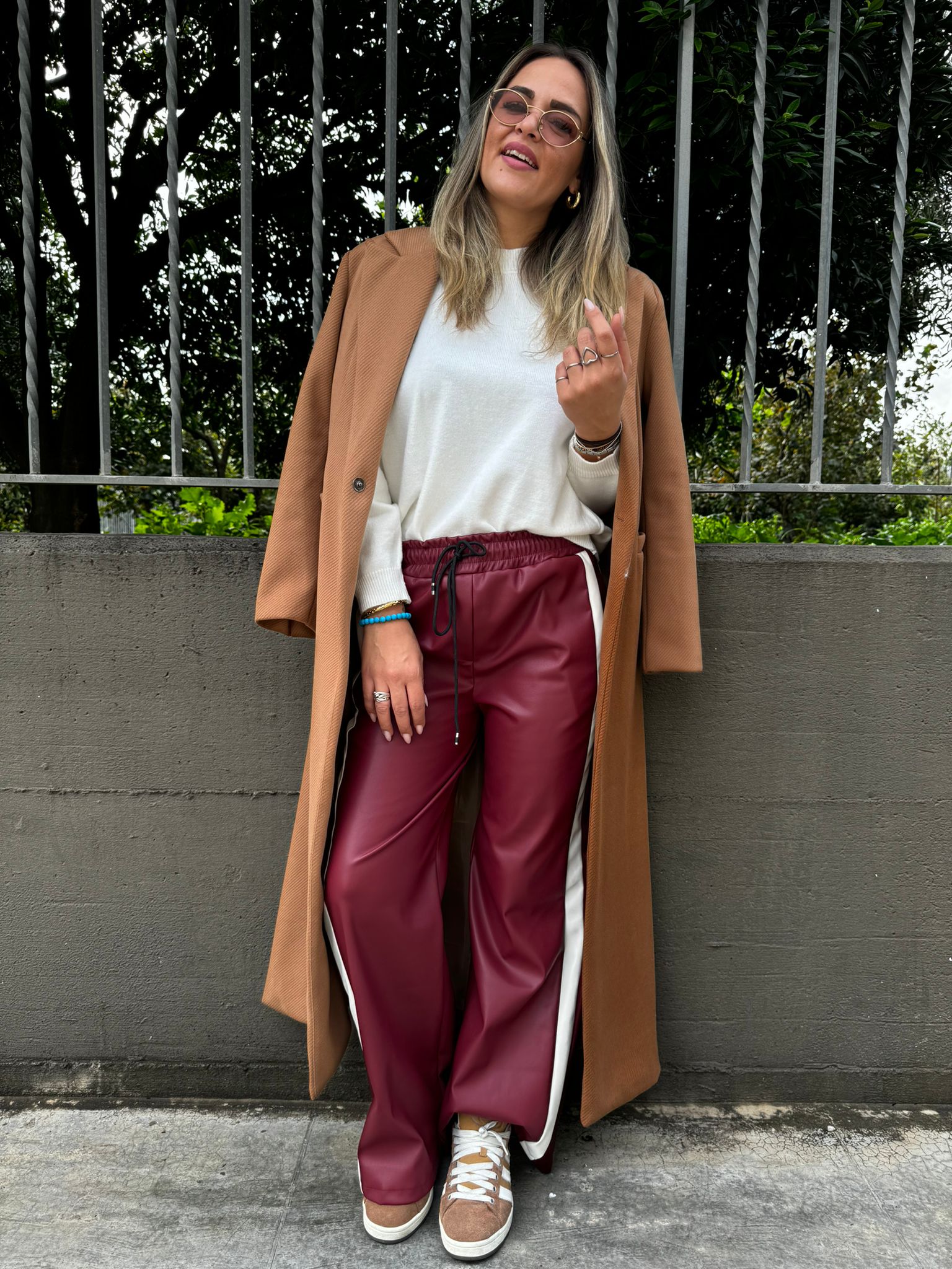 Cappotto doppio petto con cintura e fibbie eco pelle
