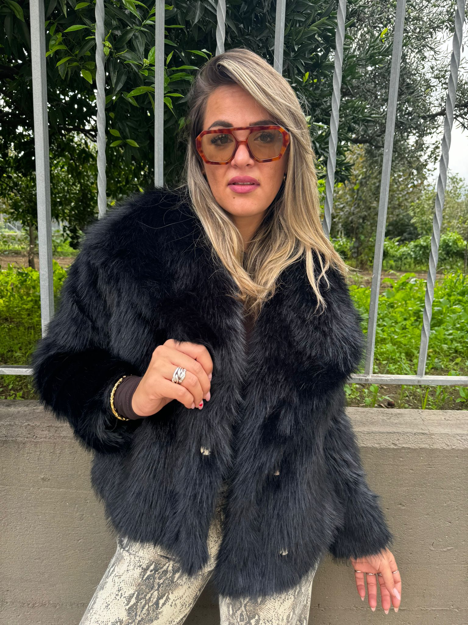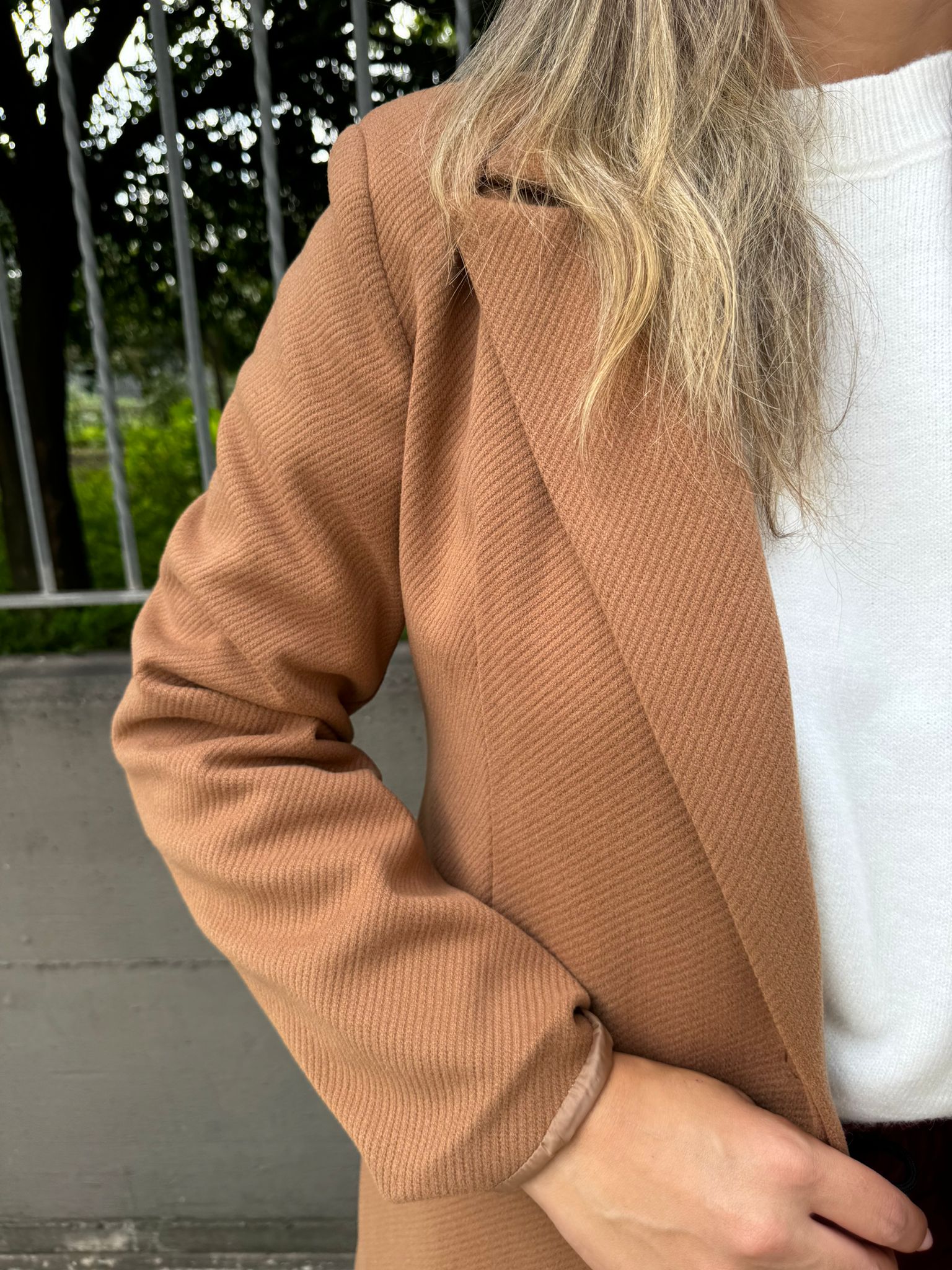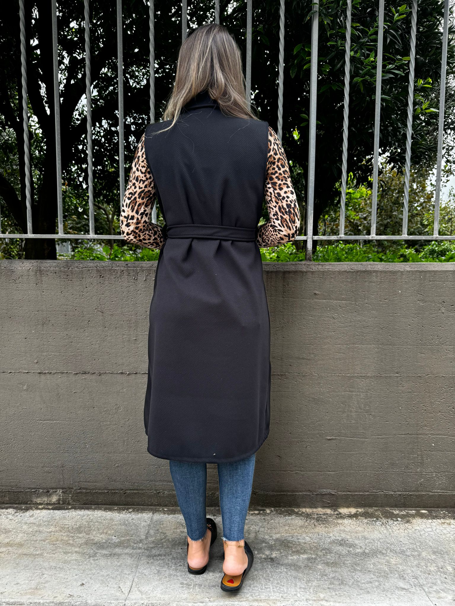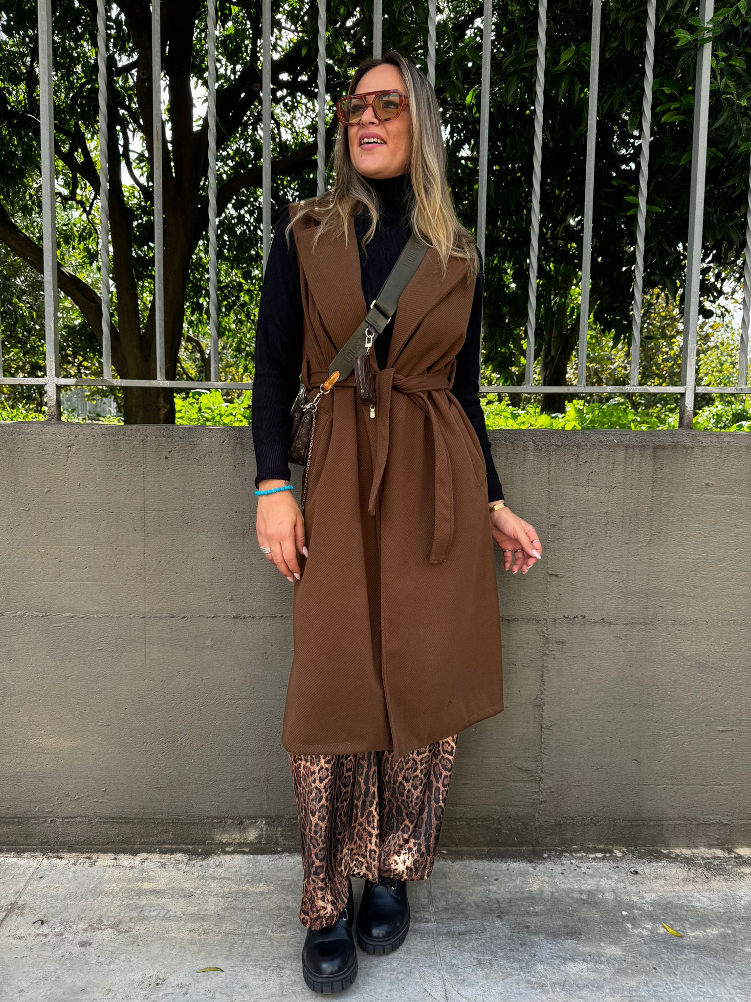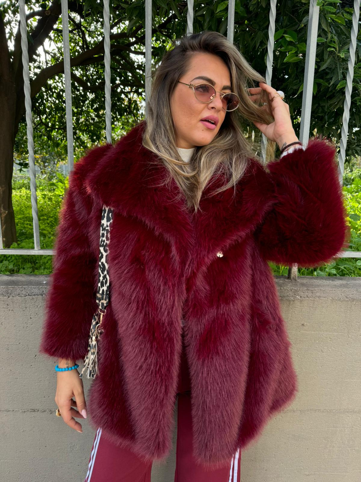Cappotto doppio petto con cintura e fibbie eco pelle