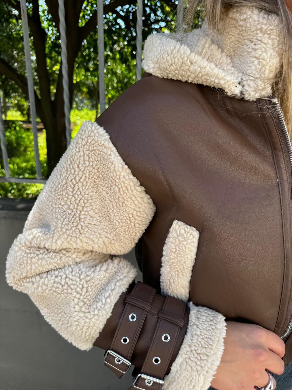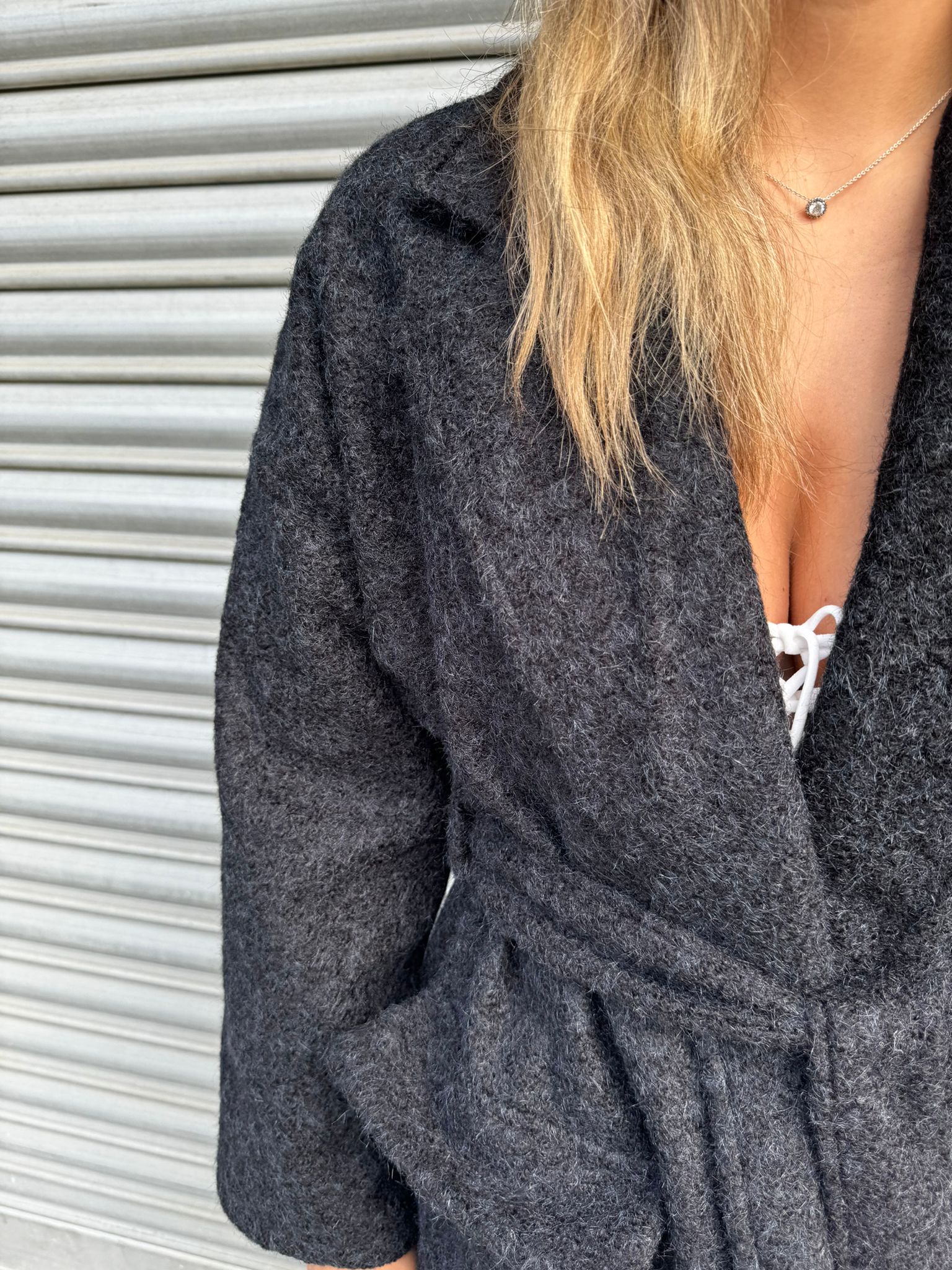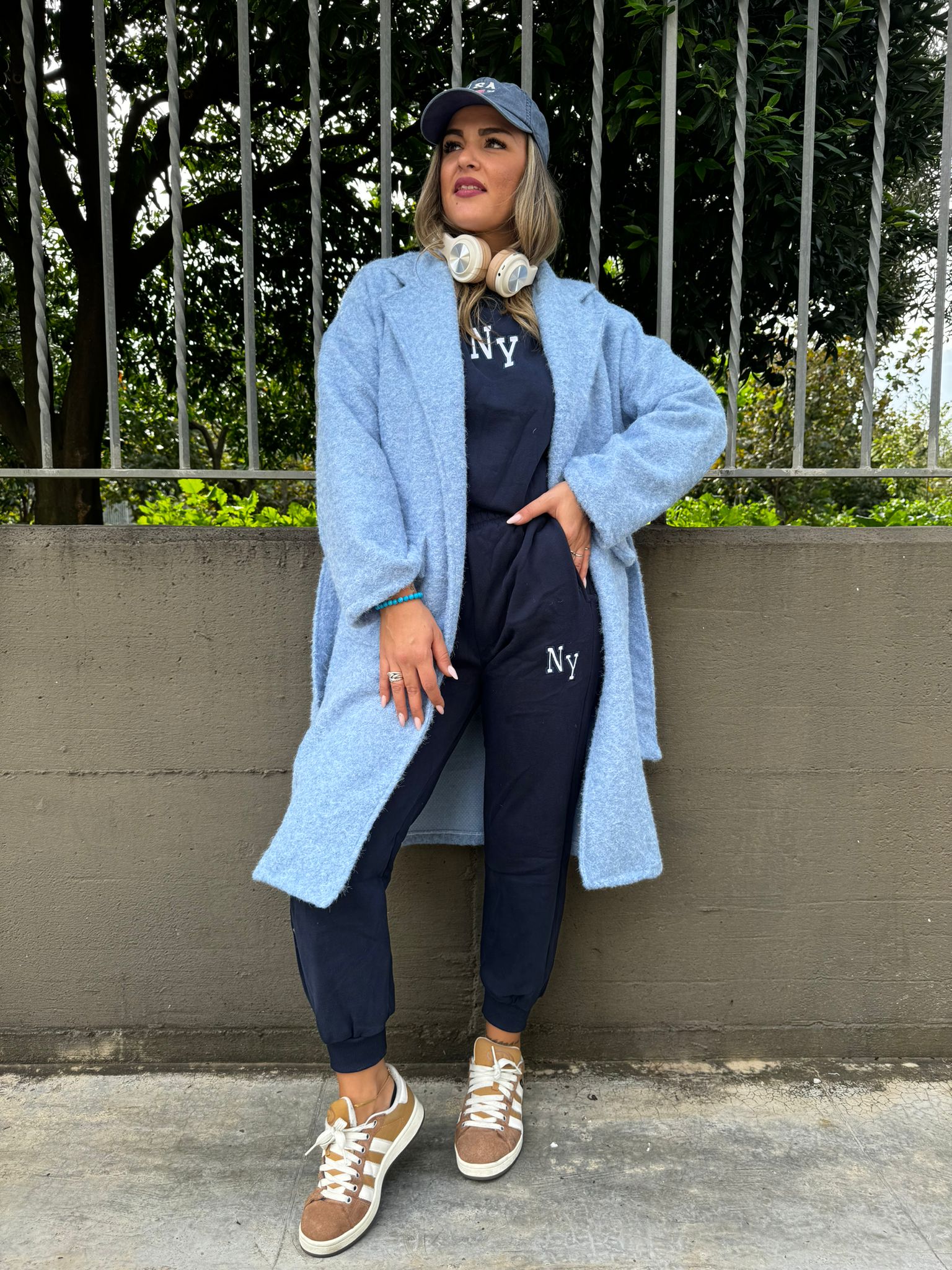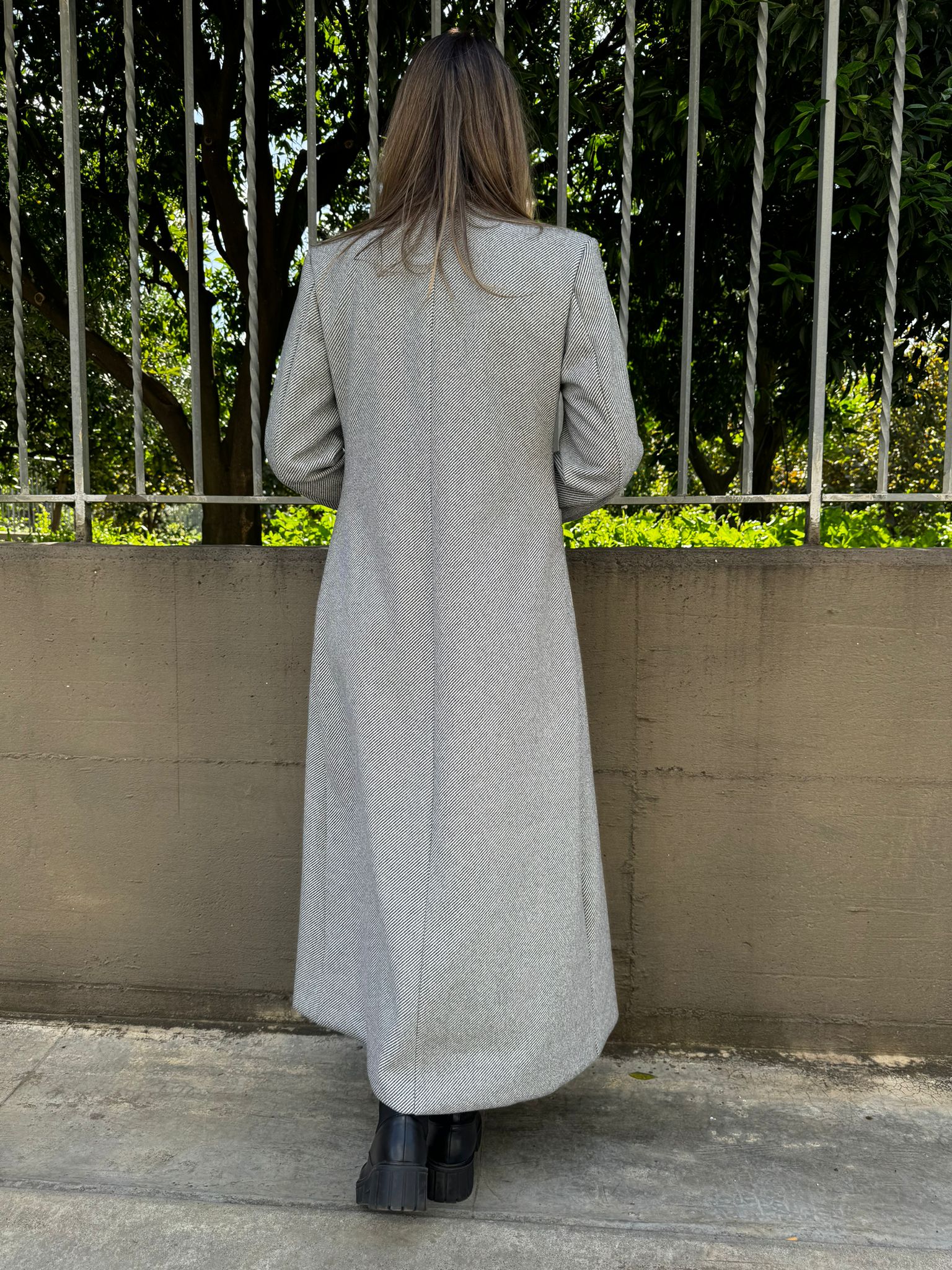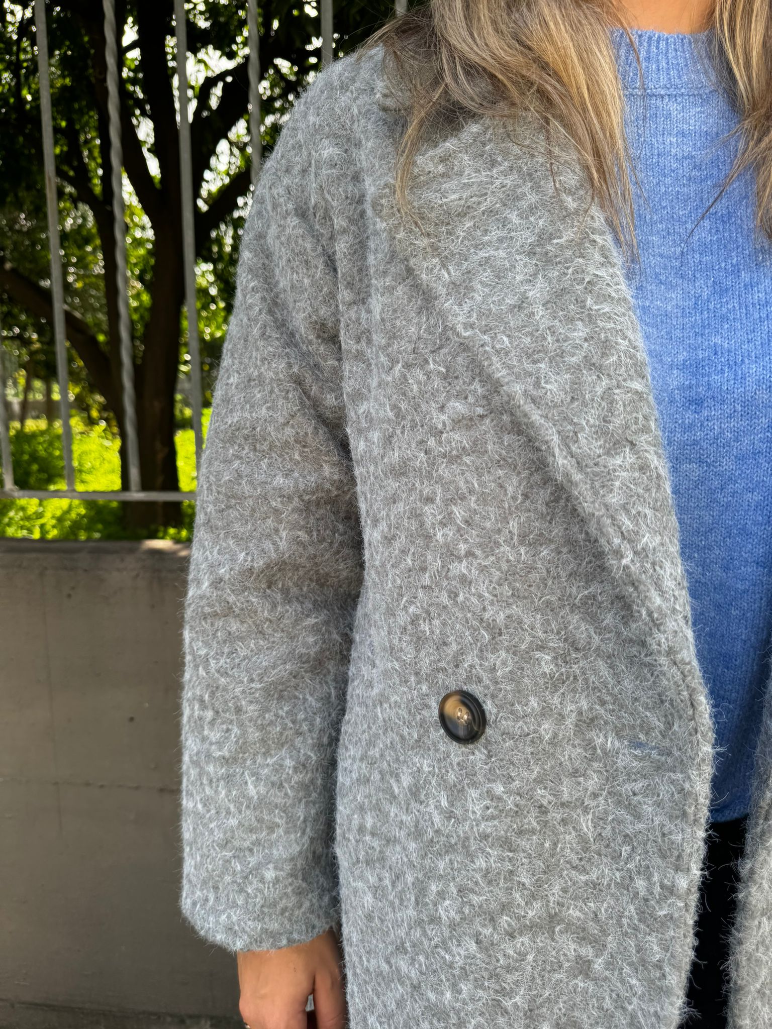 Cappotto doppio petto con cintura e fibbie eco pelle
