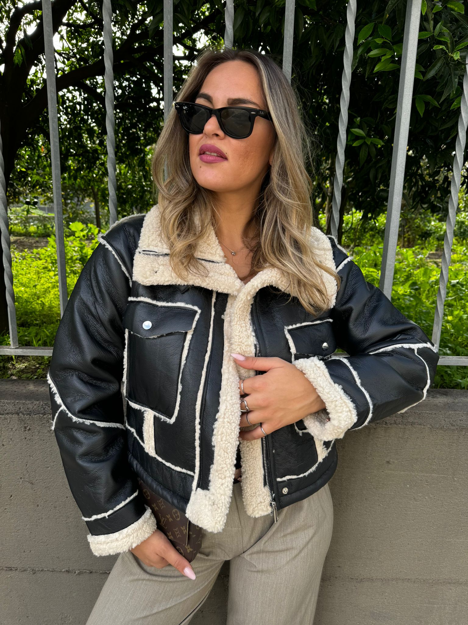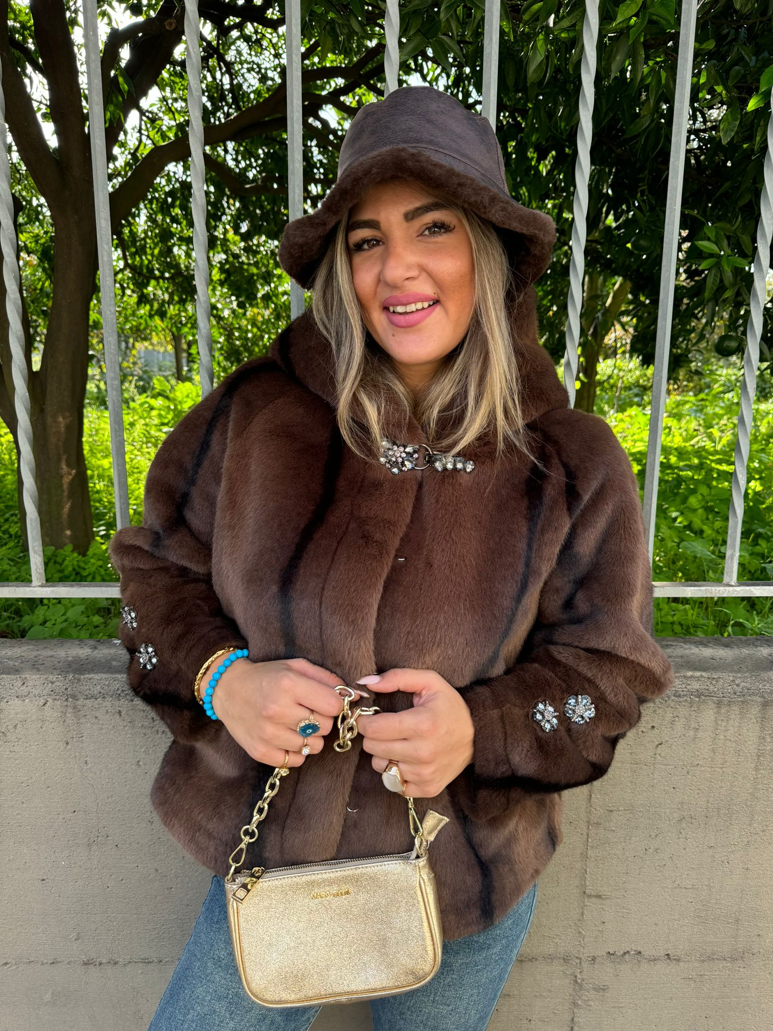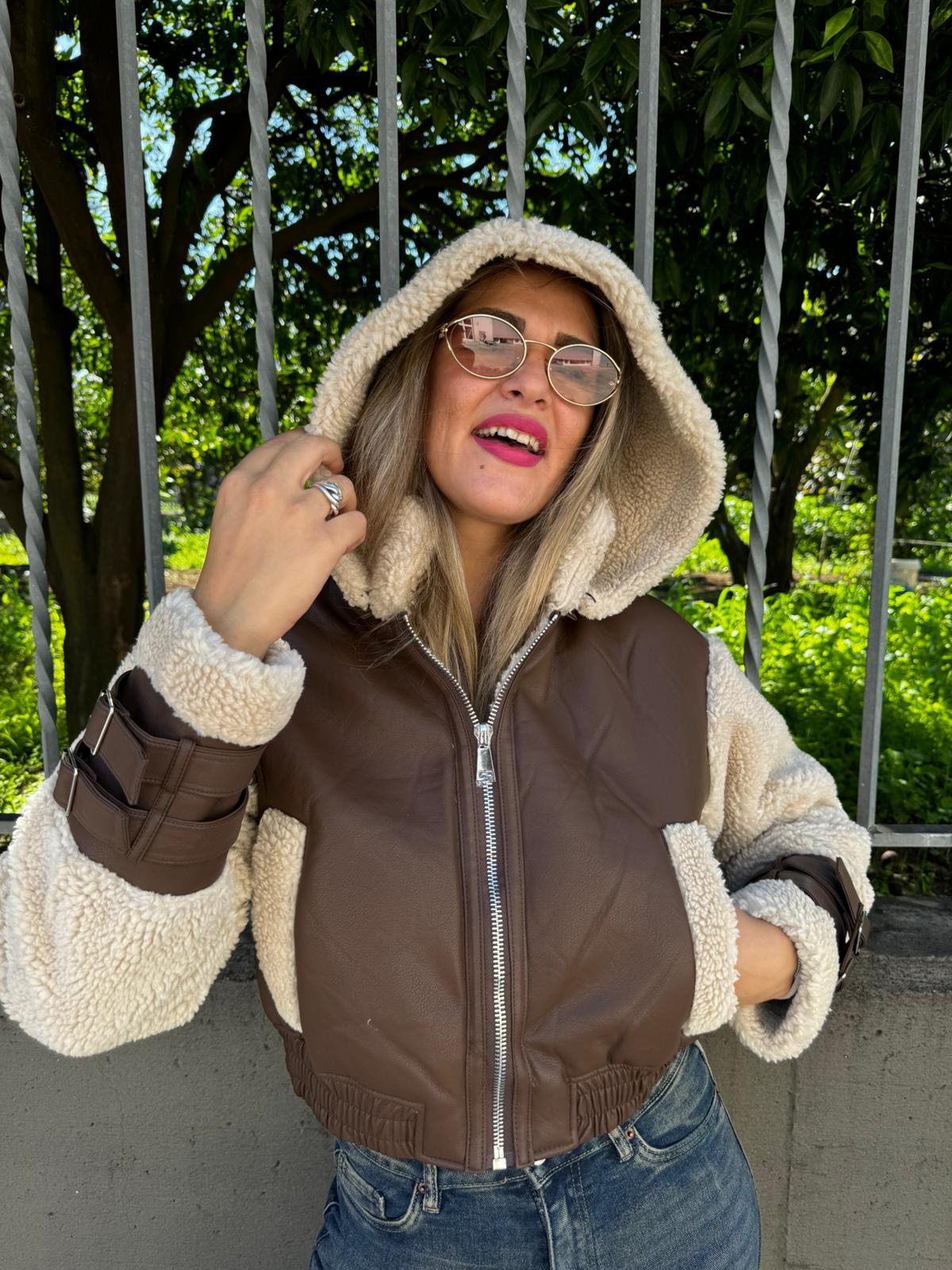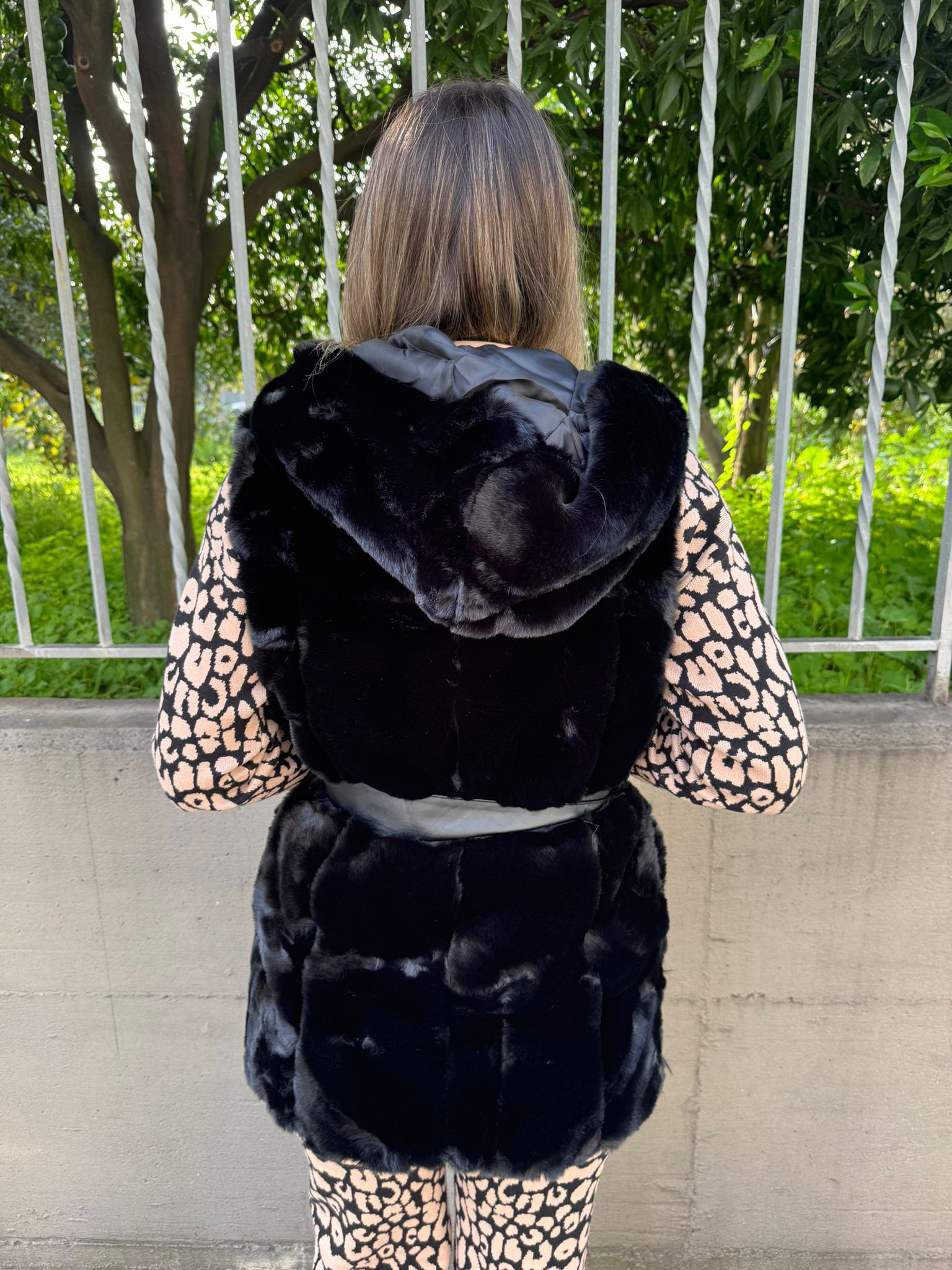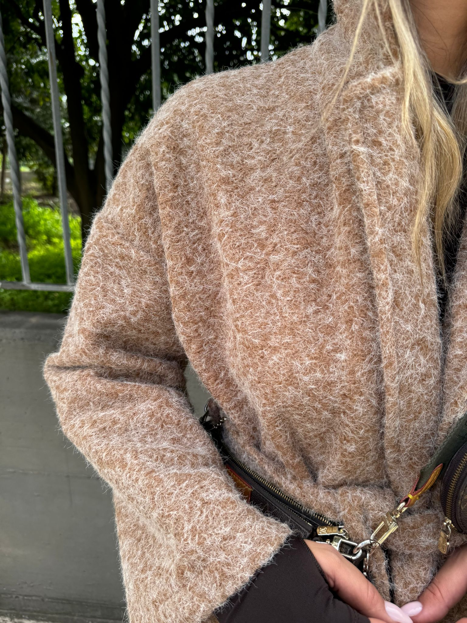 Cappotto doppio petto con cintura e fibbie eco pelle