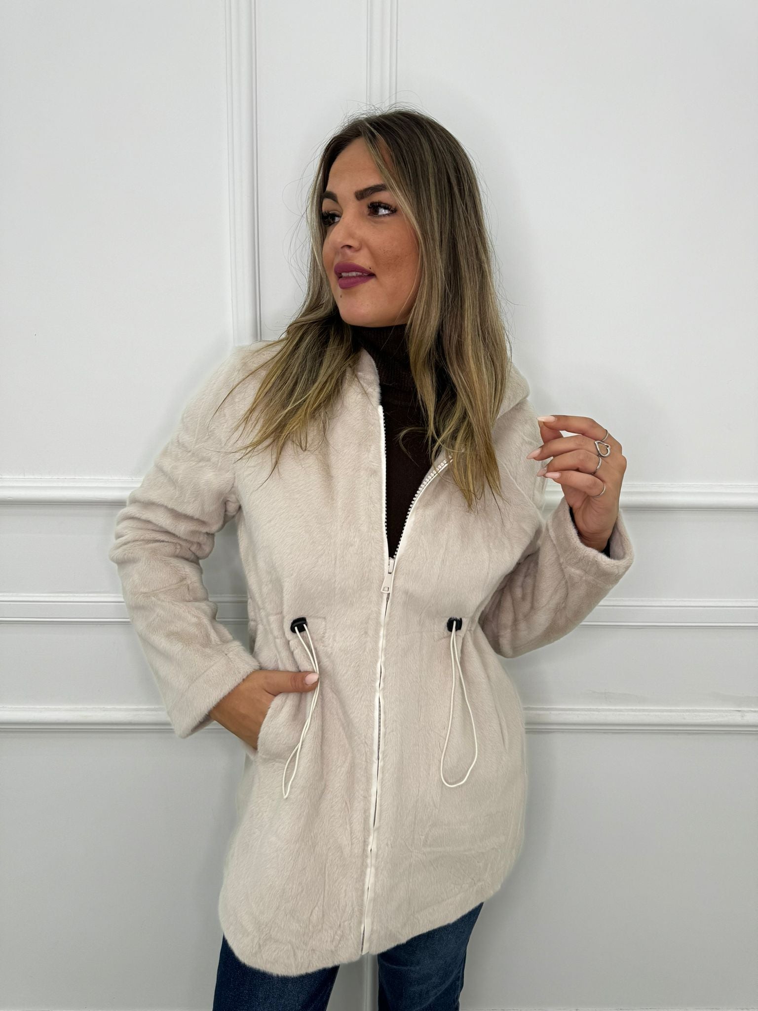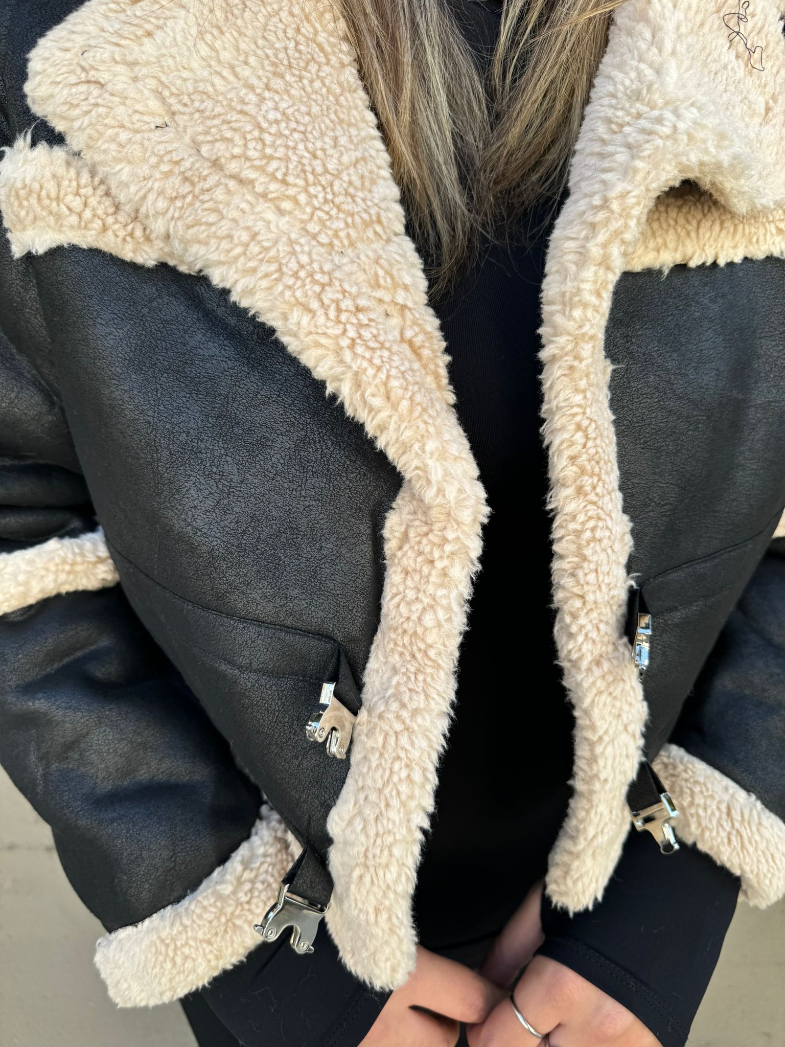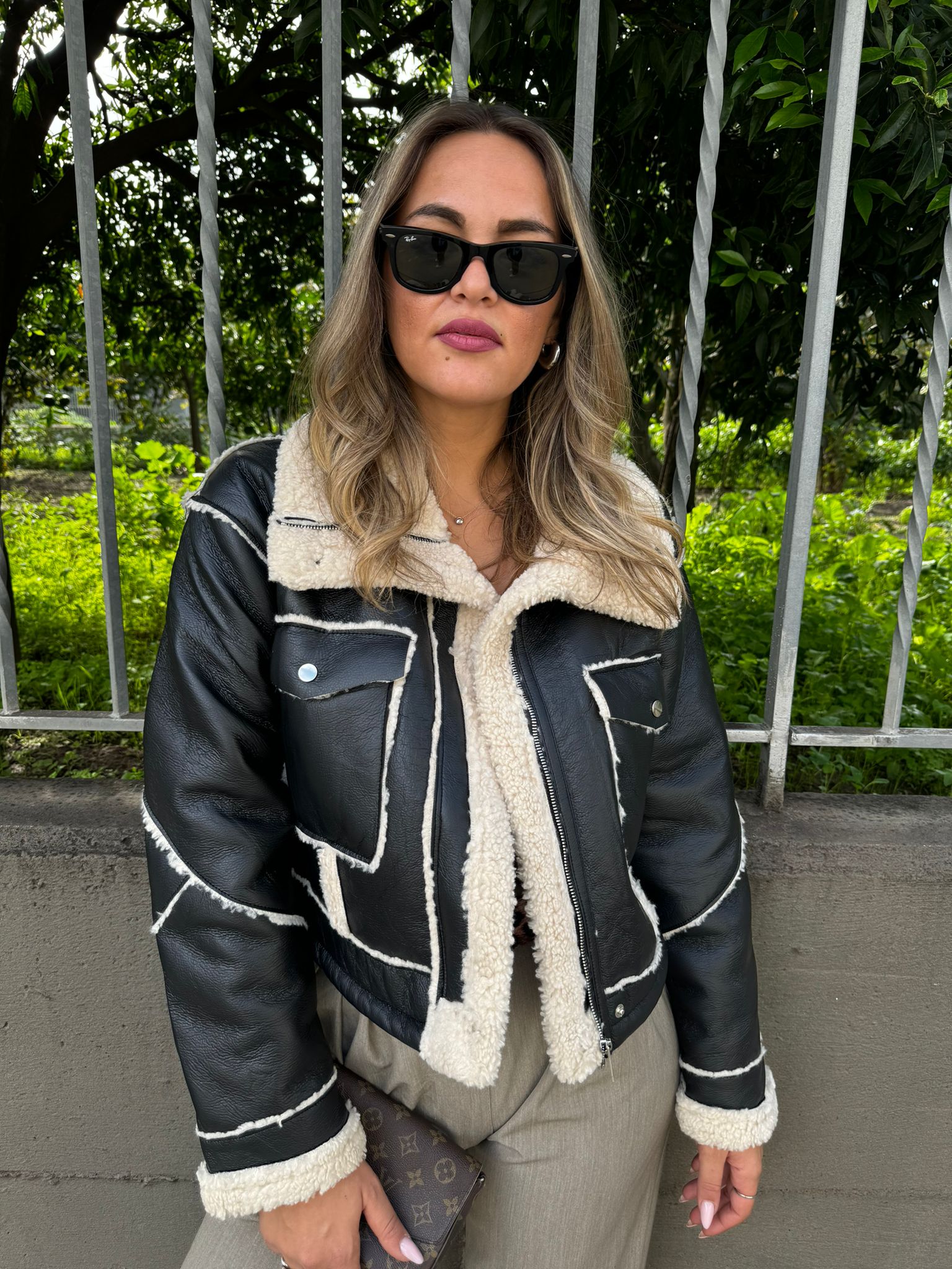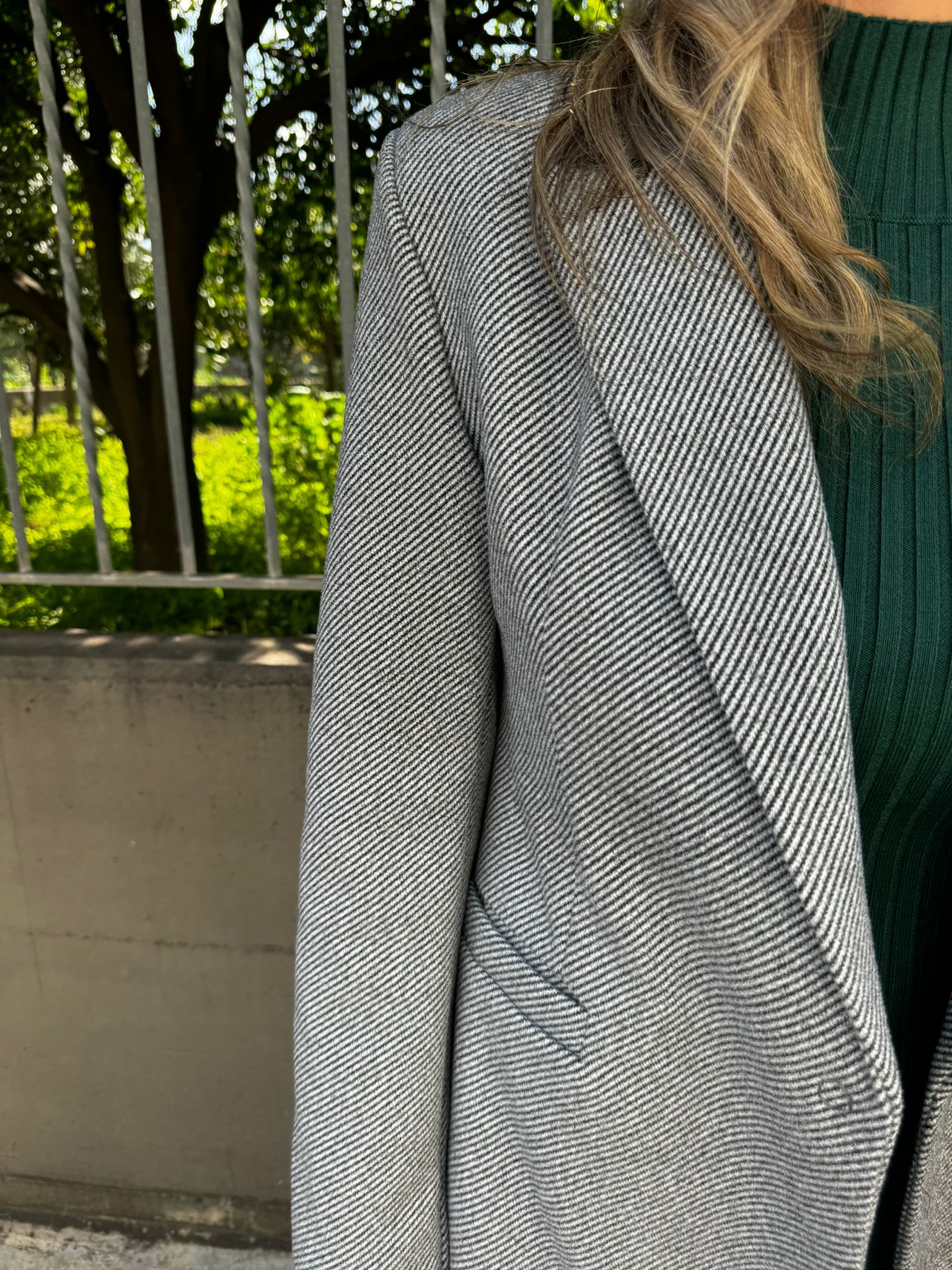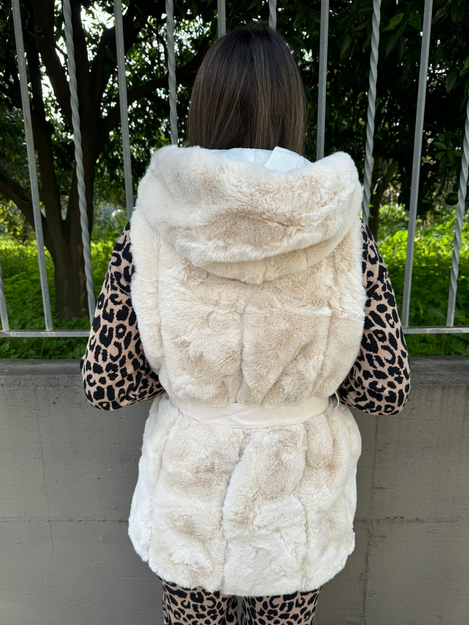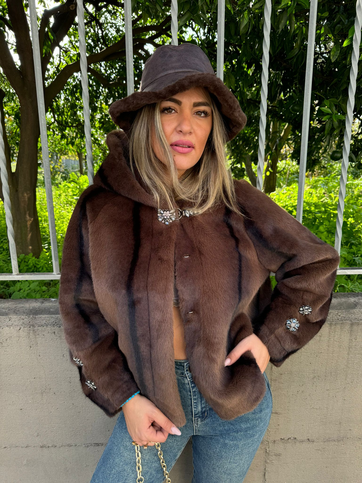 Cappotto doppio petto con cintura e fibbie eco pelle