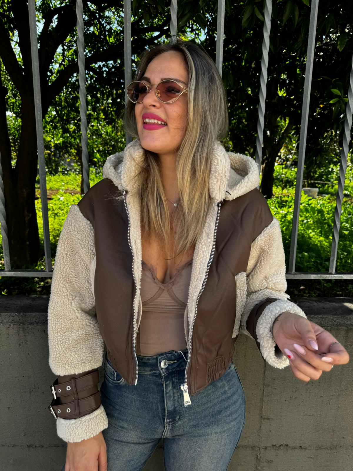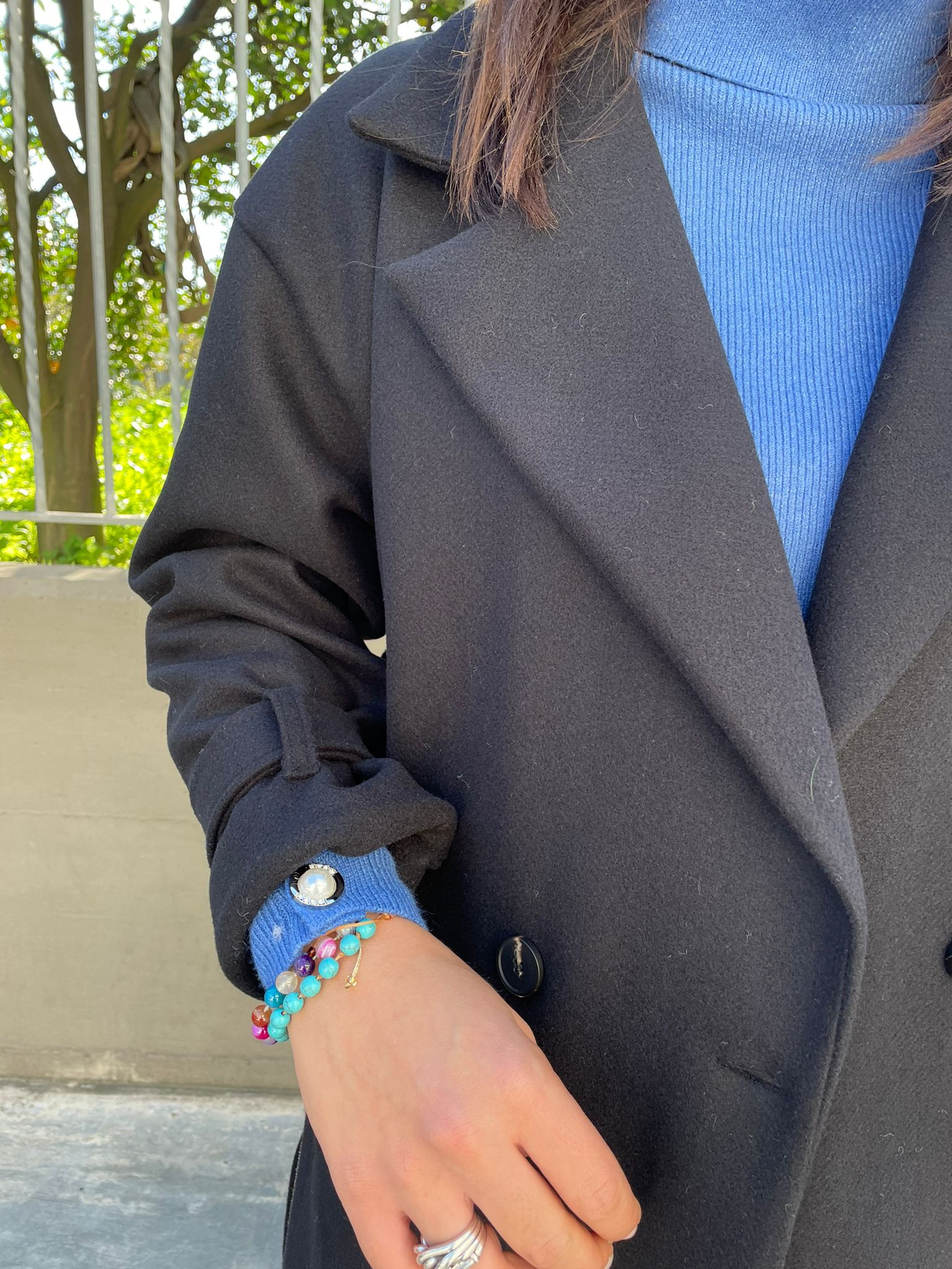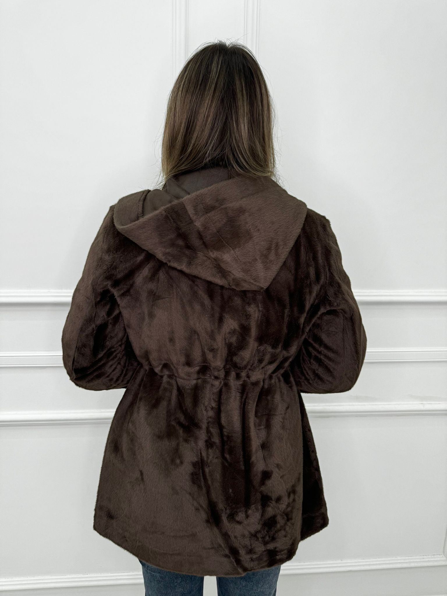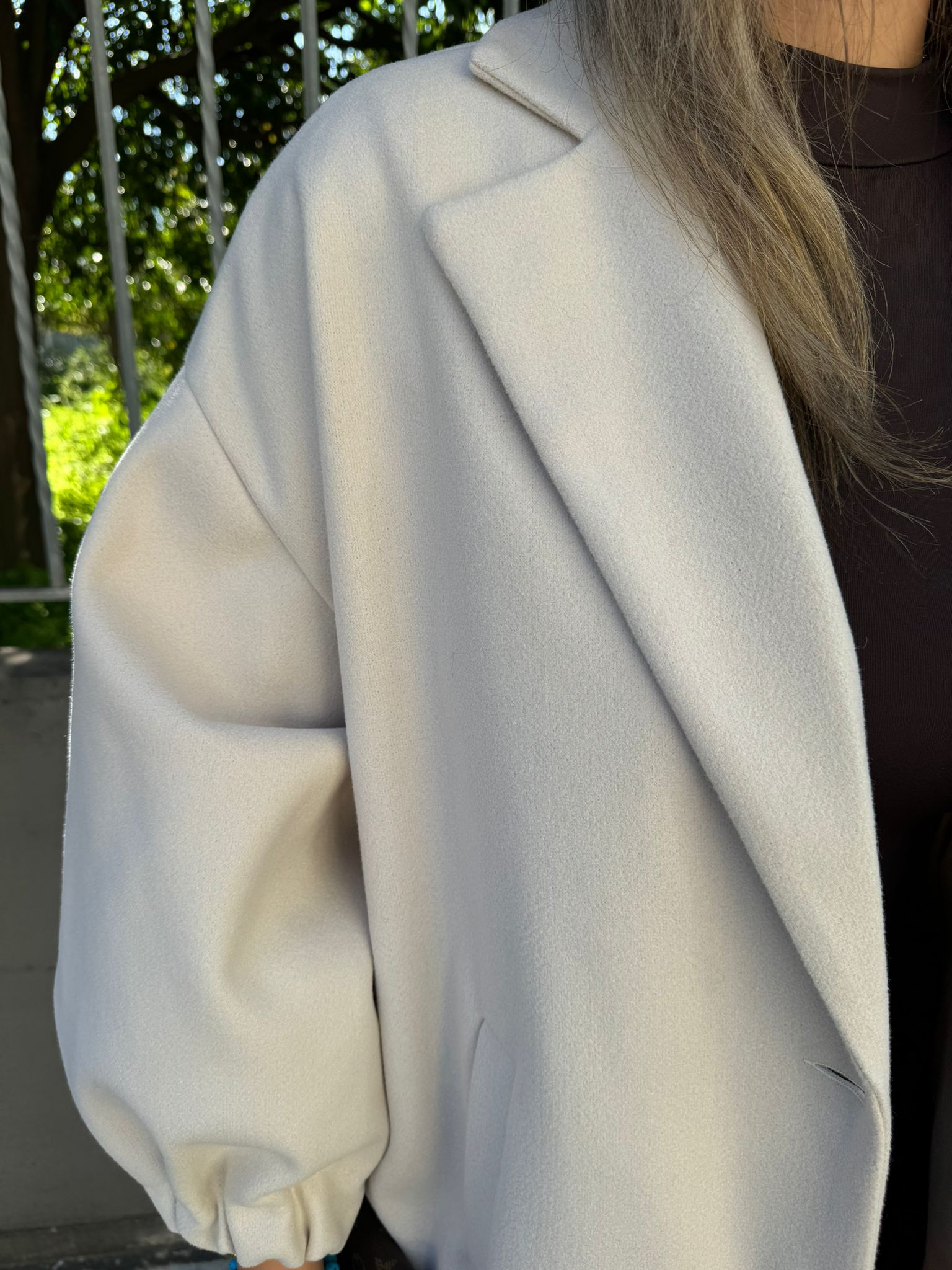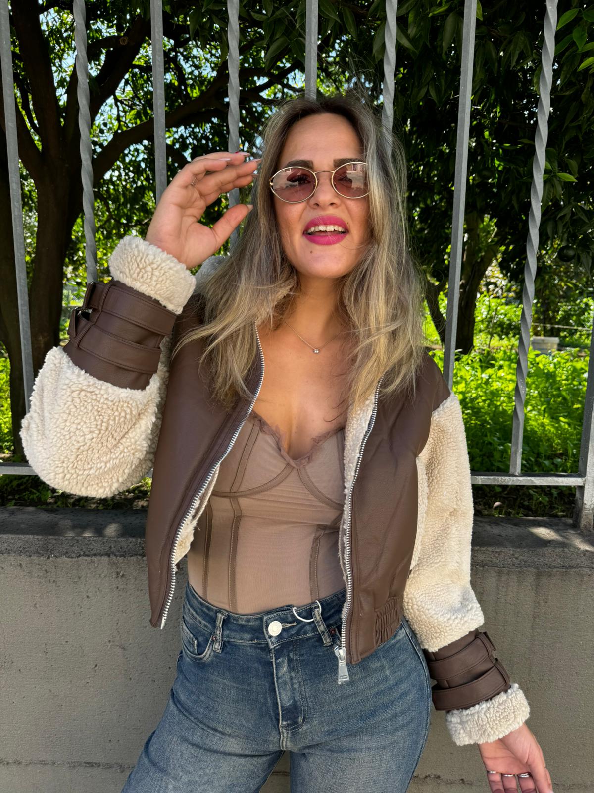 Cappotto doppio petto con cintura e fibbie eco pelle