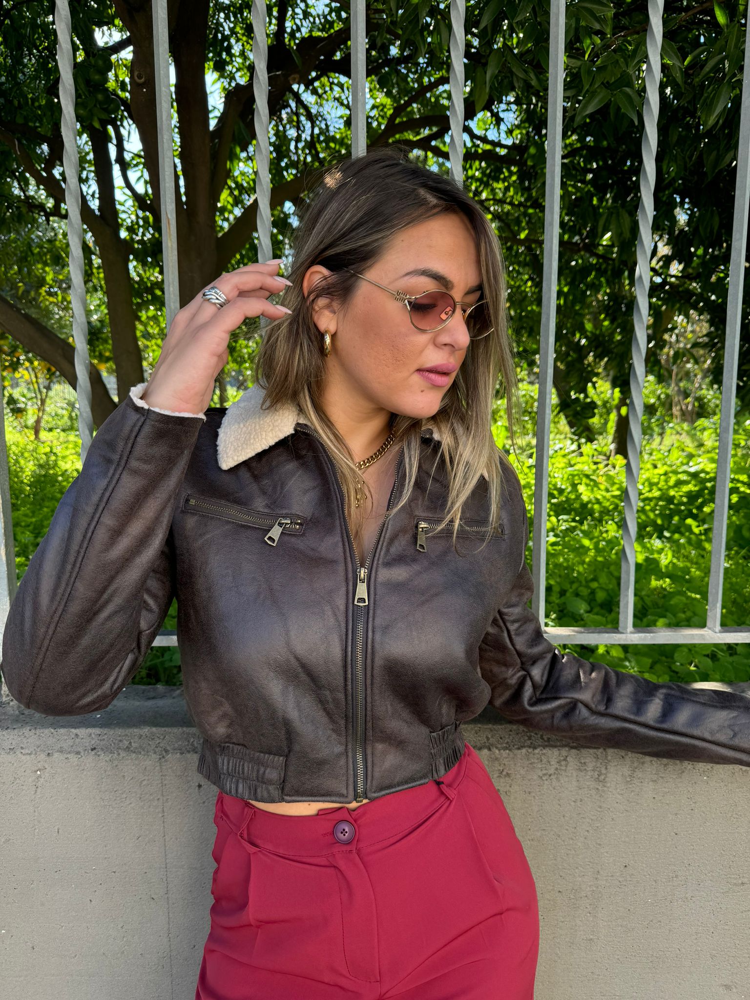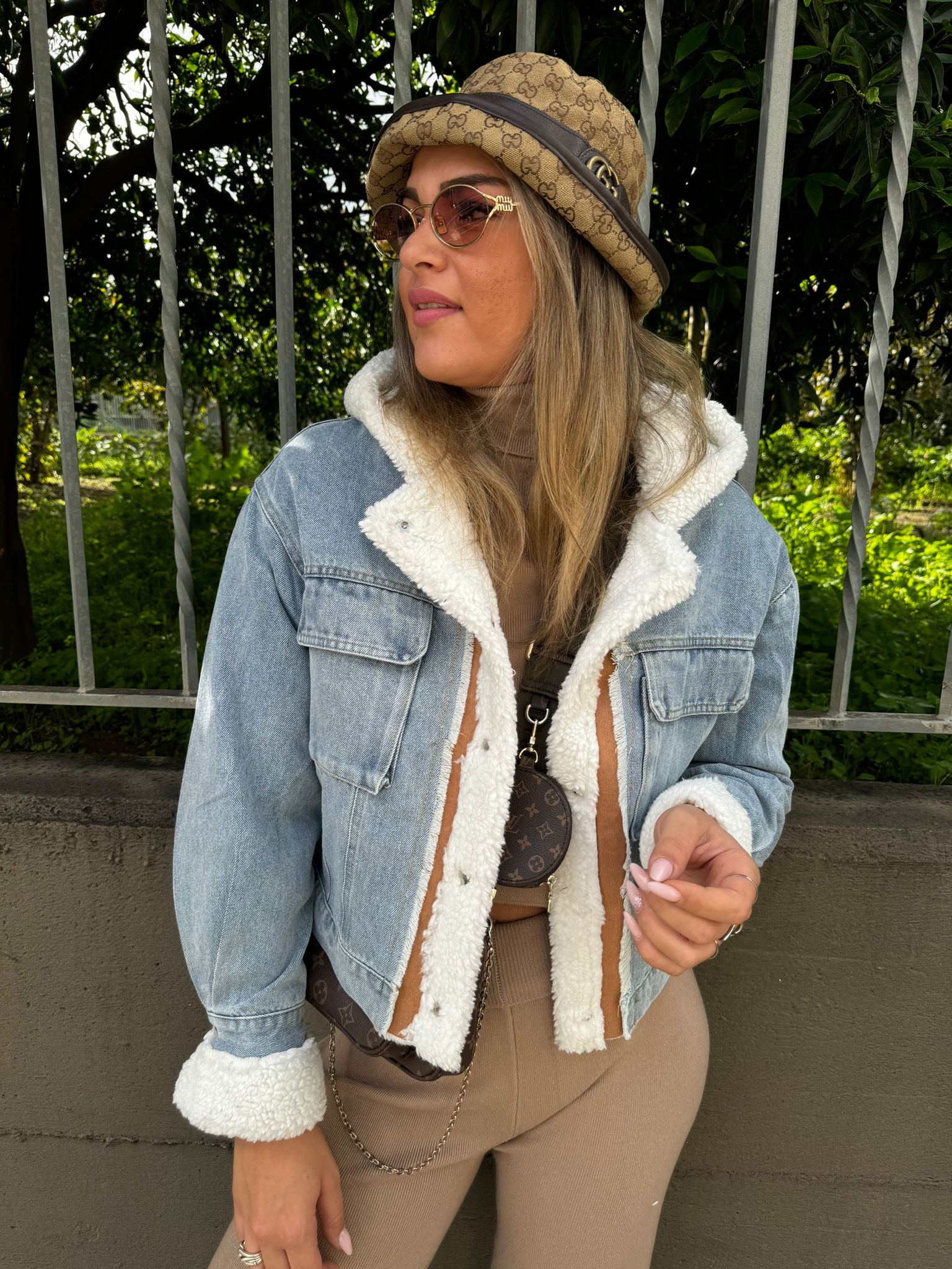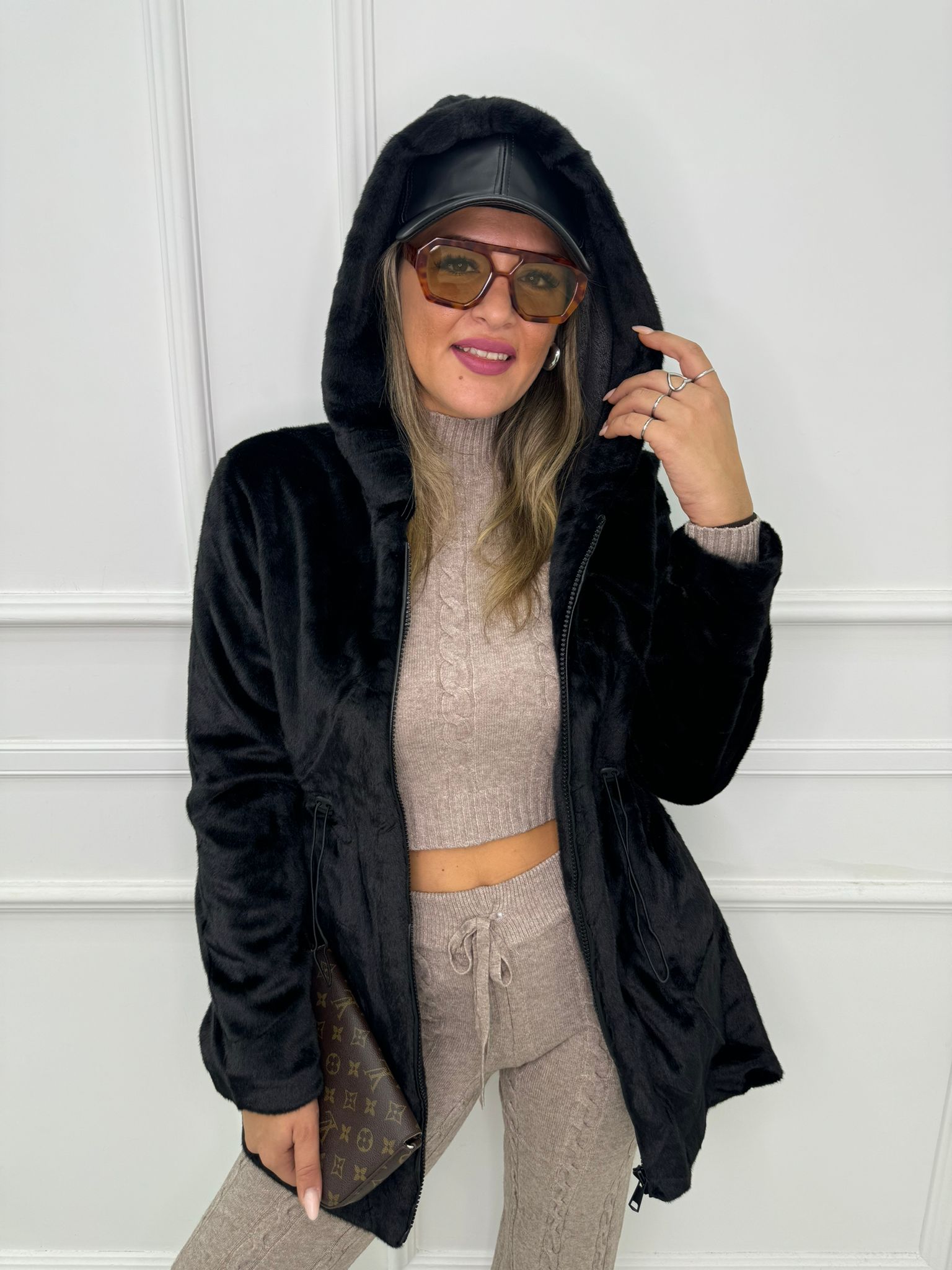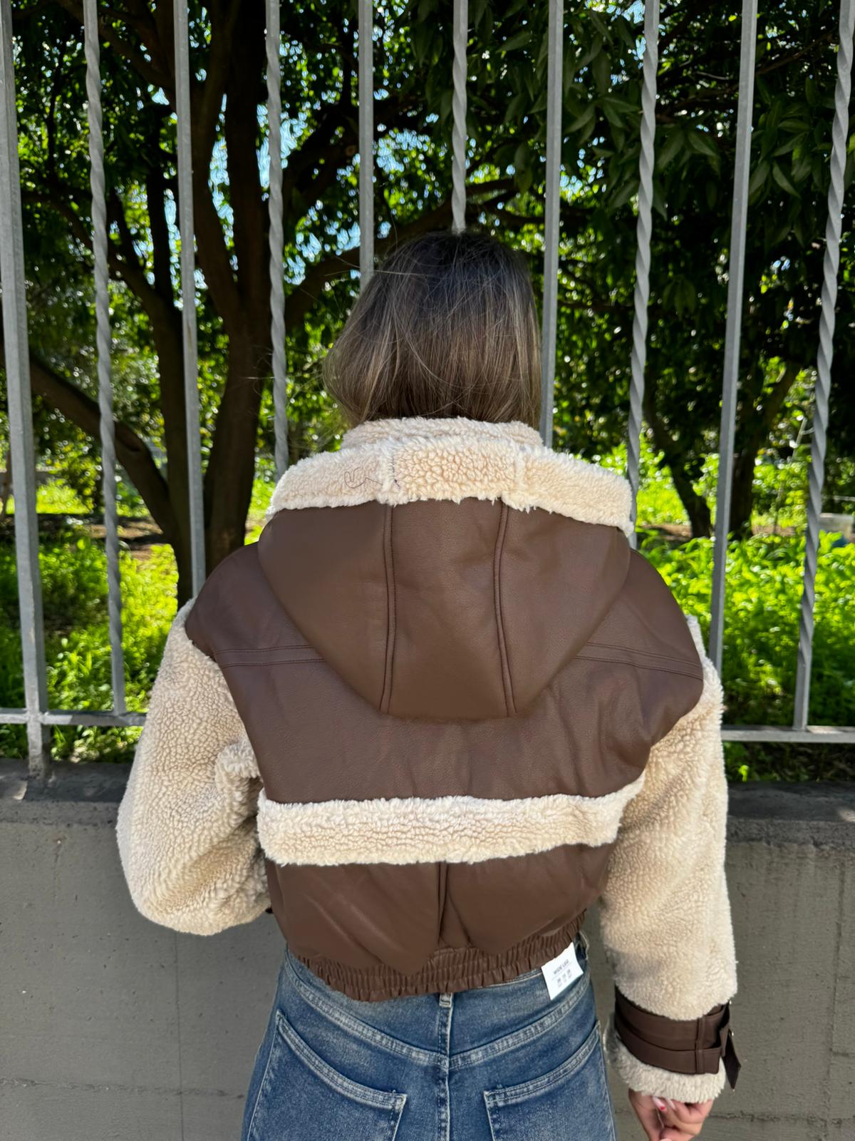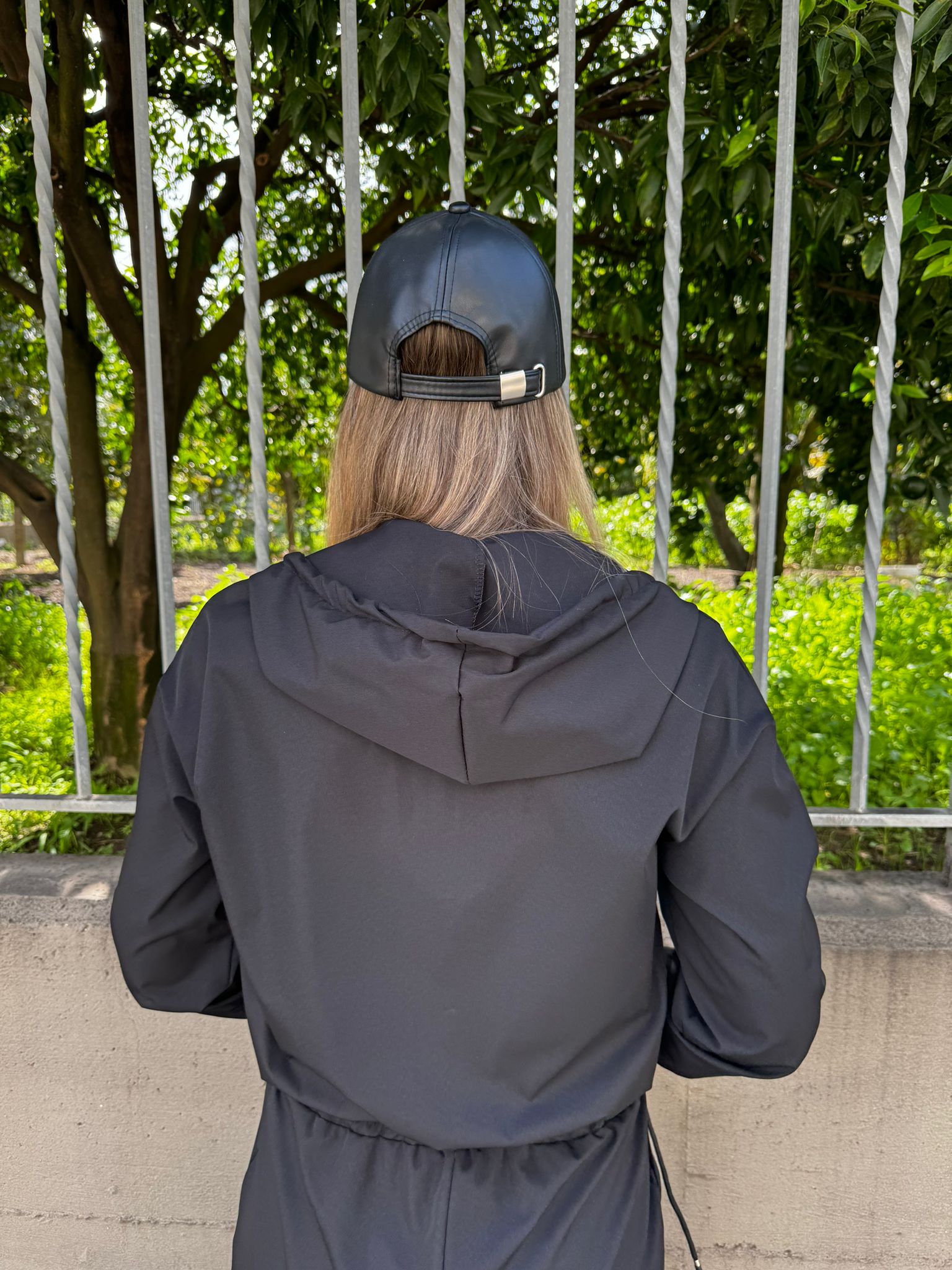 Cappotto doppio petto con cintura e fibbie eco pelle