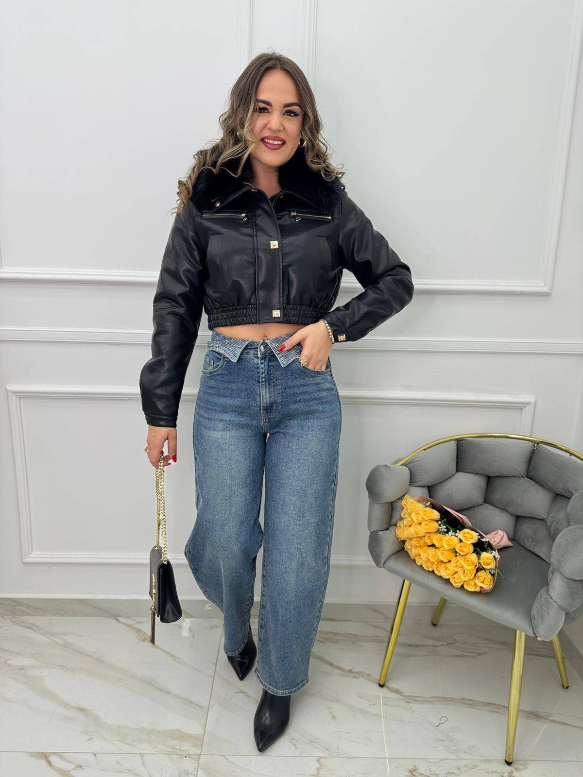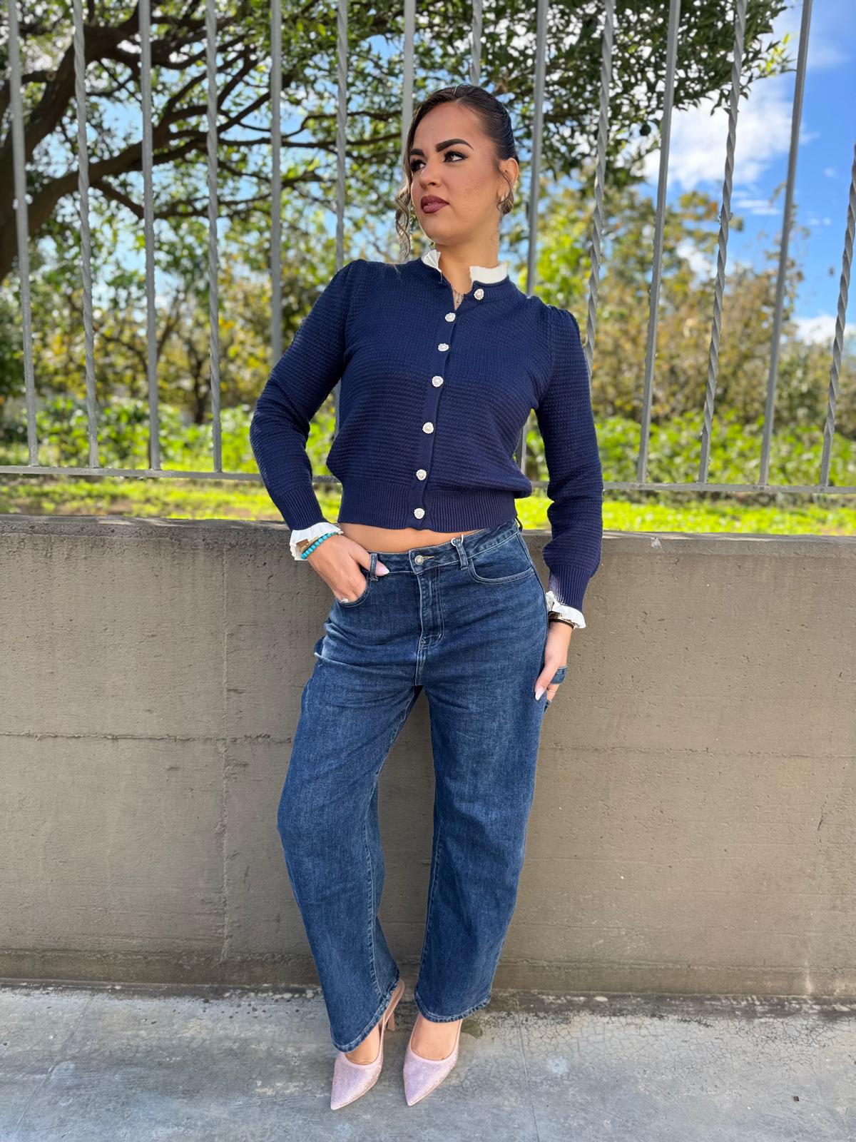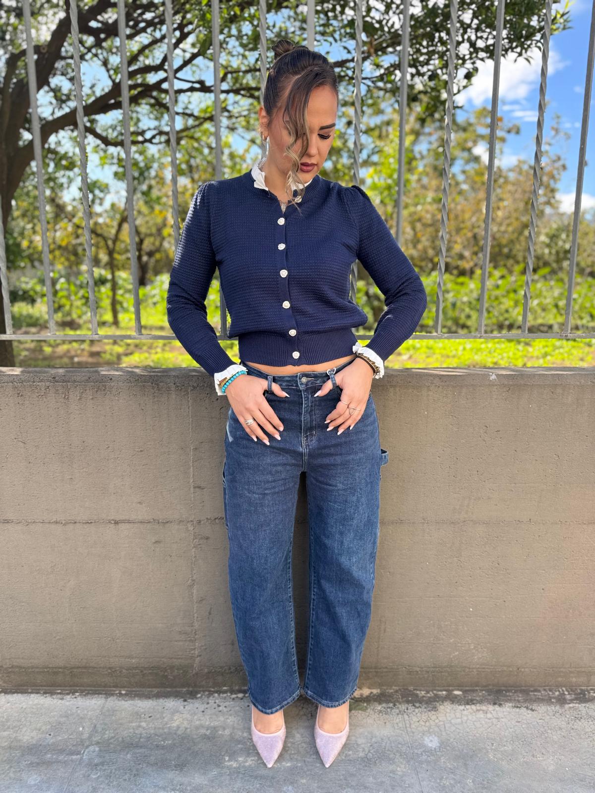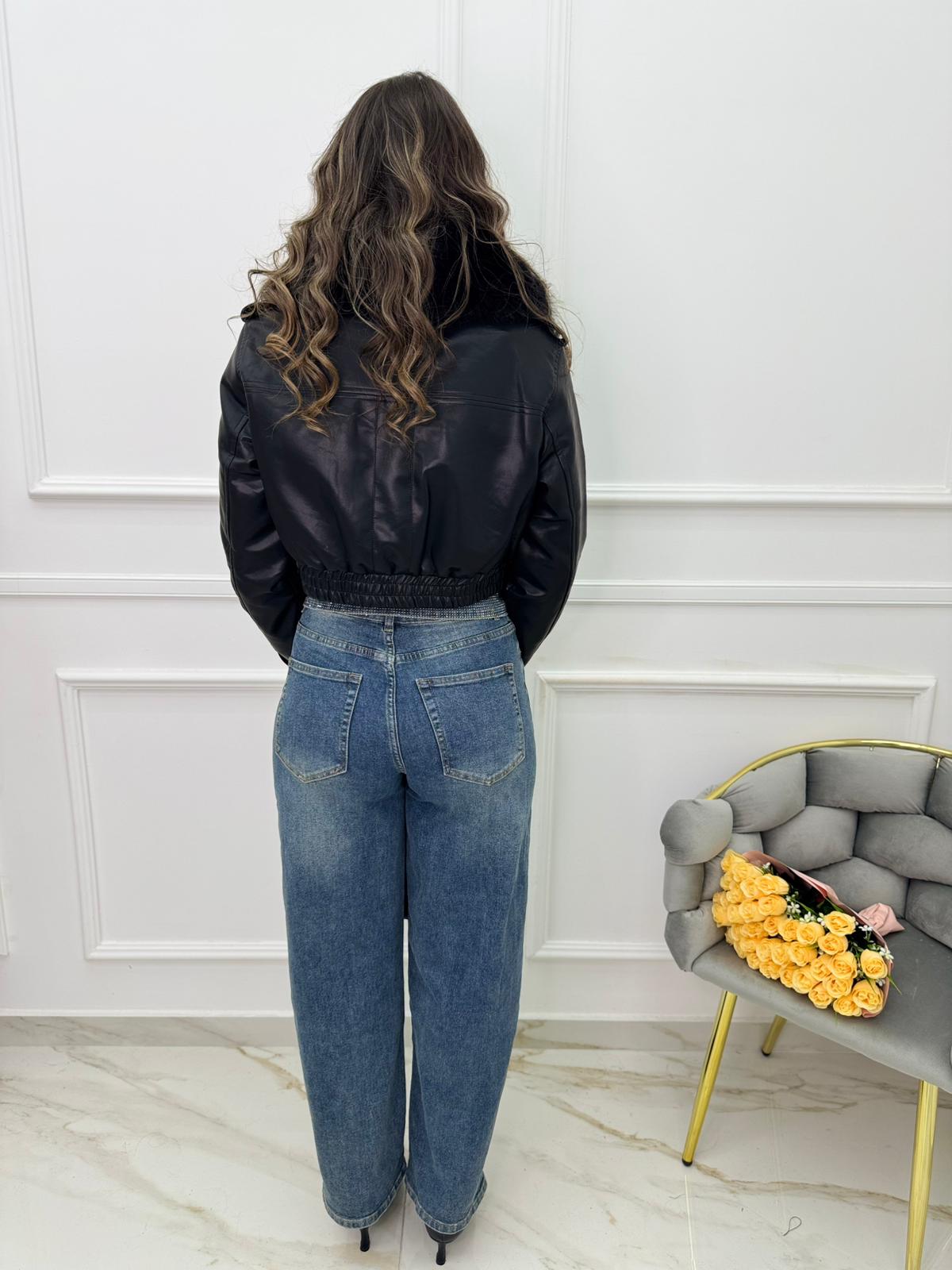 Jeans balloon con risvolto swarovski in vita