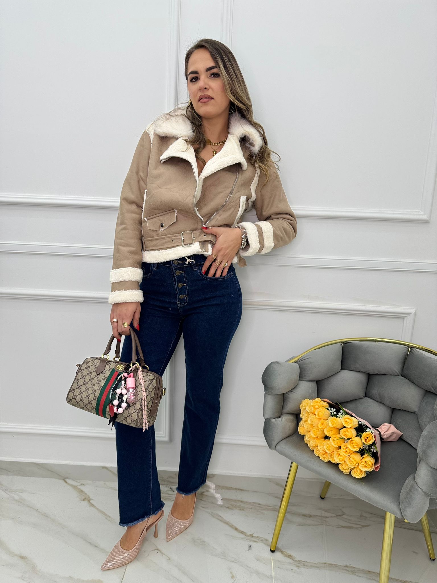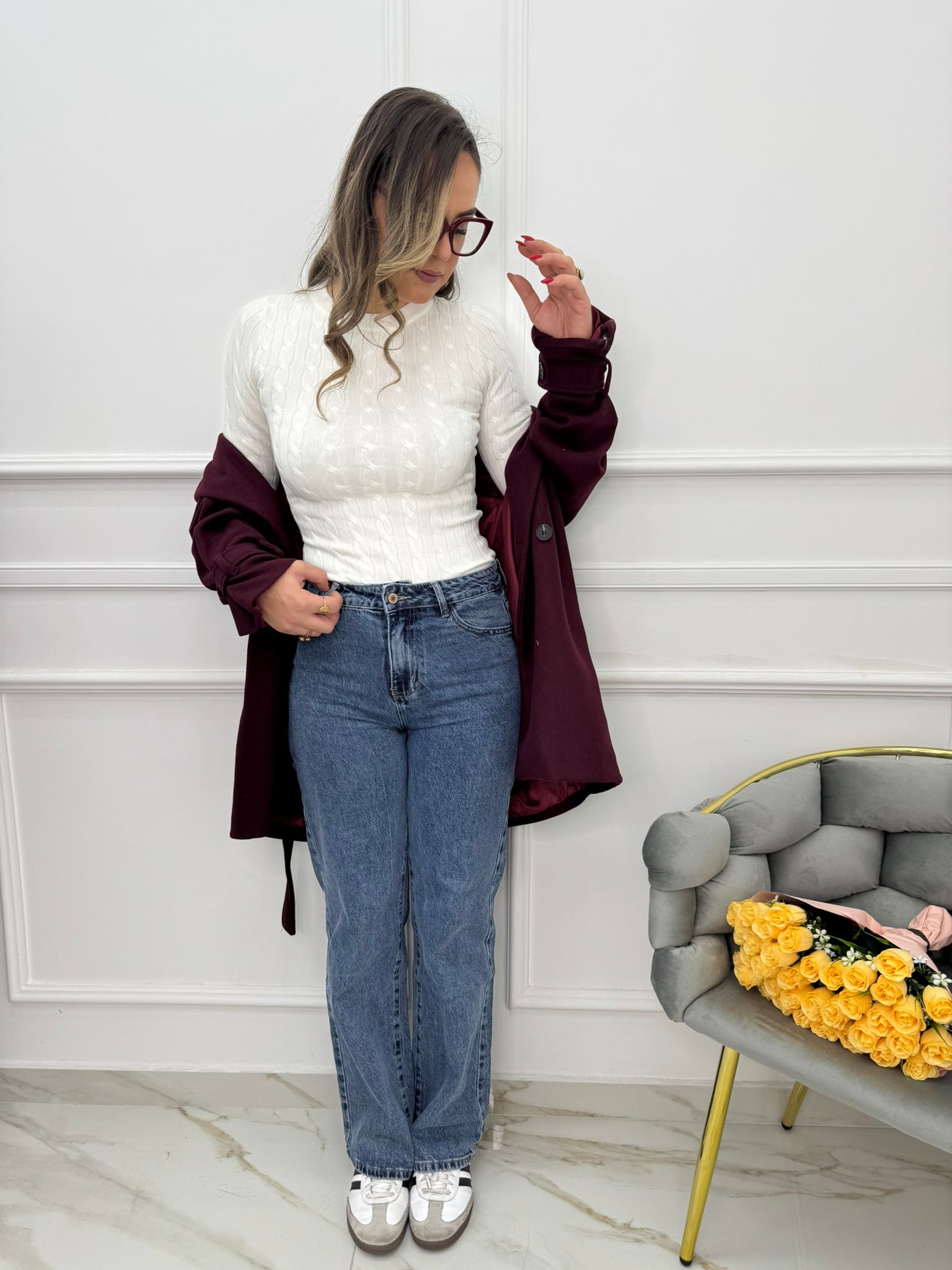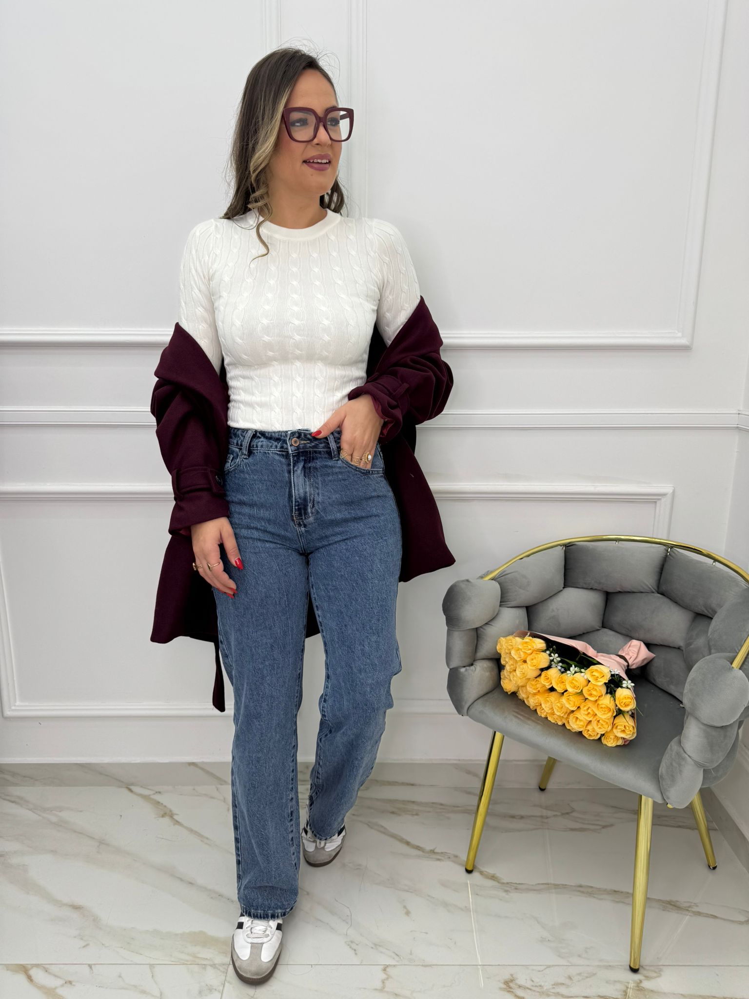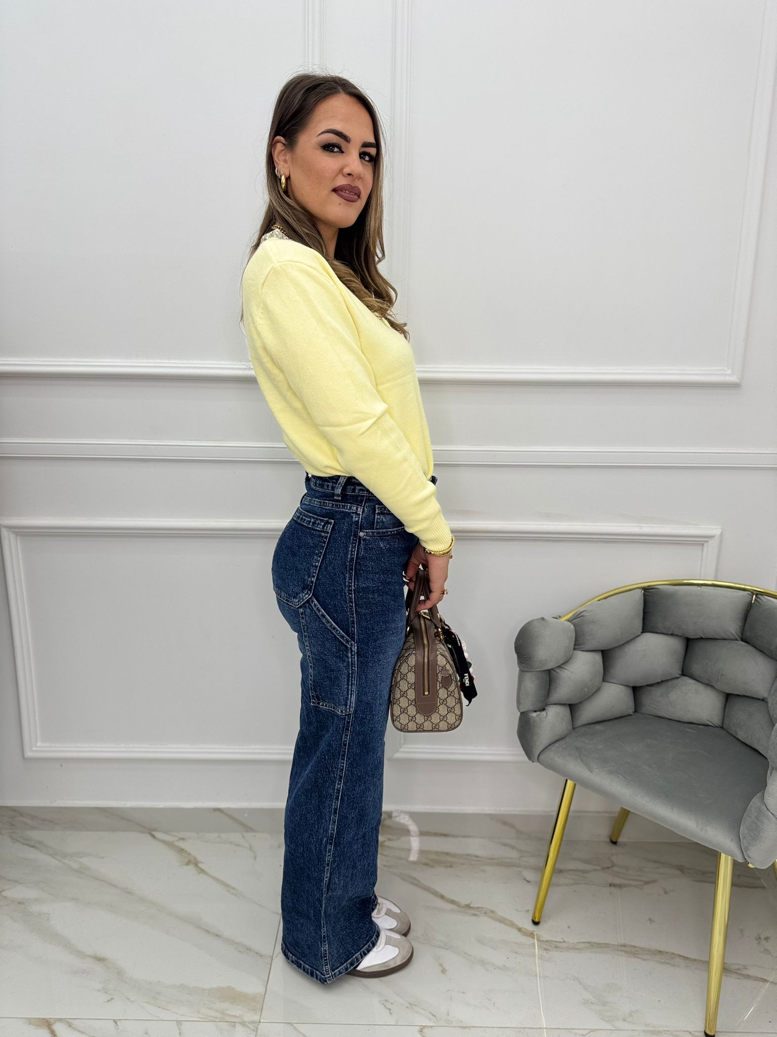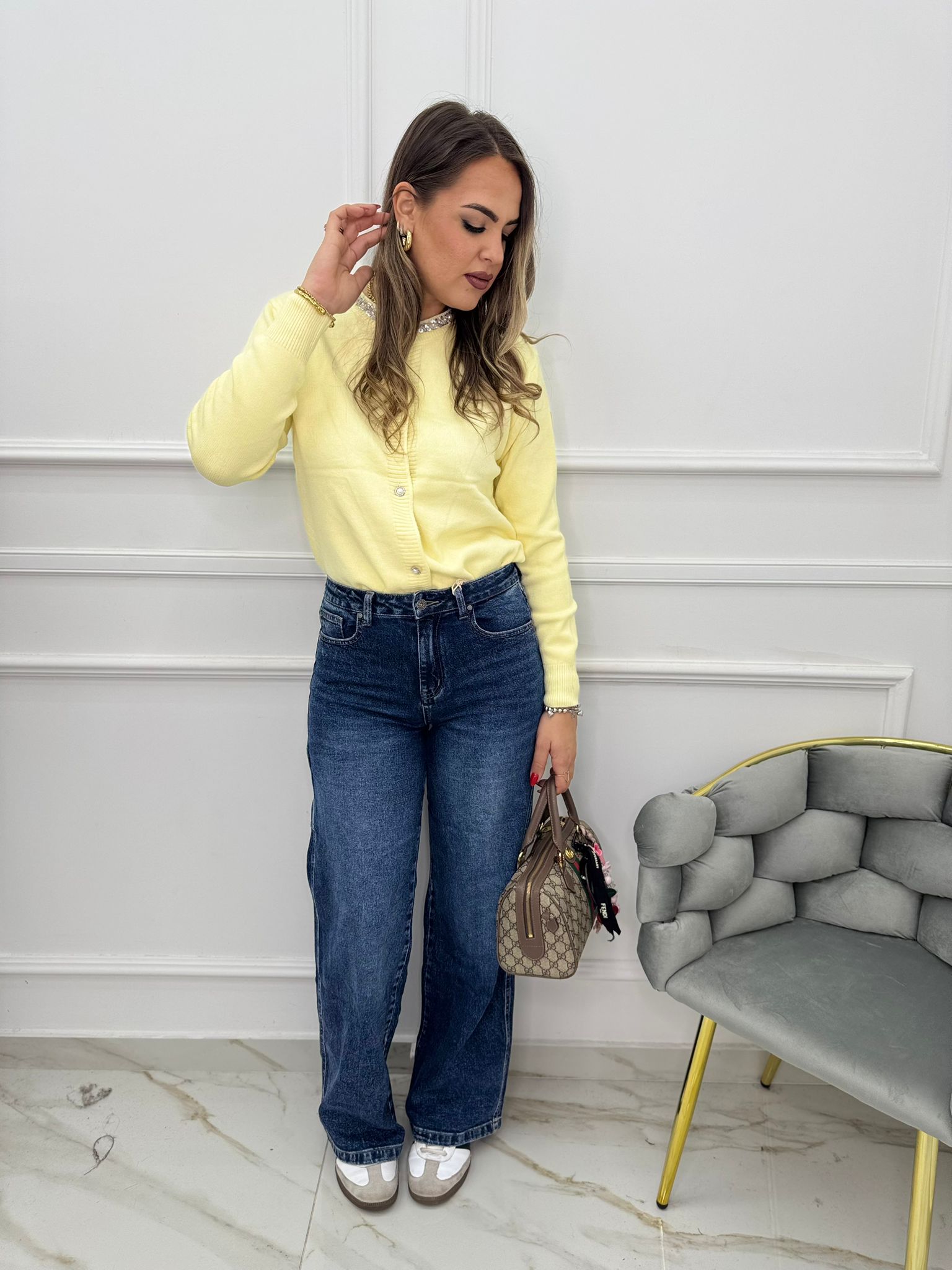 Jeans balloon con risvolto swarovski in vita