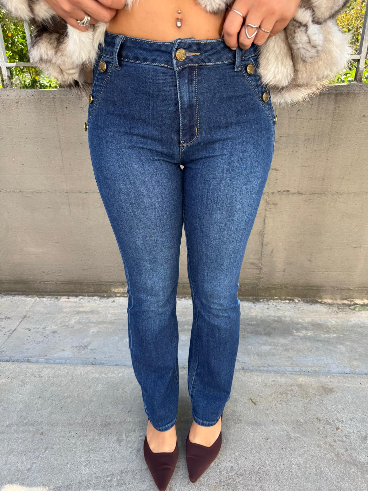Jeans gamba dritta con bottoni avanti