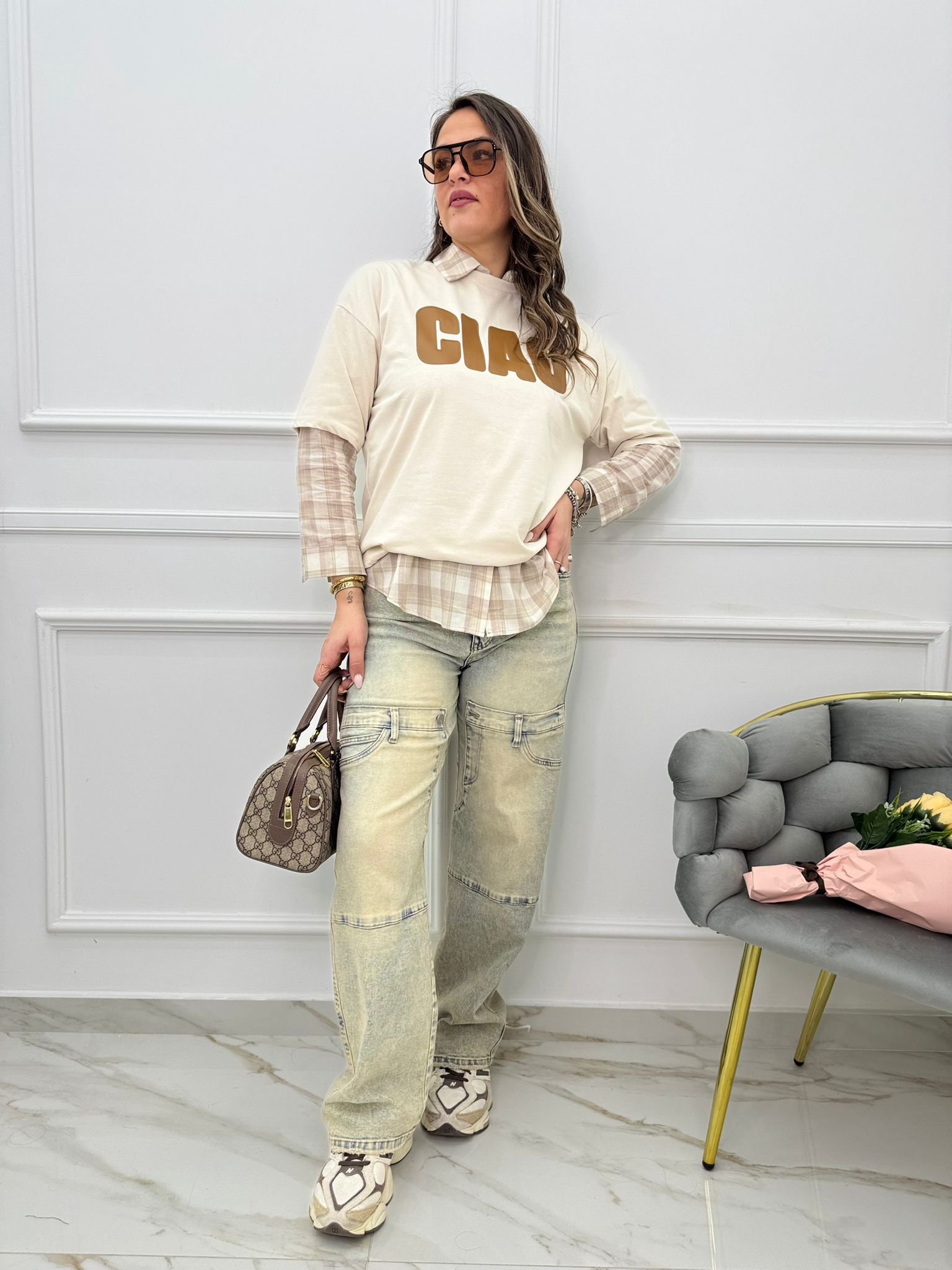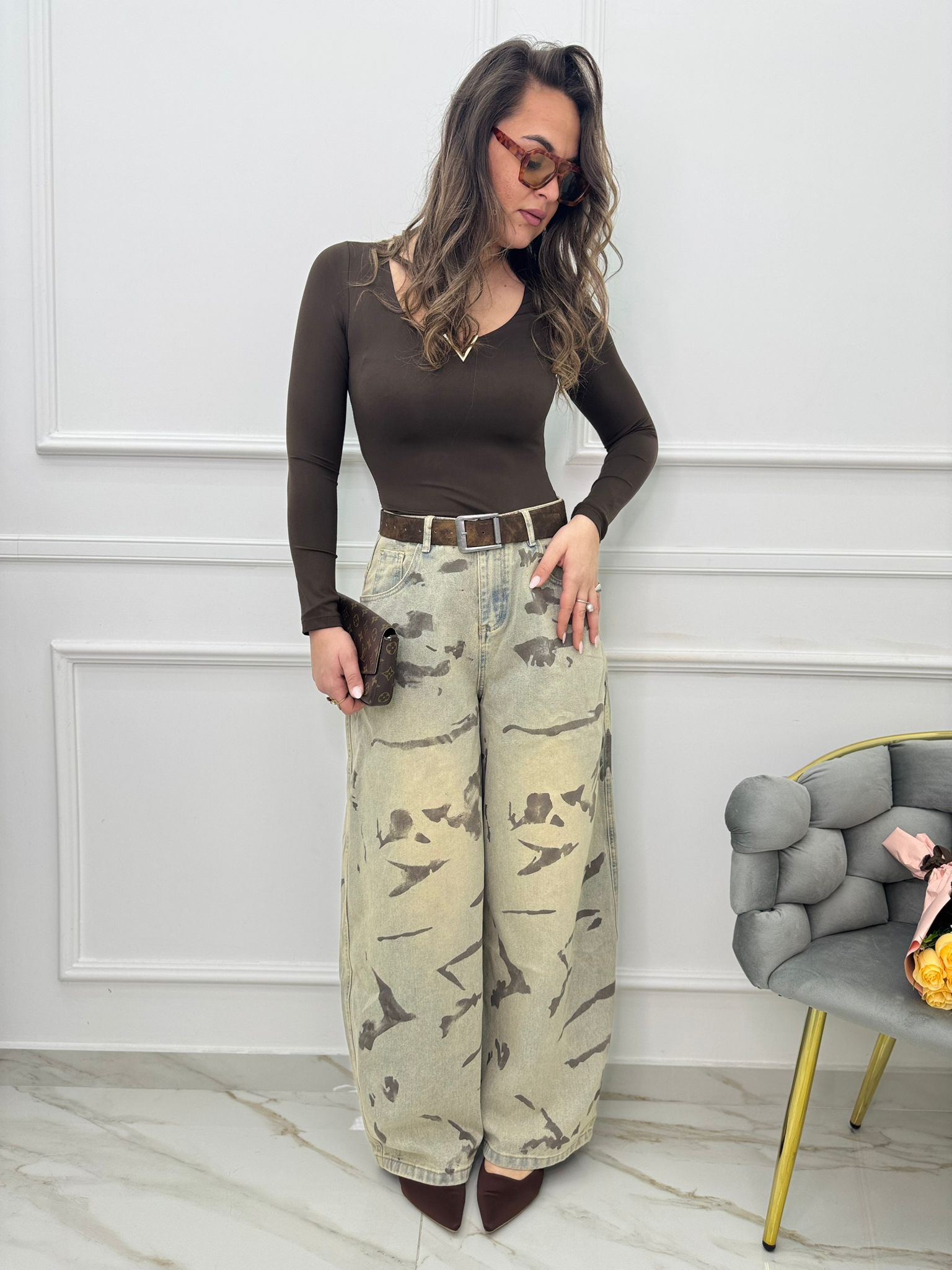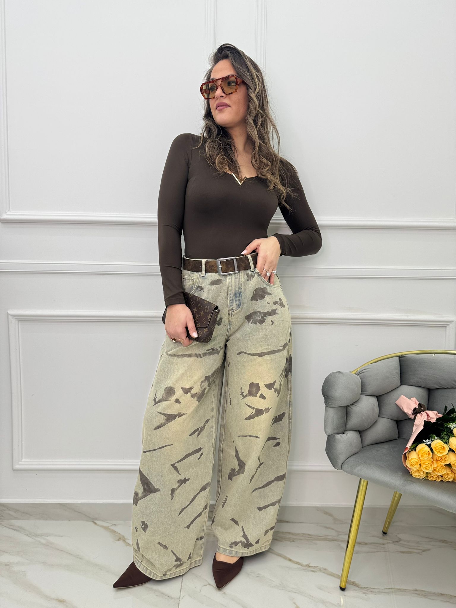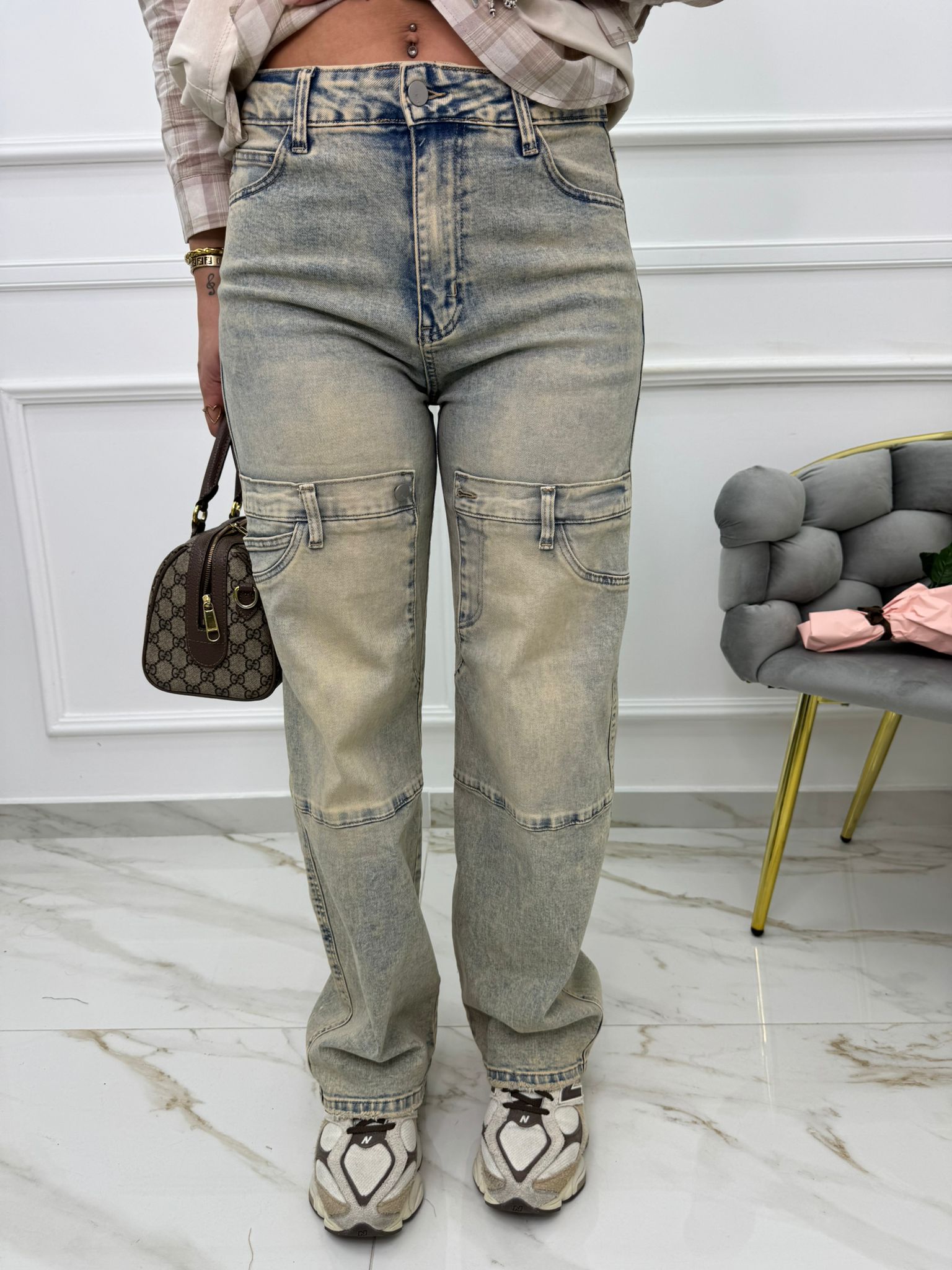 Jeans wide leg con chiusura trasversale lavaggio chiaro