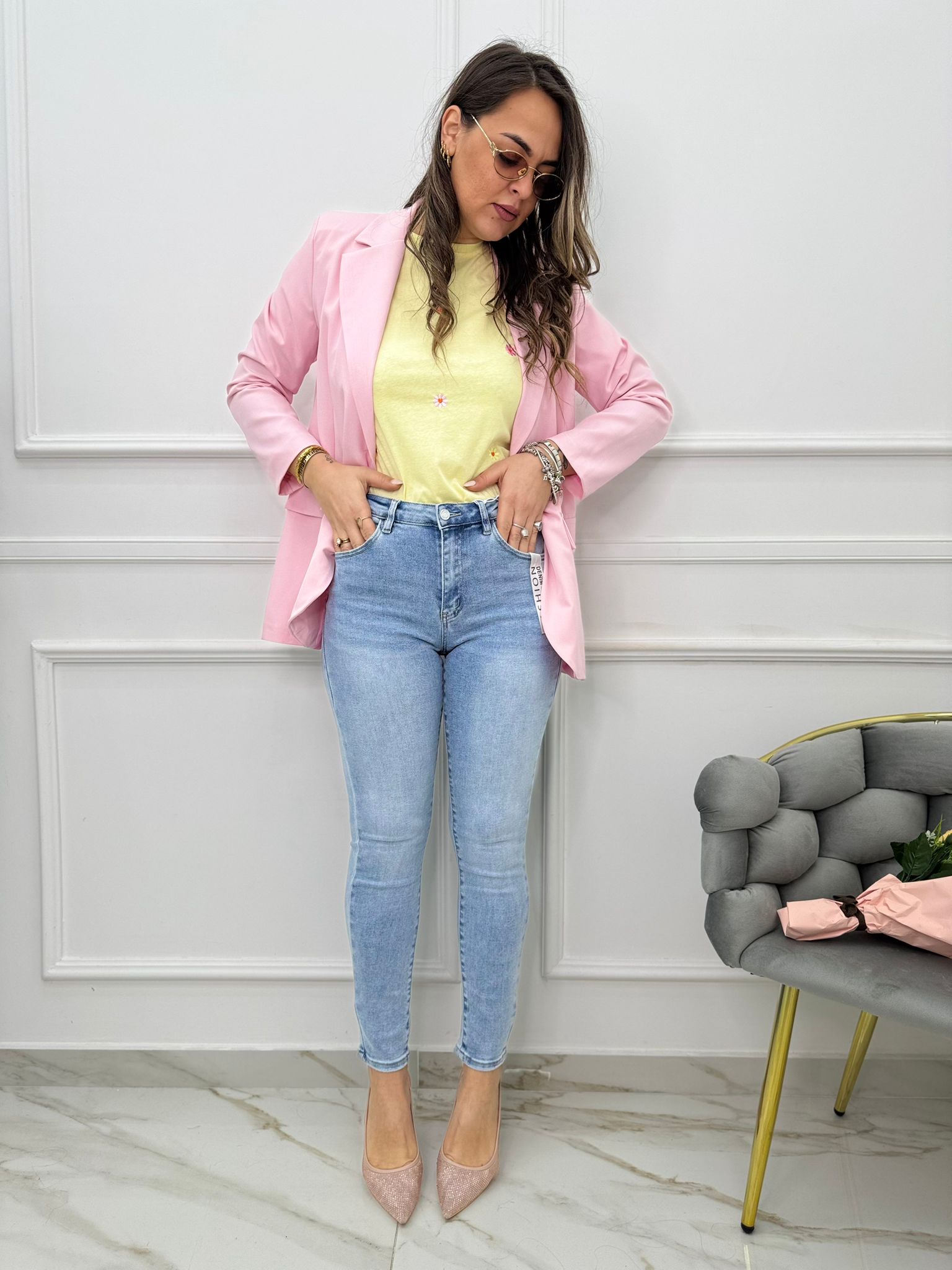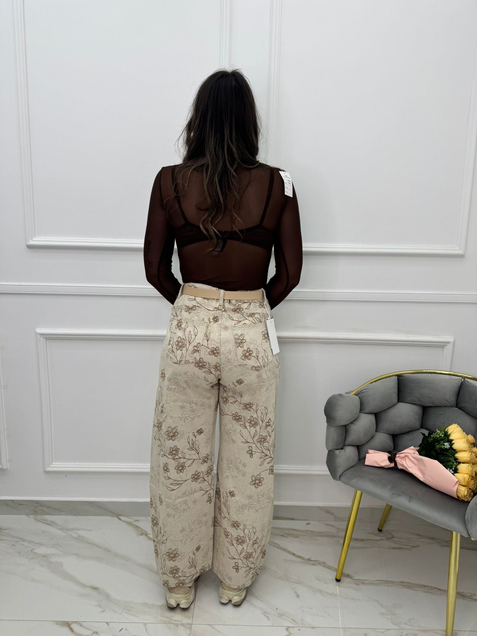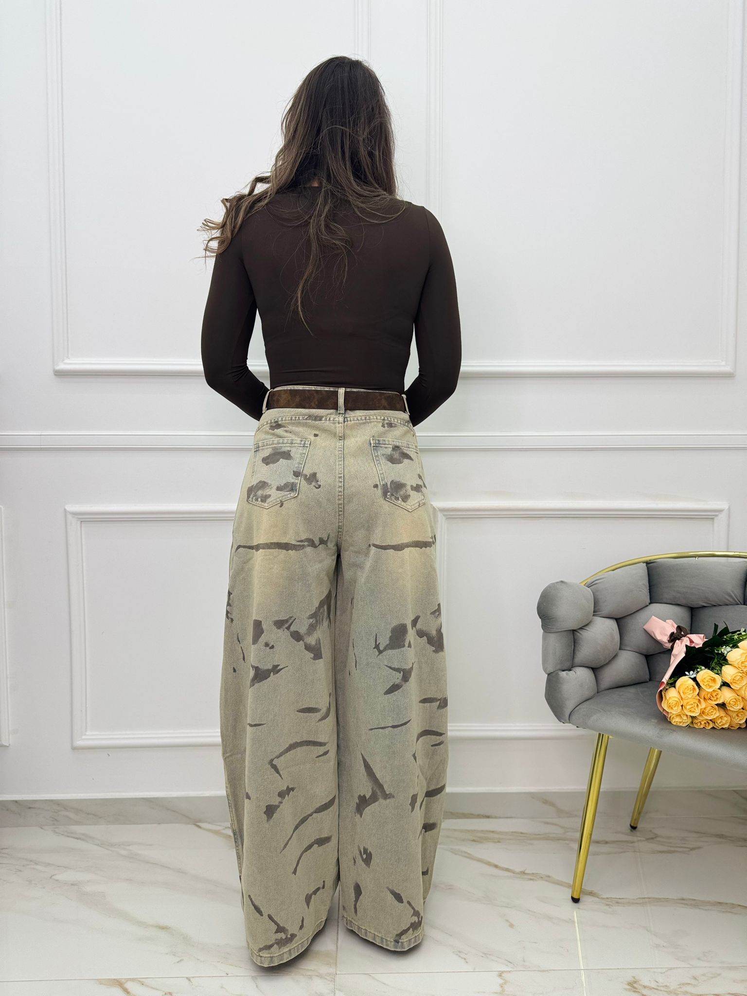 Coordinato denim 2 pezzi con pantalone palazzo e giubbino con cintura