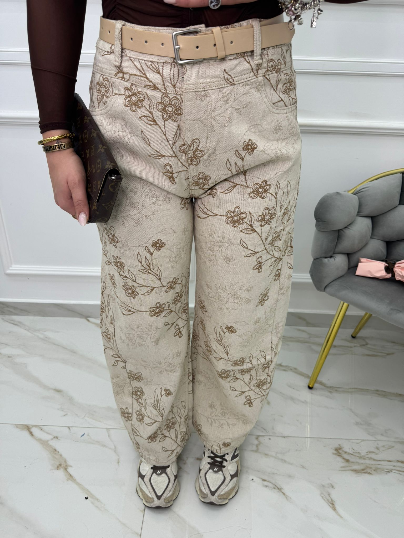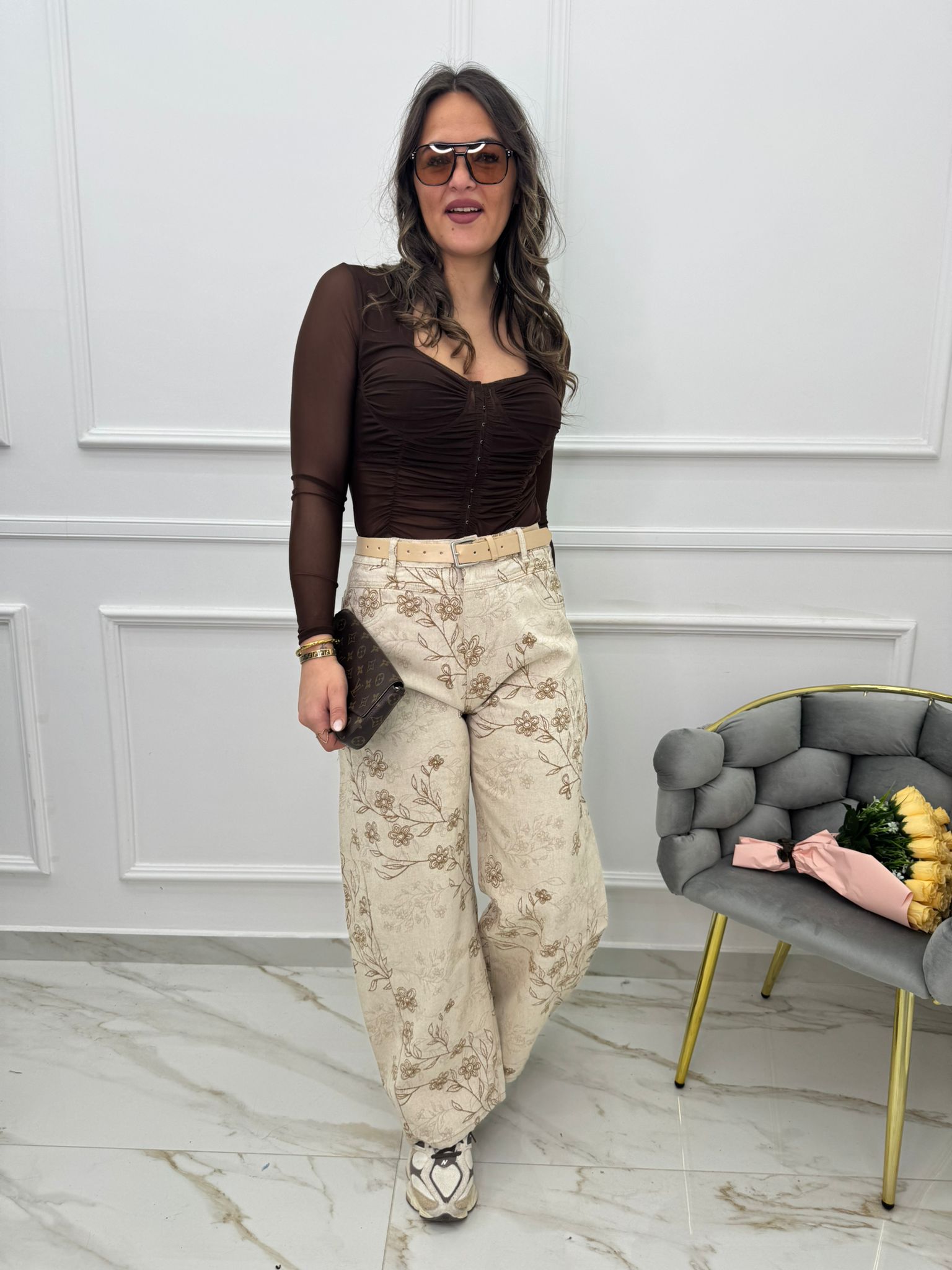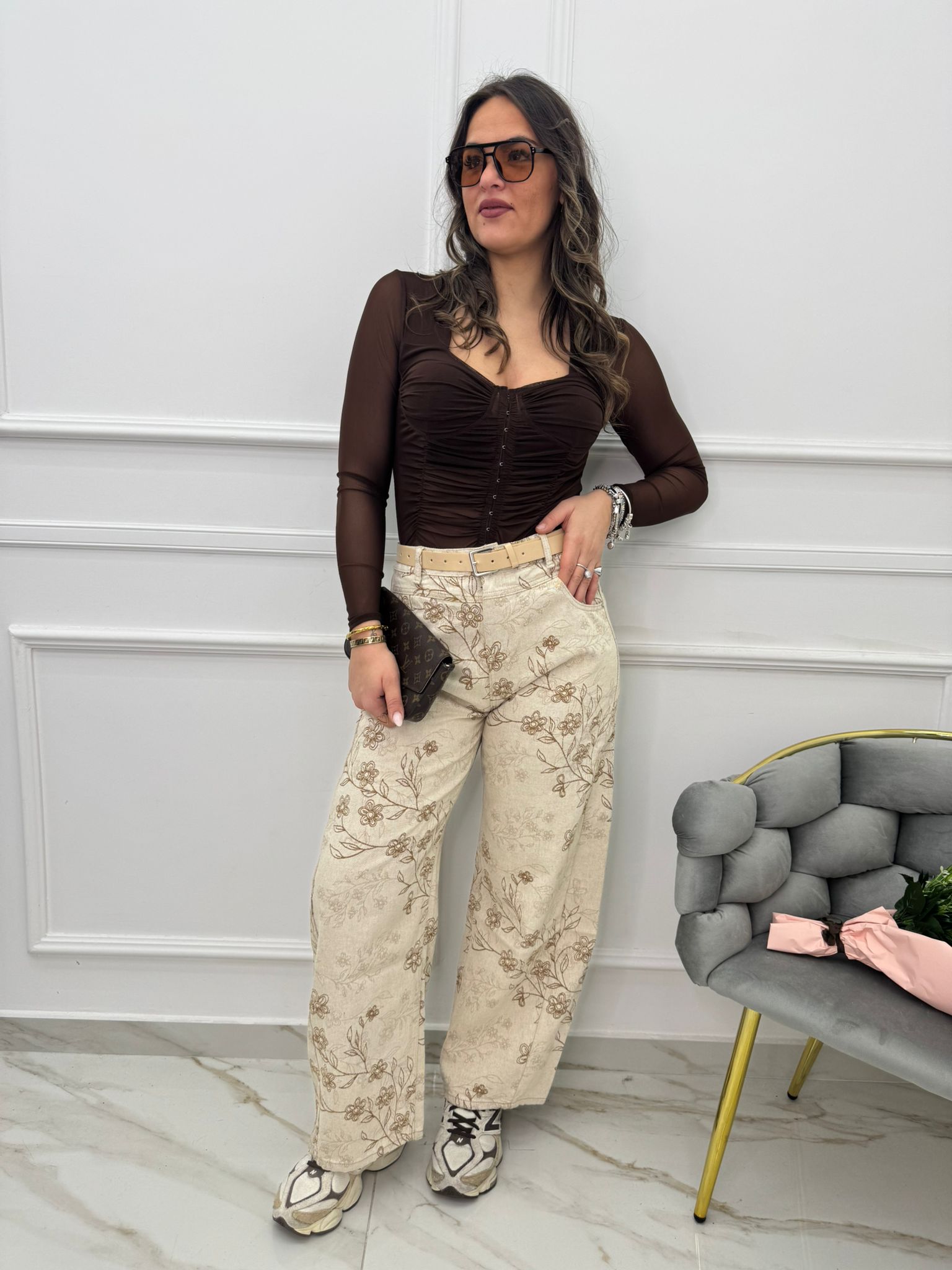 Coordinato denim 2 pezzi con pantalone palazzo e giubbino con cintura
