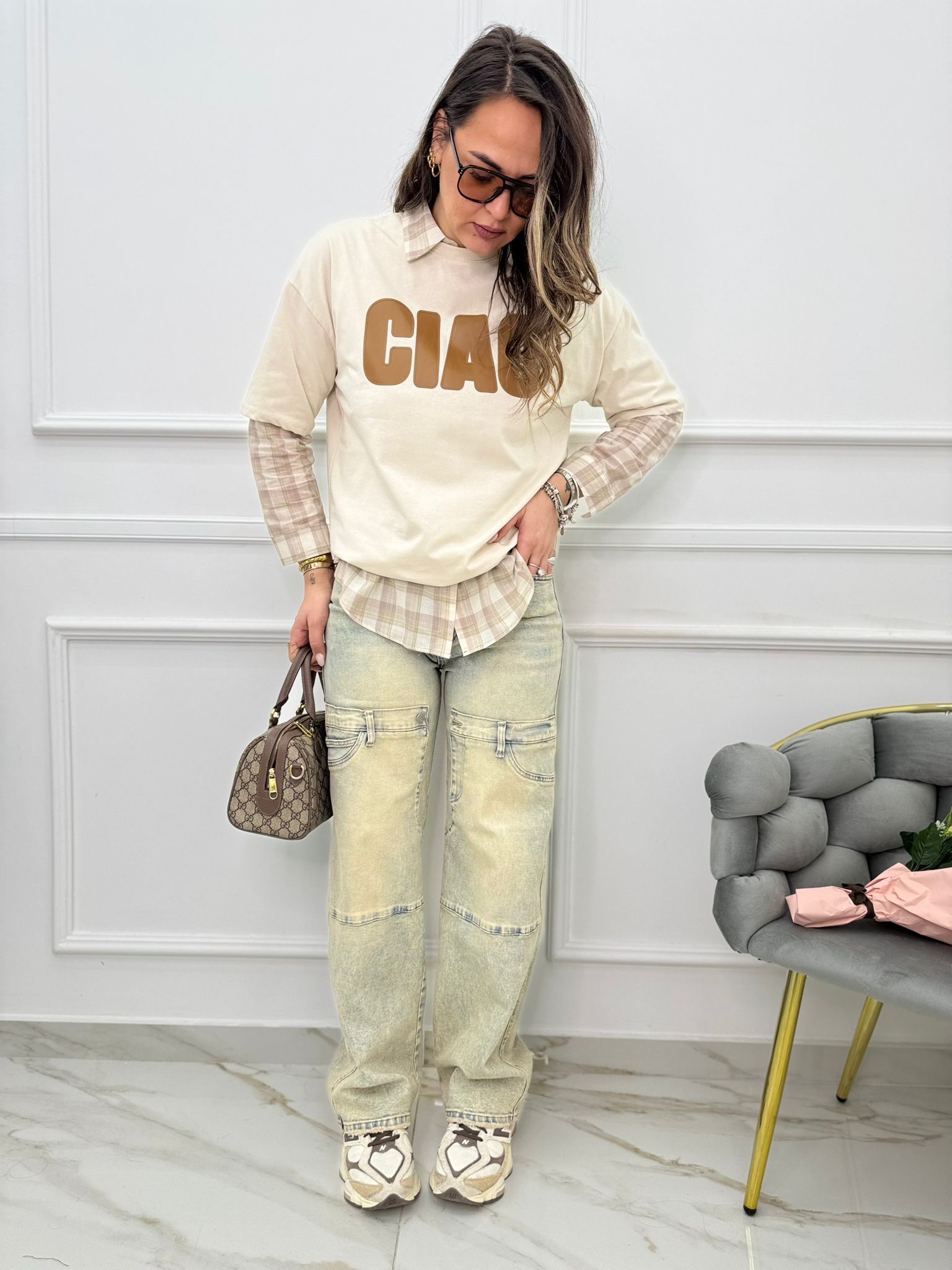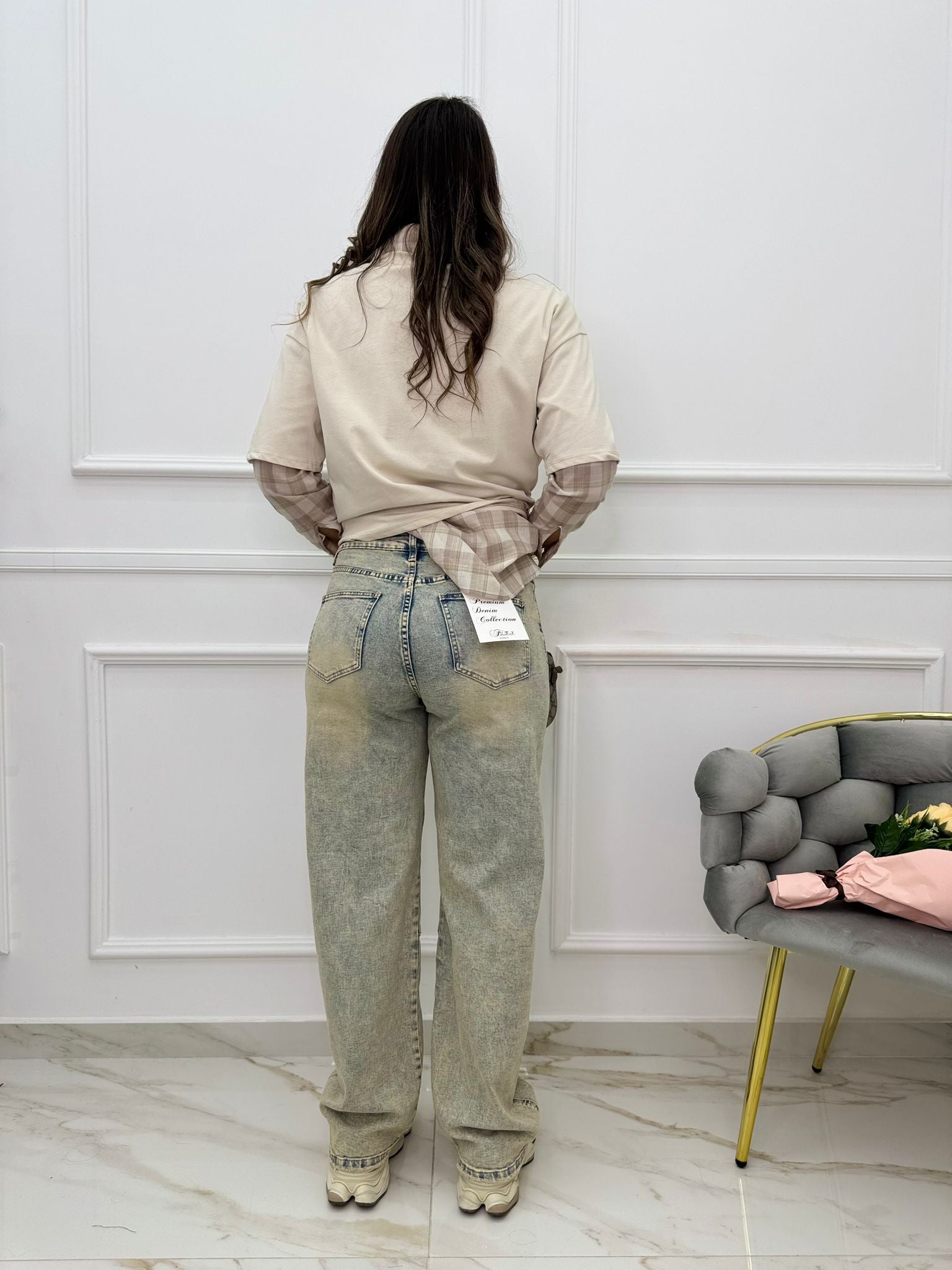 Jeans balloon lavaggio sfumato con piccoli strappi