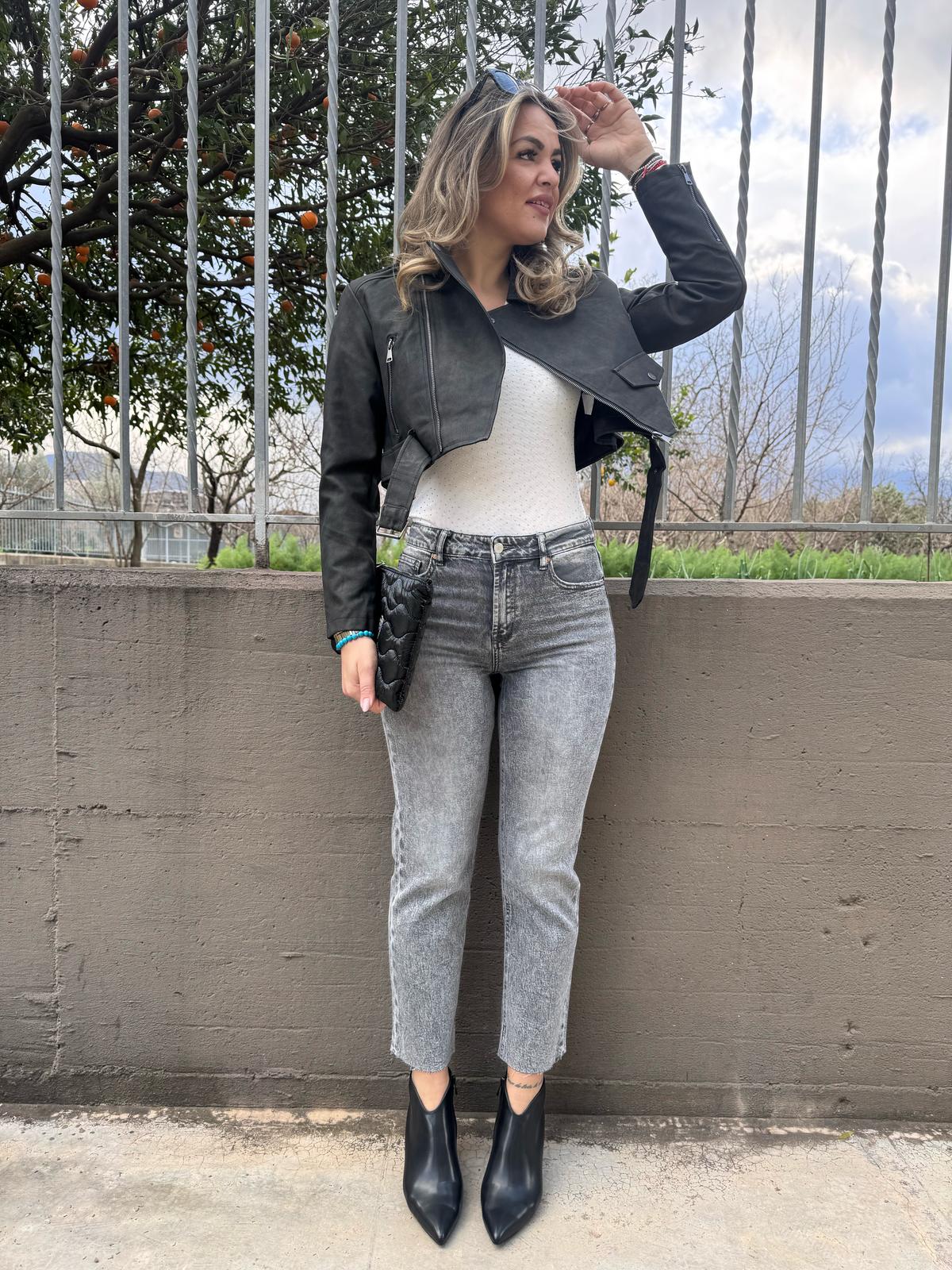 - La modella è una taglia 44, alta 1,79m e indossa la taglia "M"
