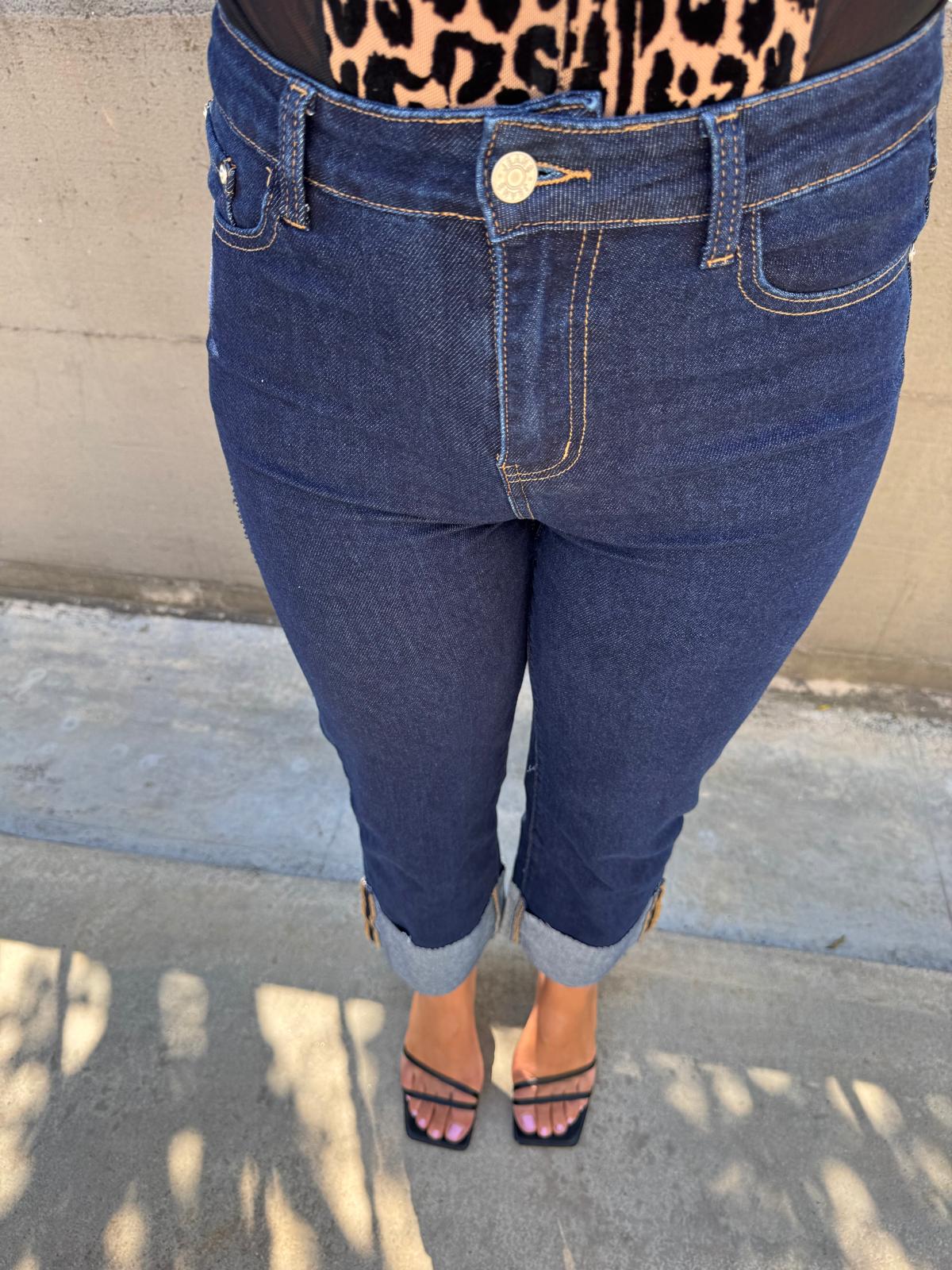Jeans lavaggio scuro con risvolto