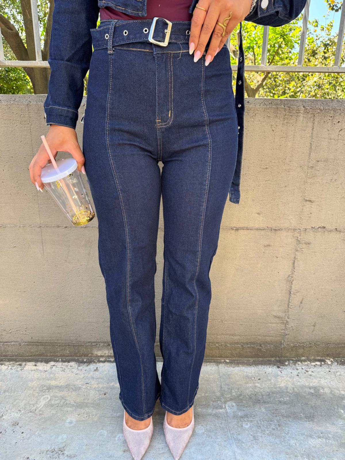 Jeans lavaggio scuro modello palazzo co cintura