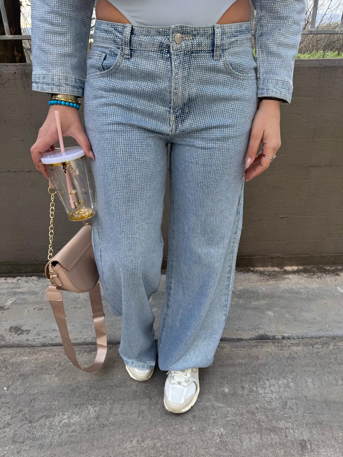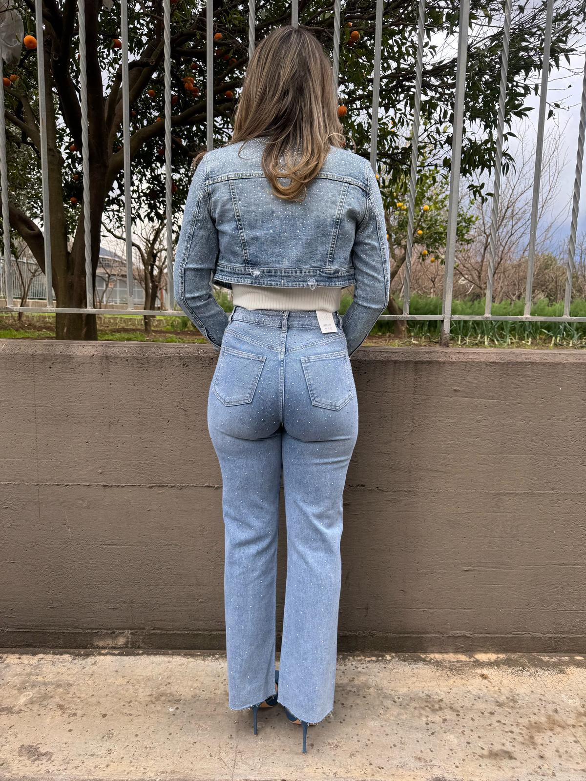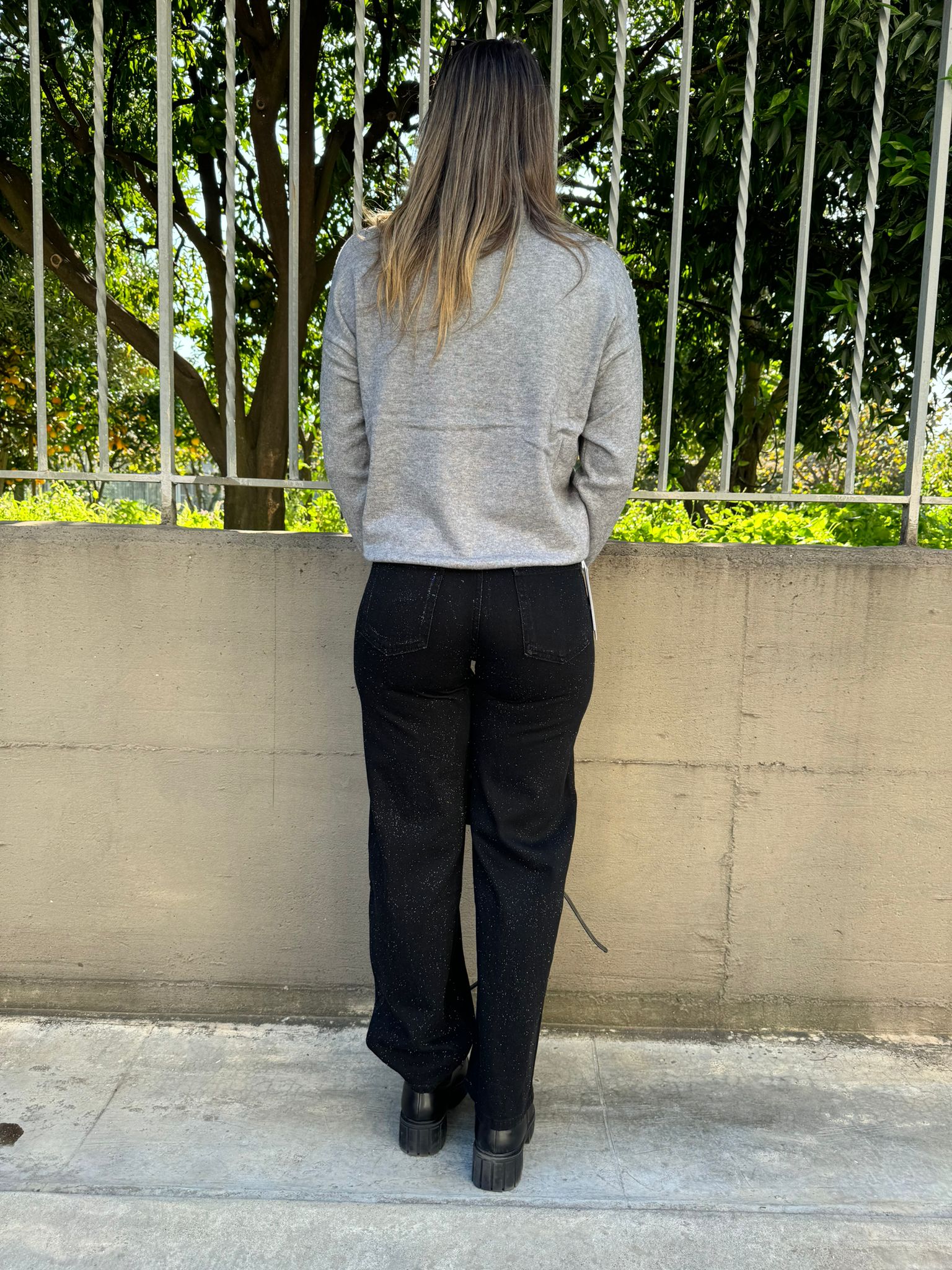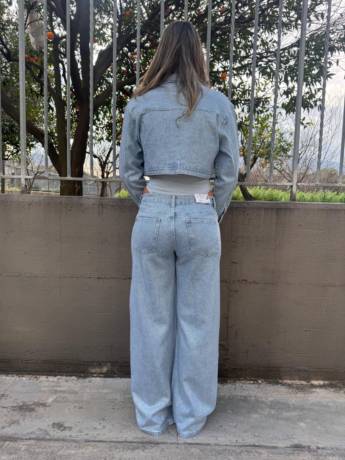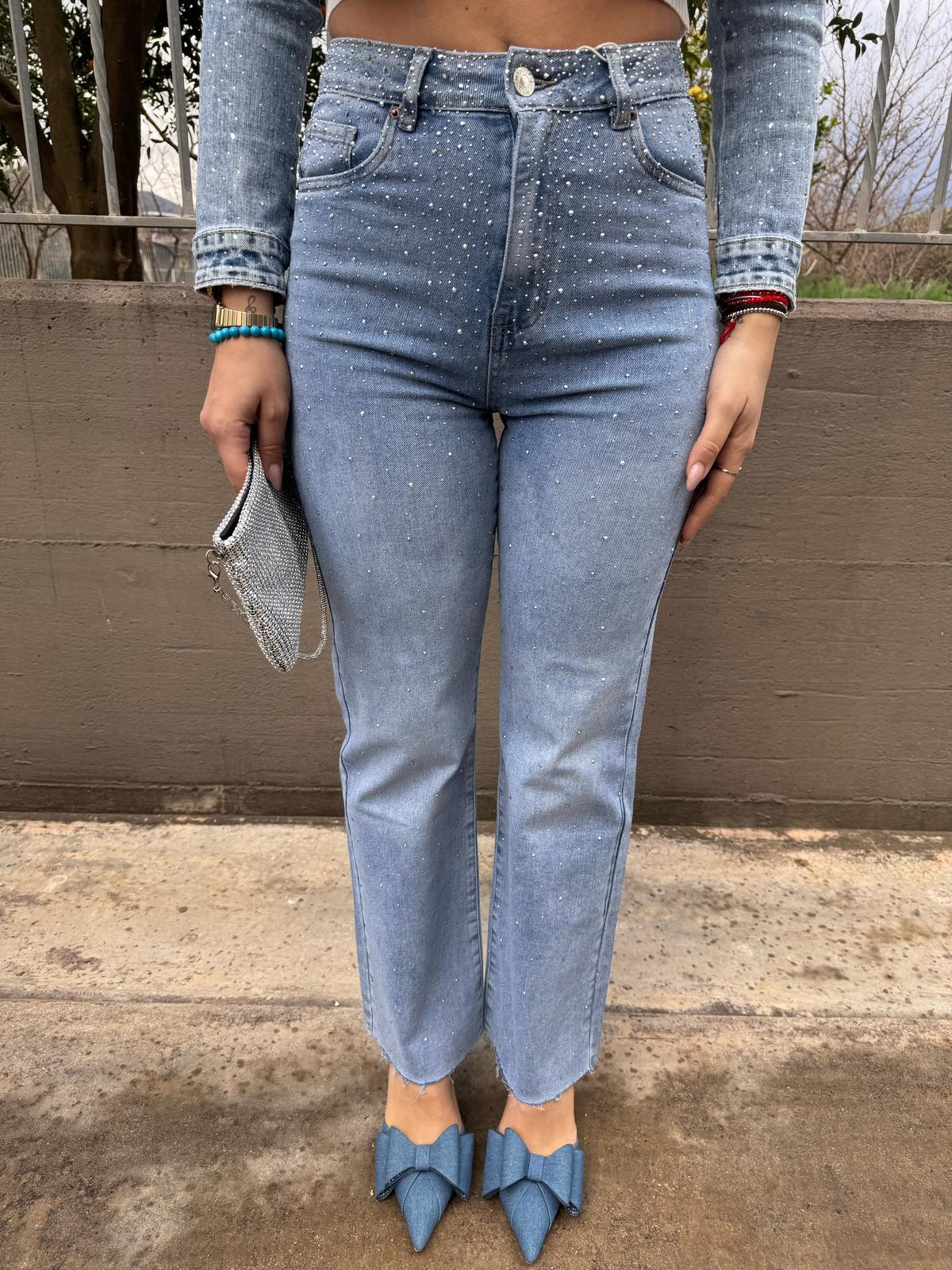 Jeans palazzo con brillantini e taglio laser alle caviglie