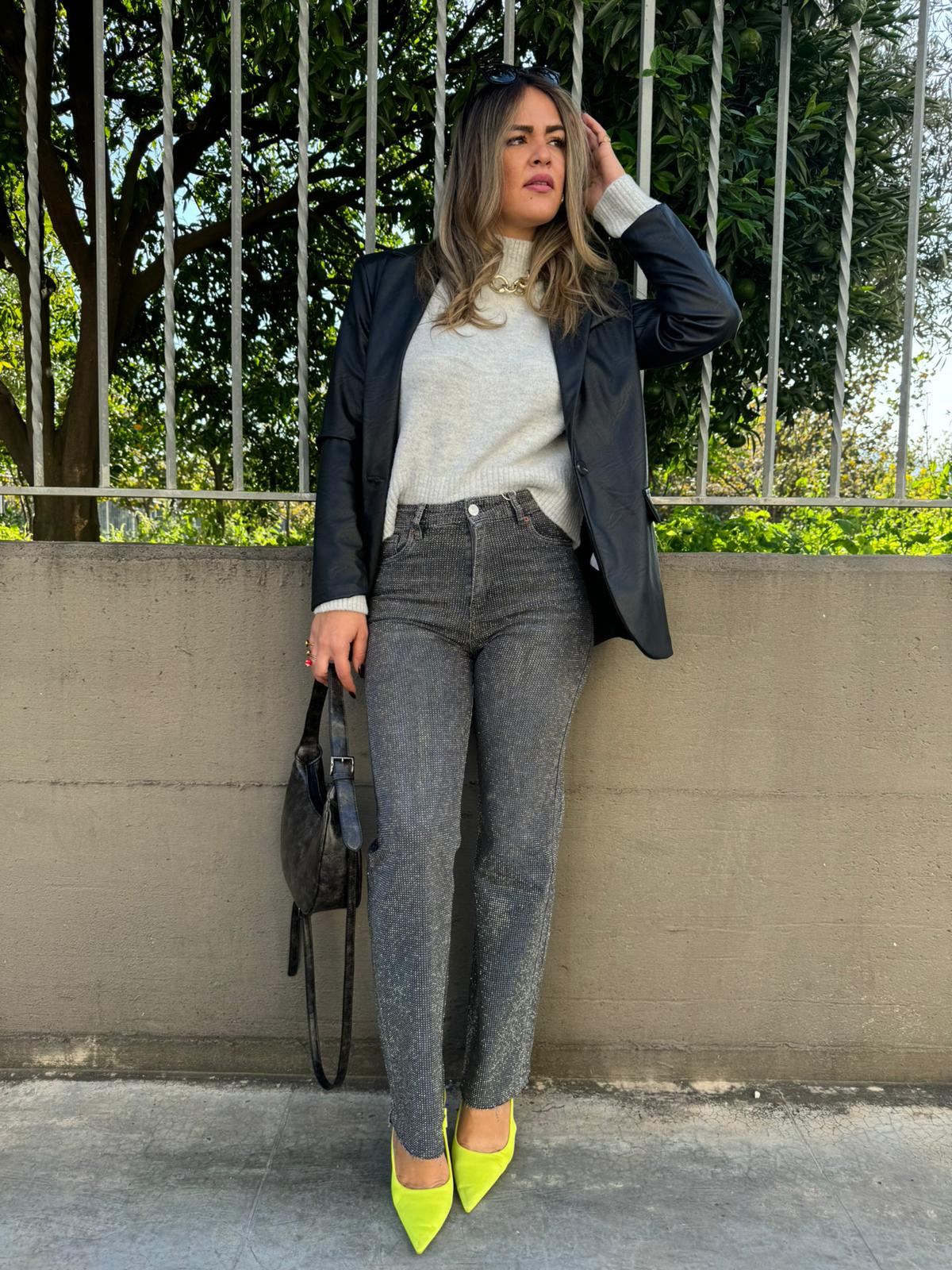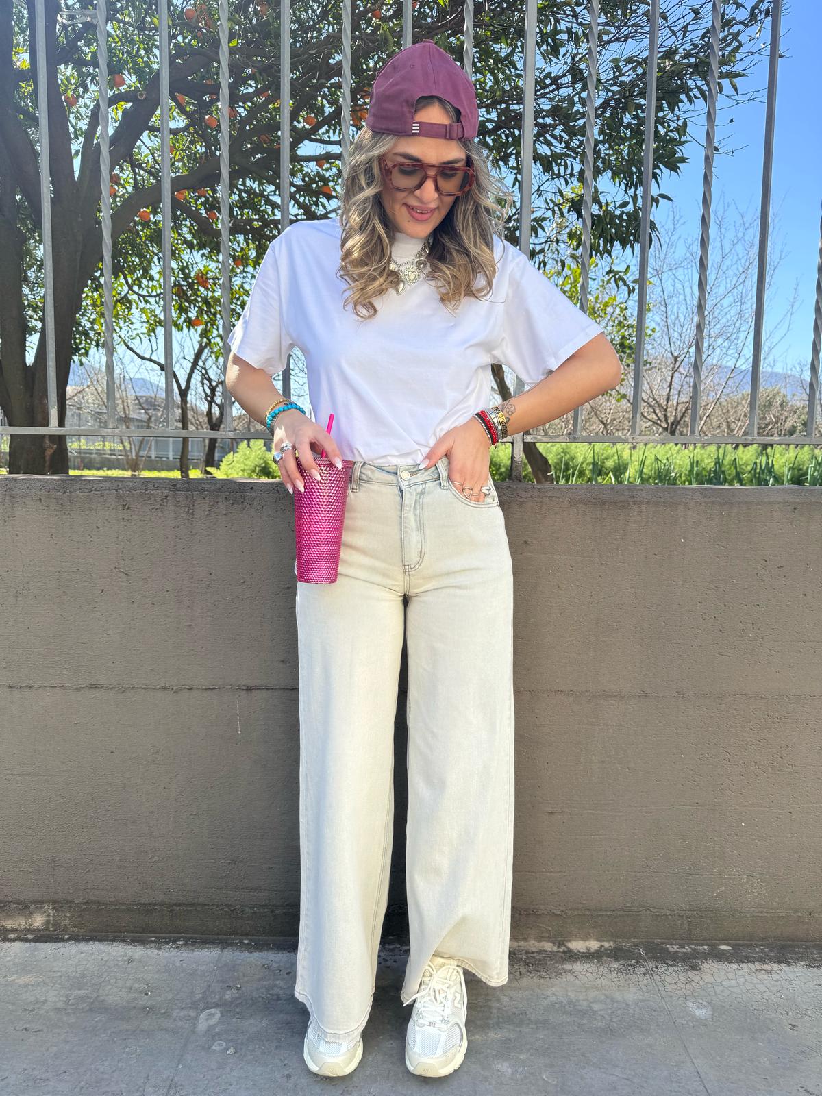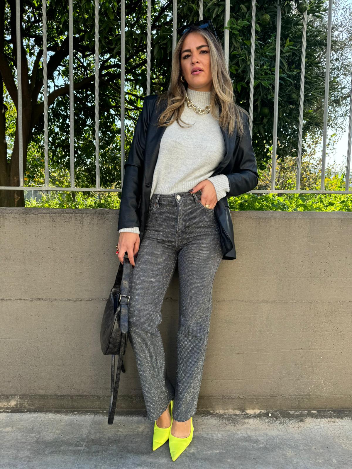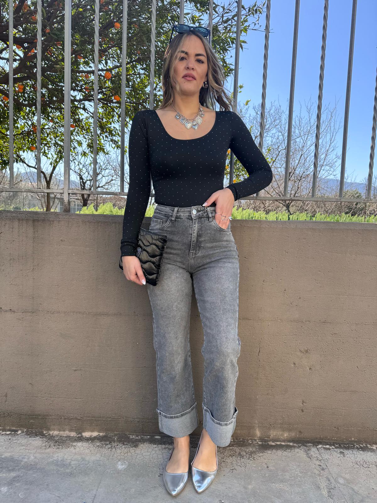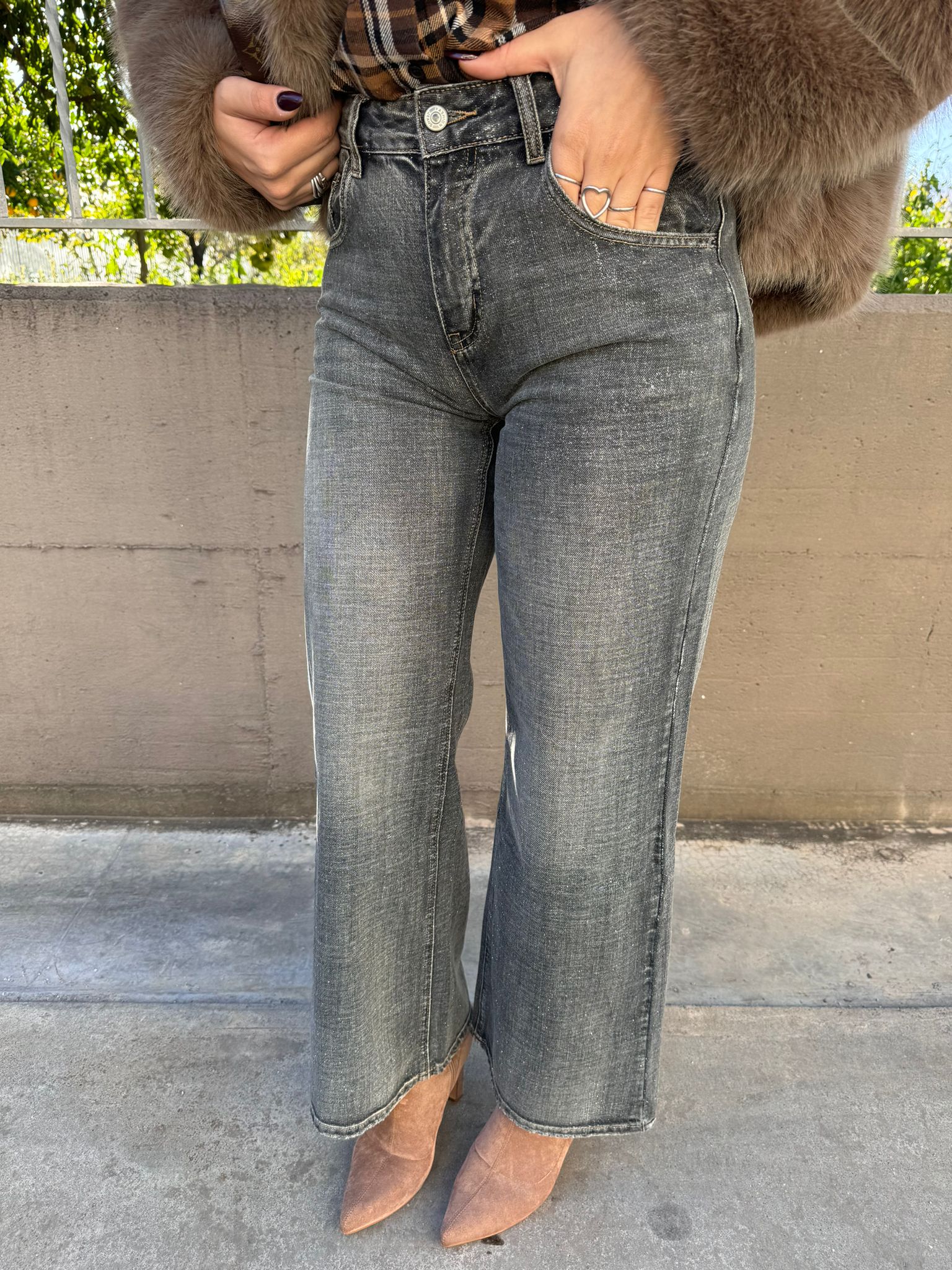 Jeans palazzo con brillantini e taglio laser alle caviglie