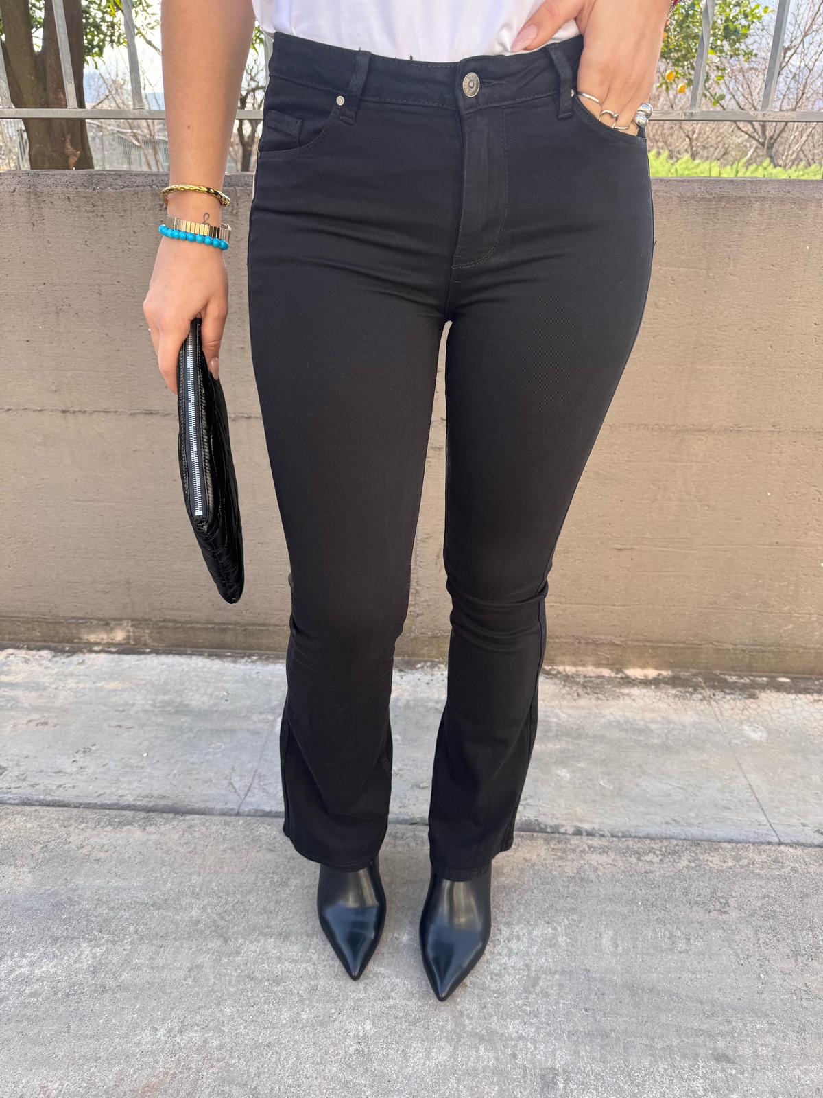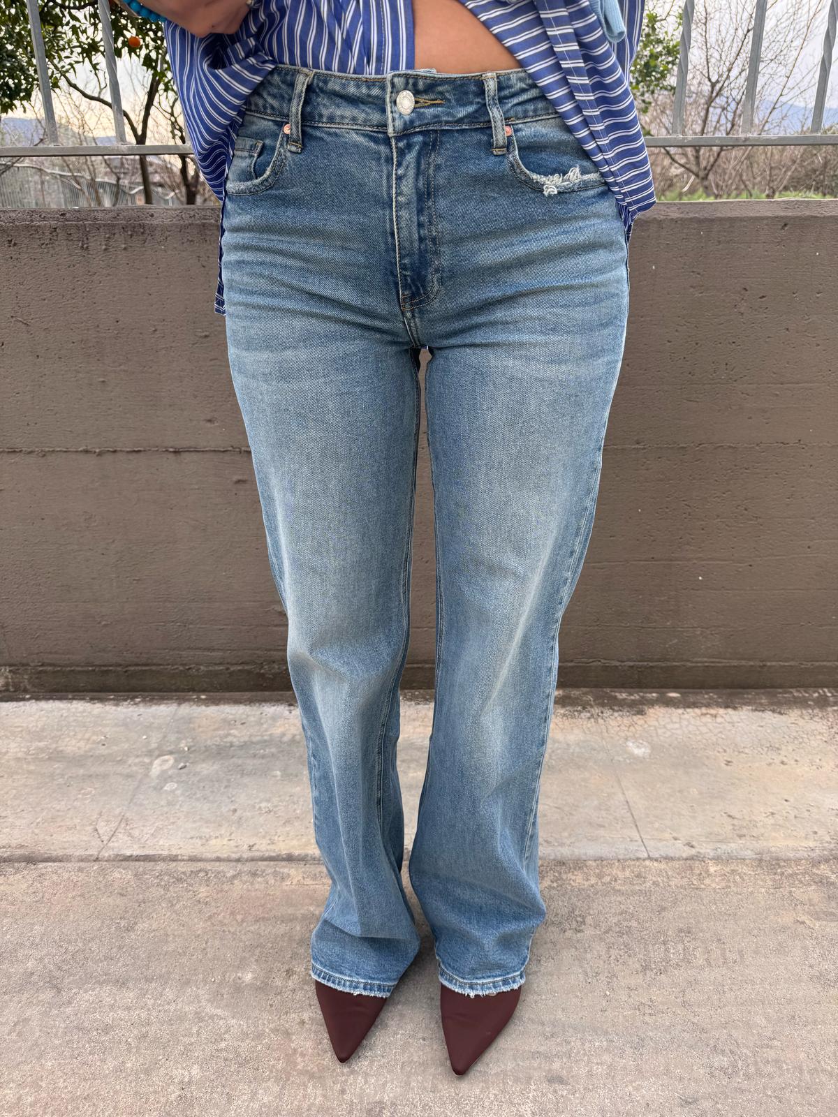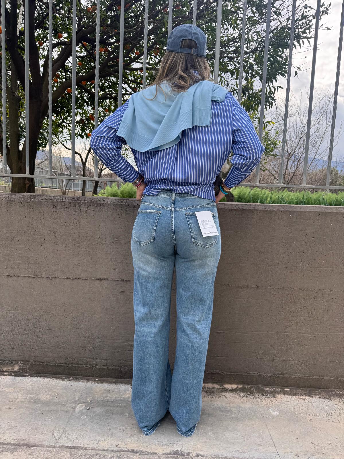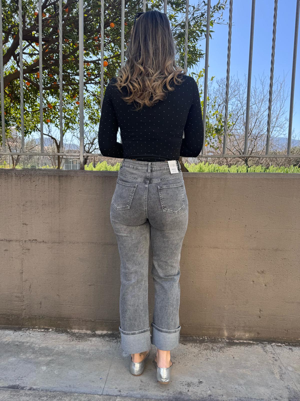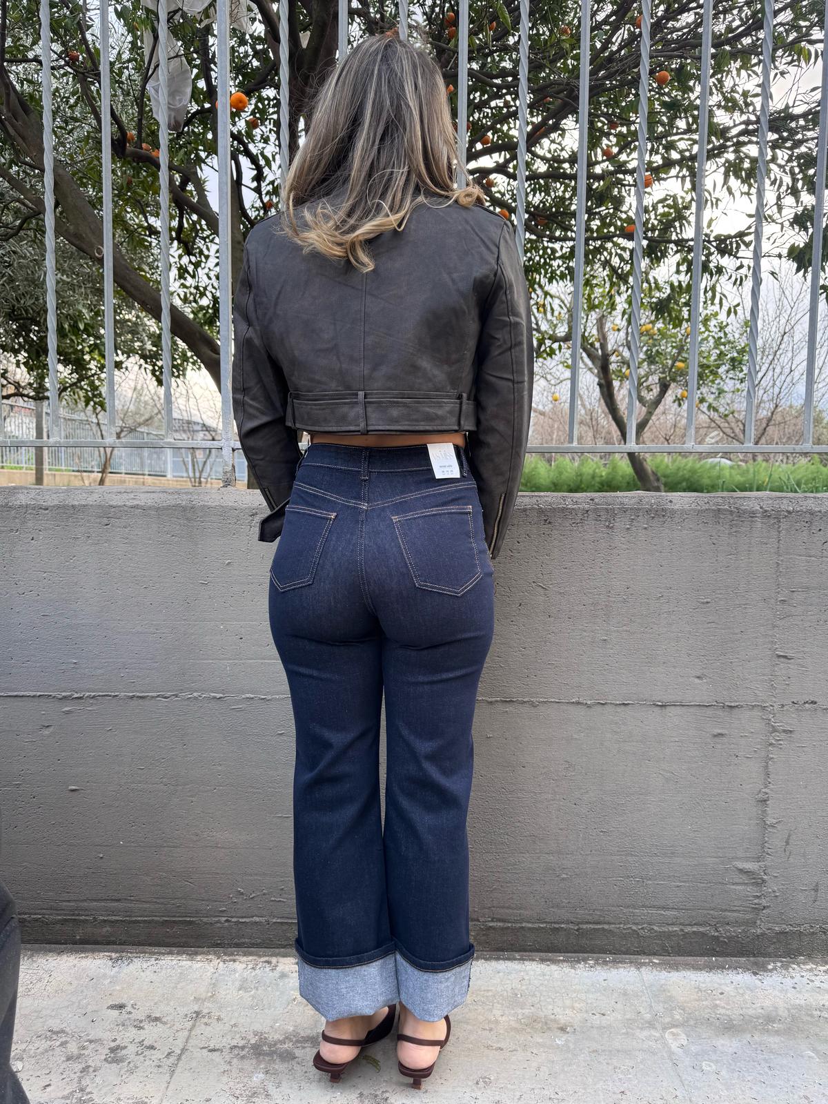Jeans palazzo con brillantini e taglio laser alle caviglie