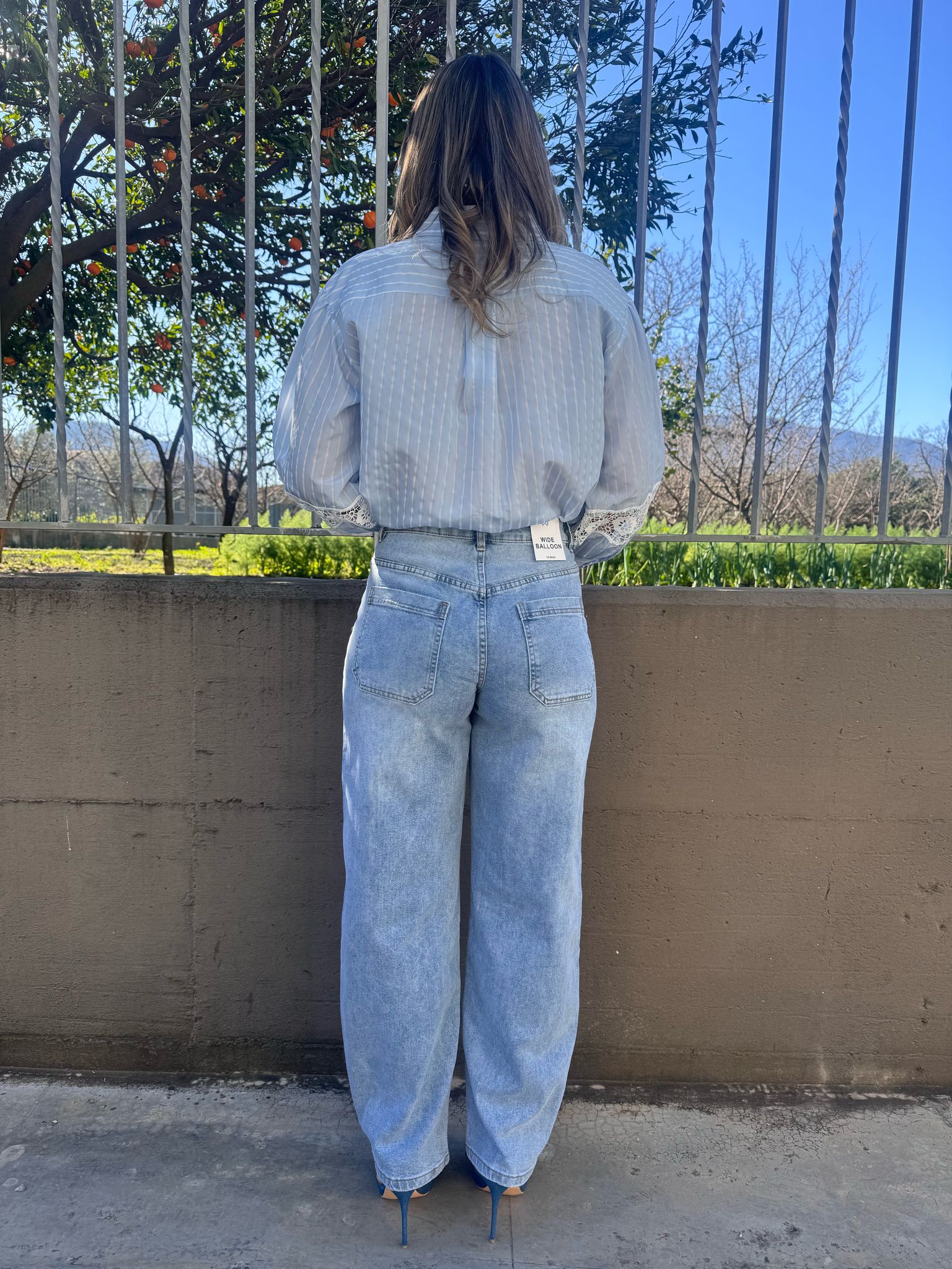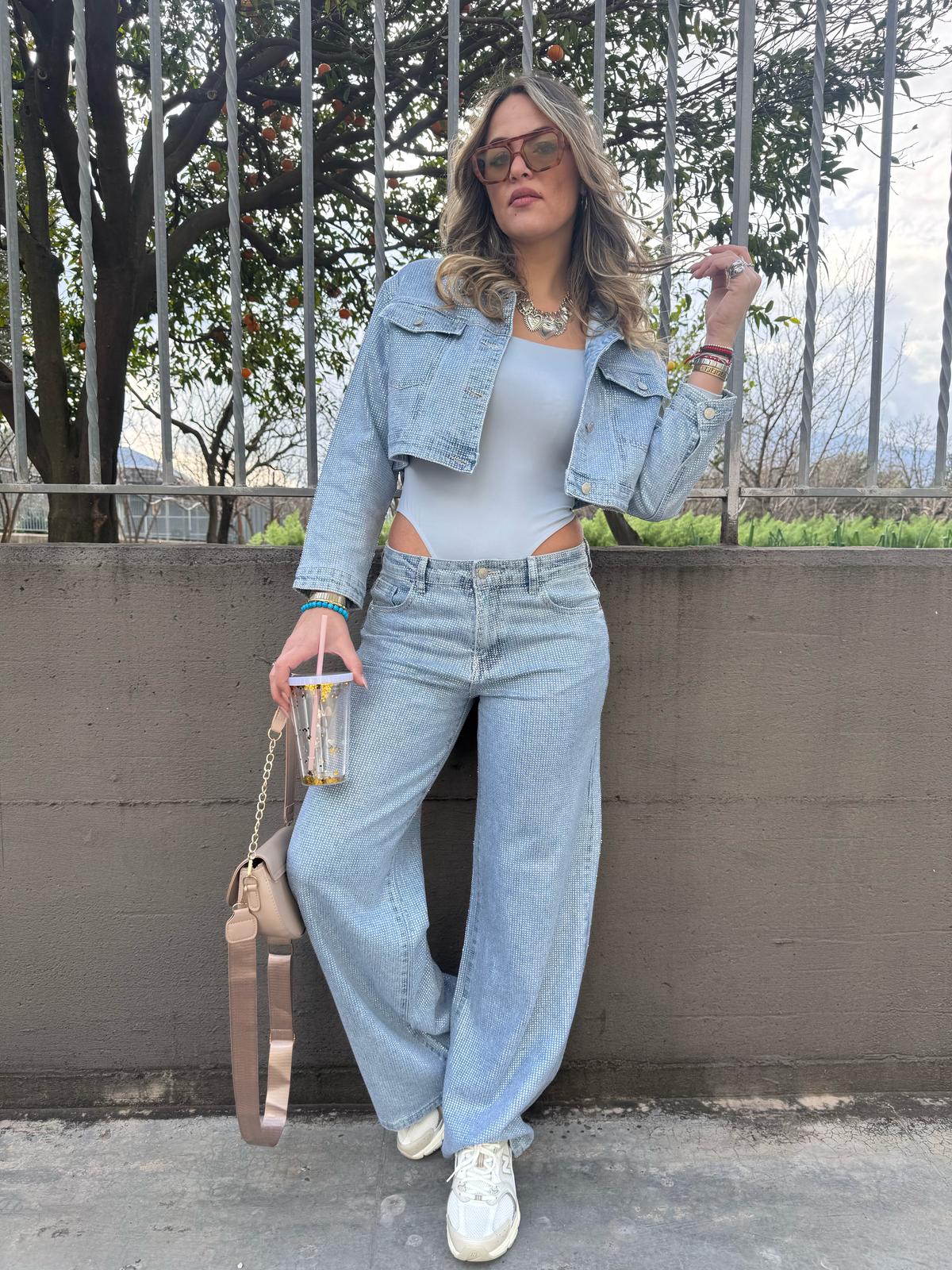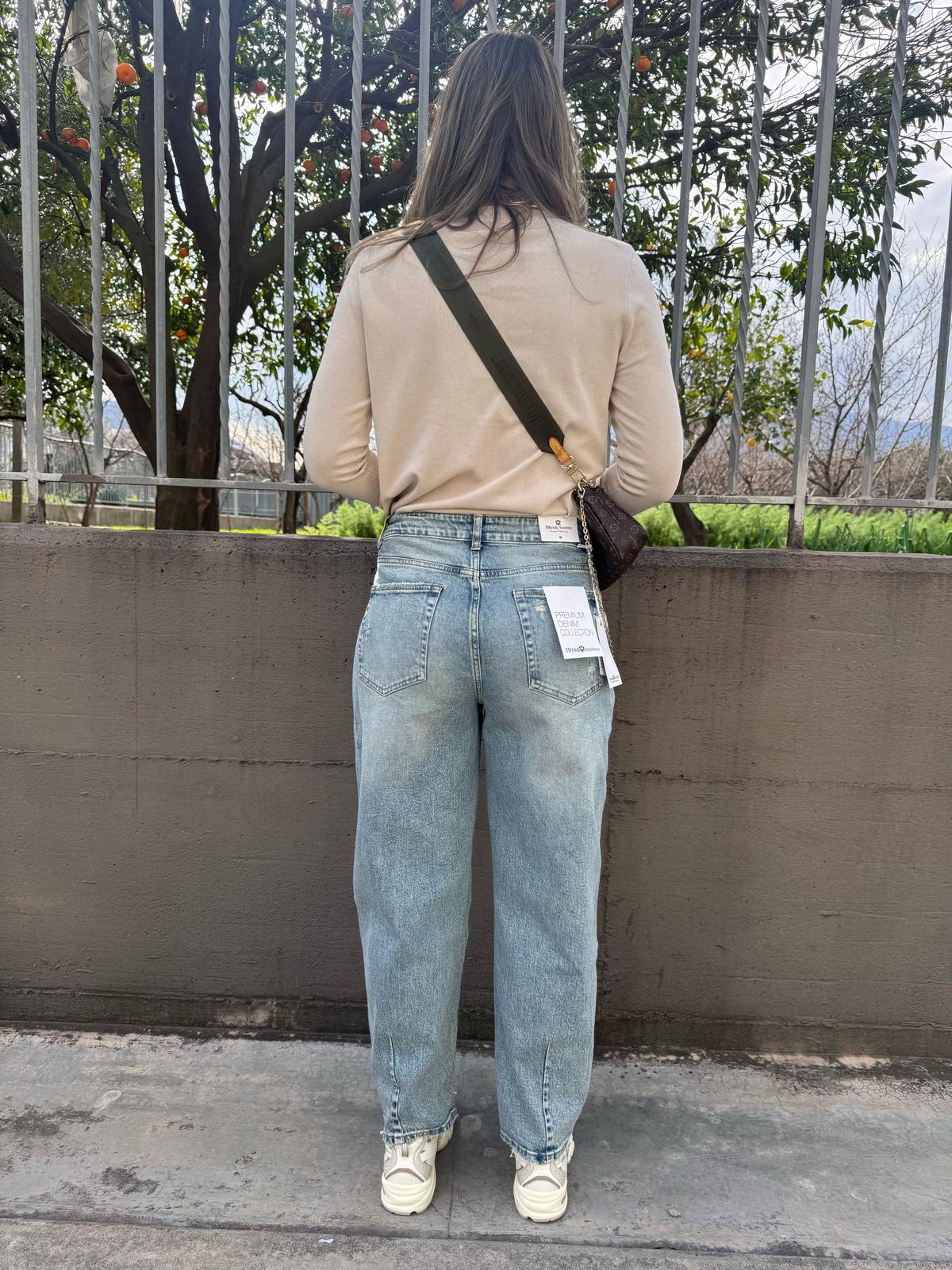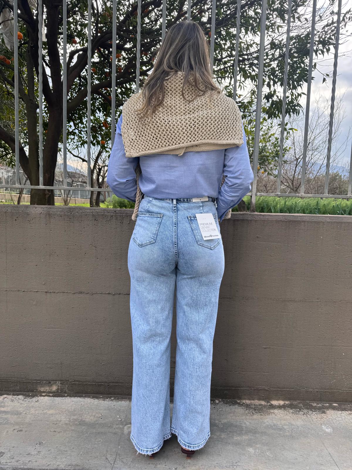 Jeans palazzo con brillantini e taglio laser alle caviglie
