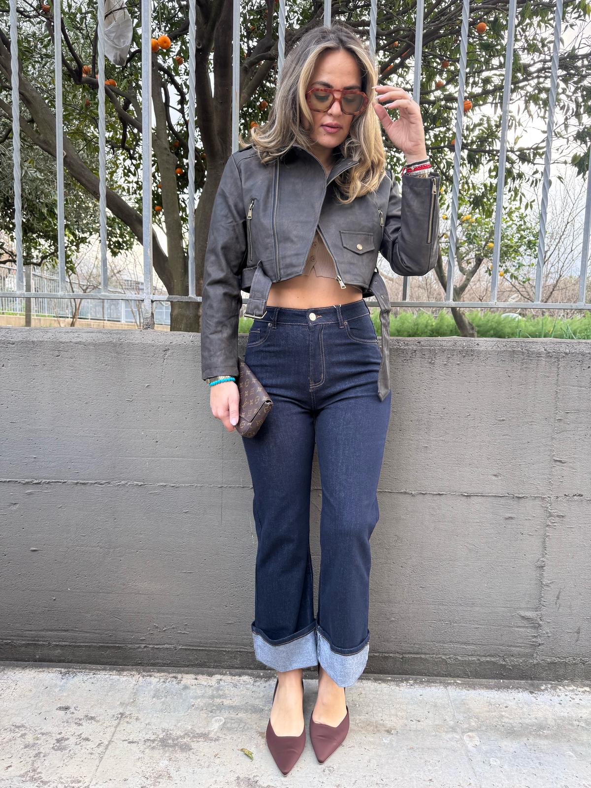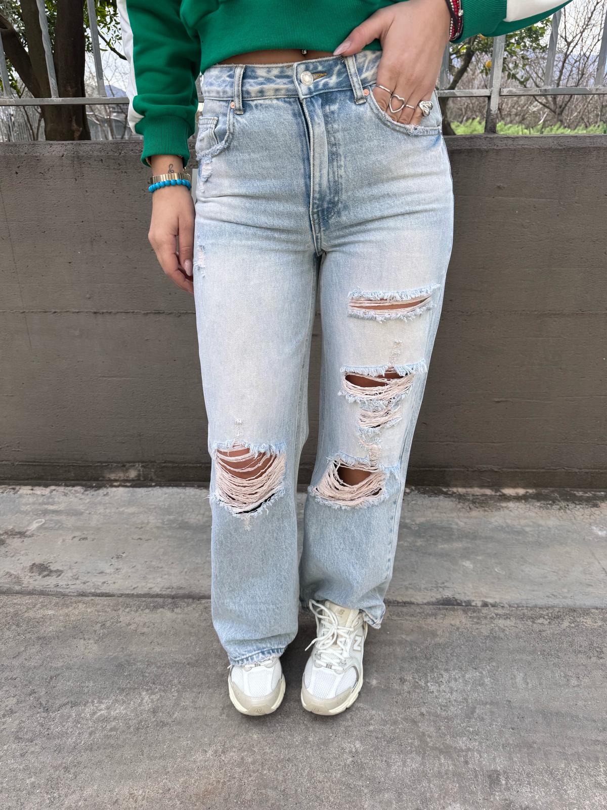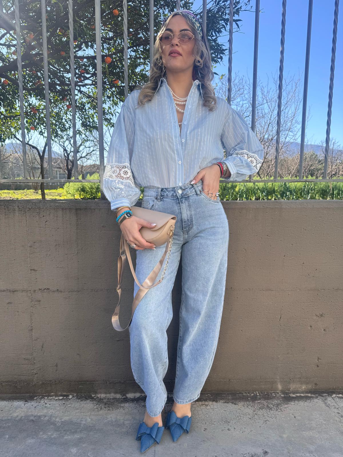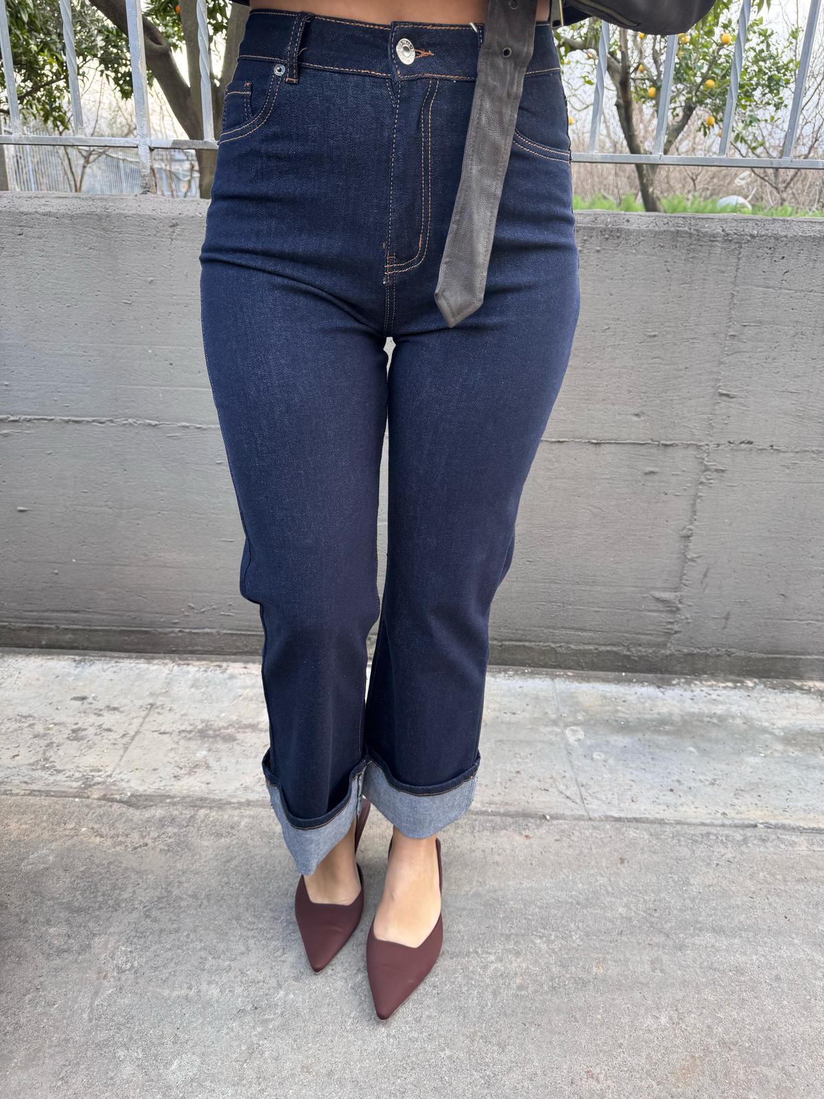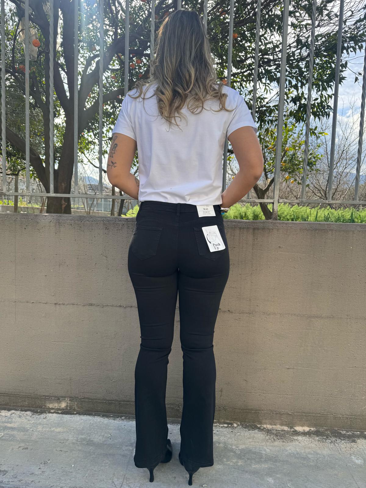 Jeans palazzo con brillantini e taglio laser alle caviglie