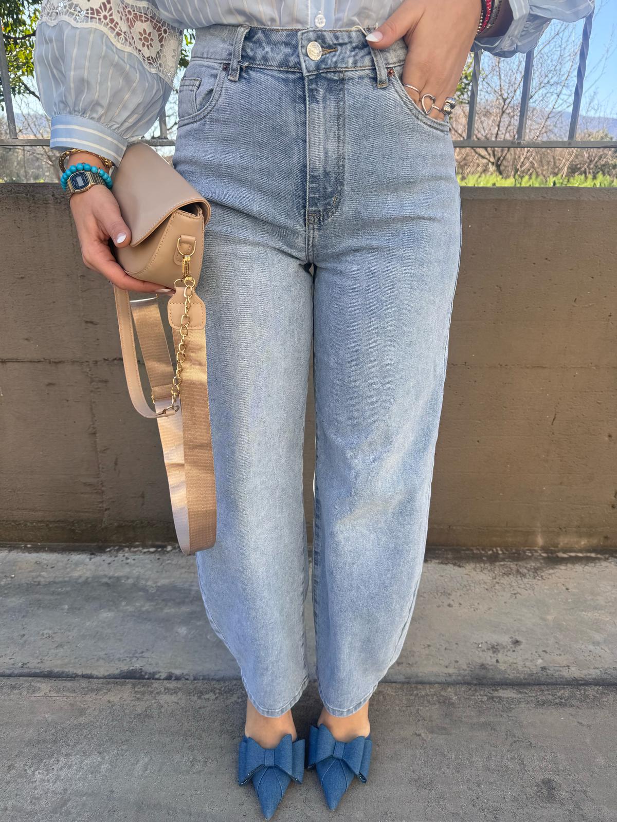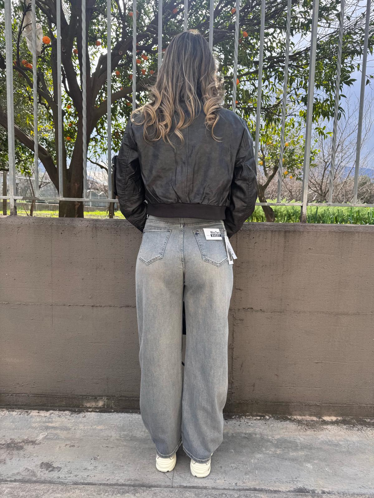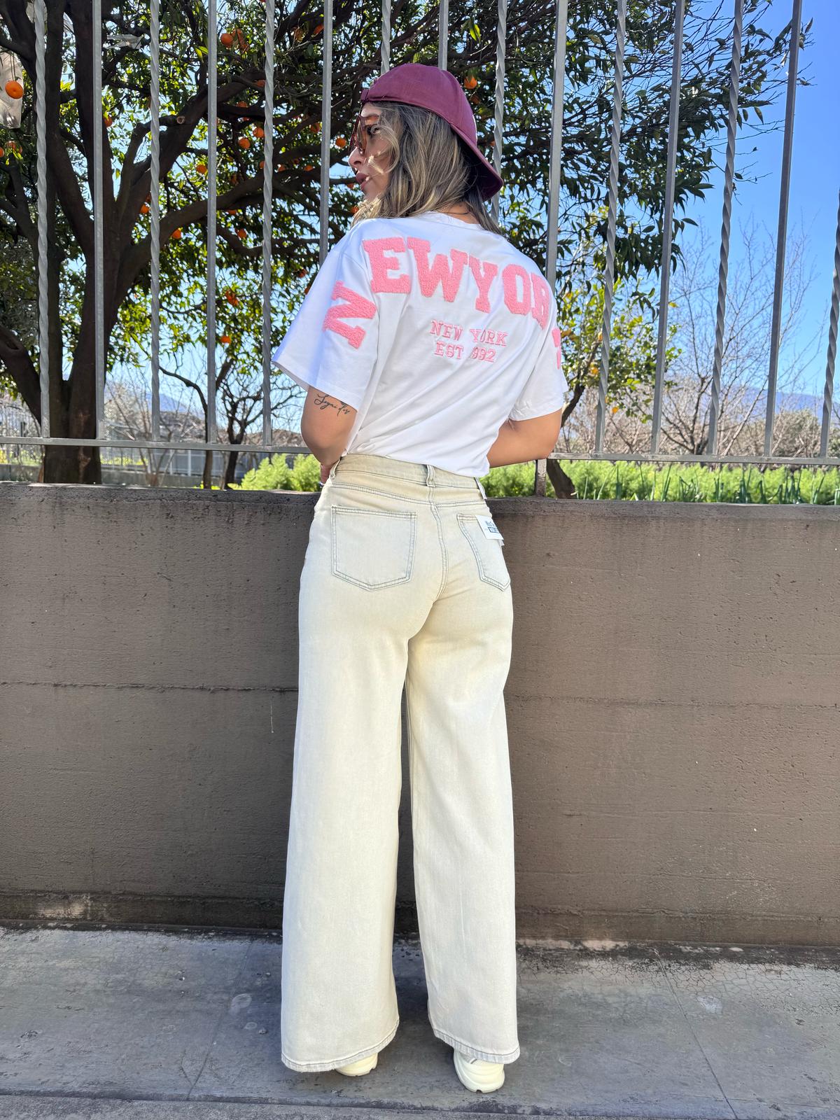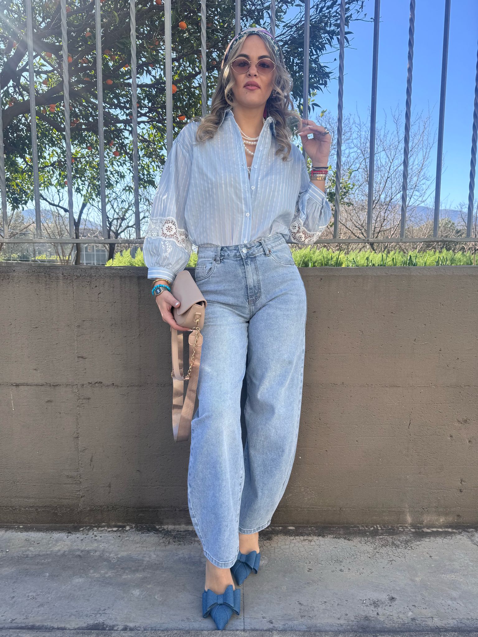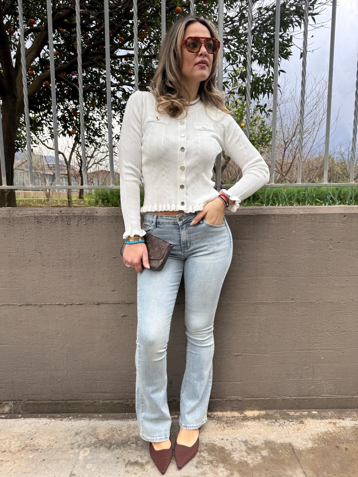 Jeans palazzo con brillantini e taglio laser alle caviglie