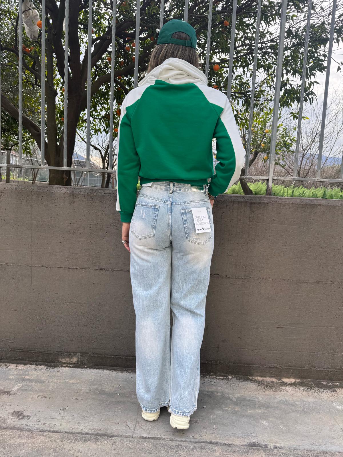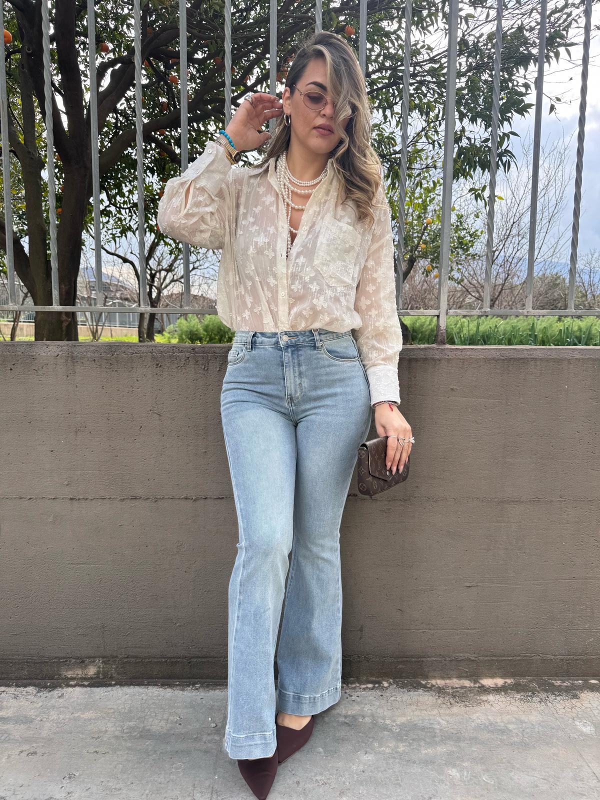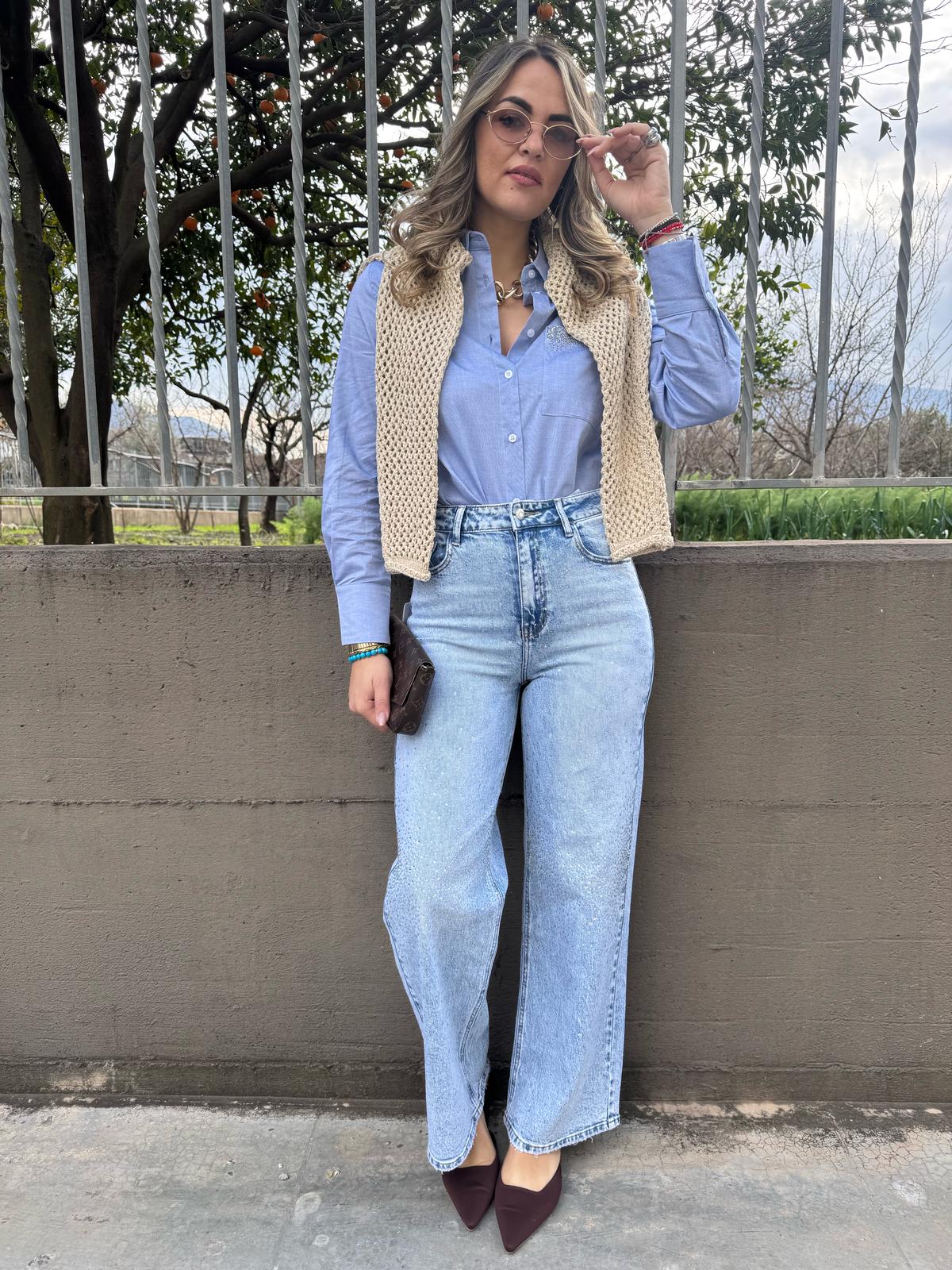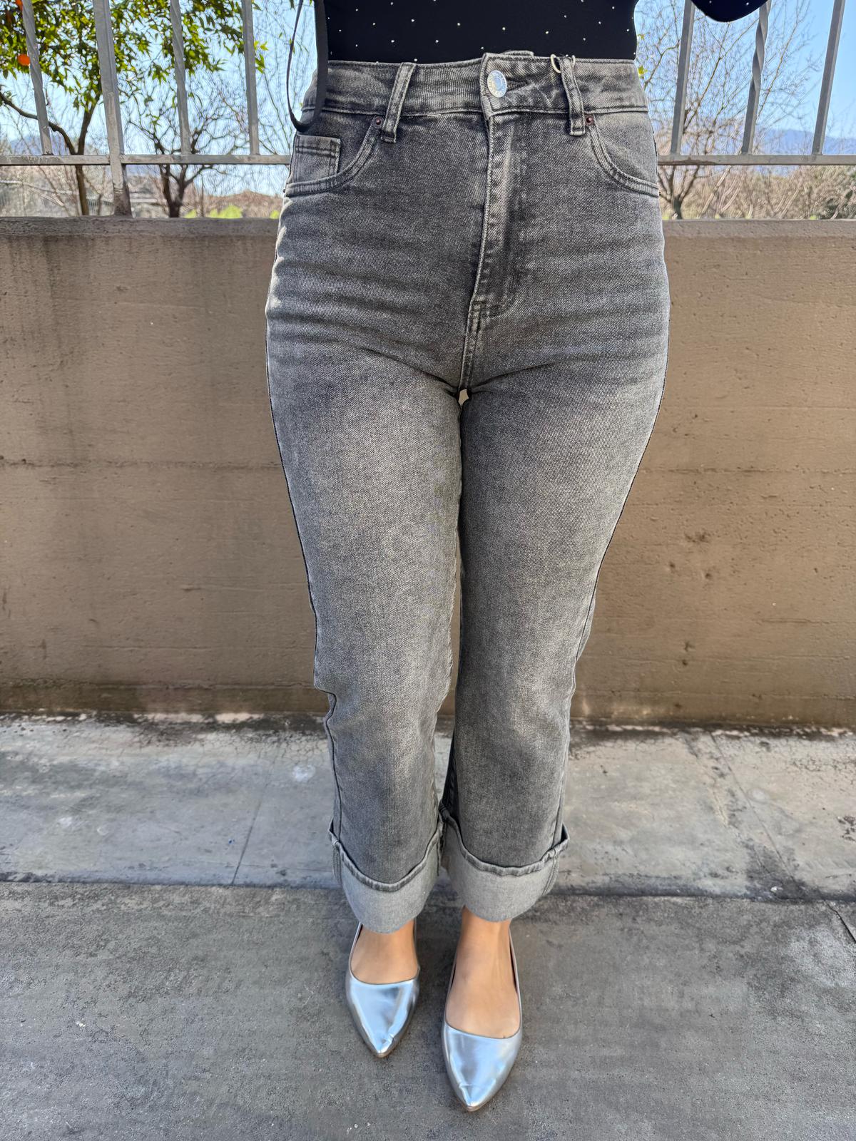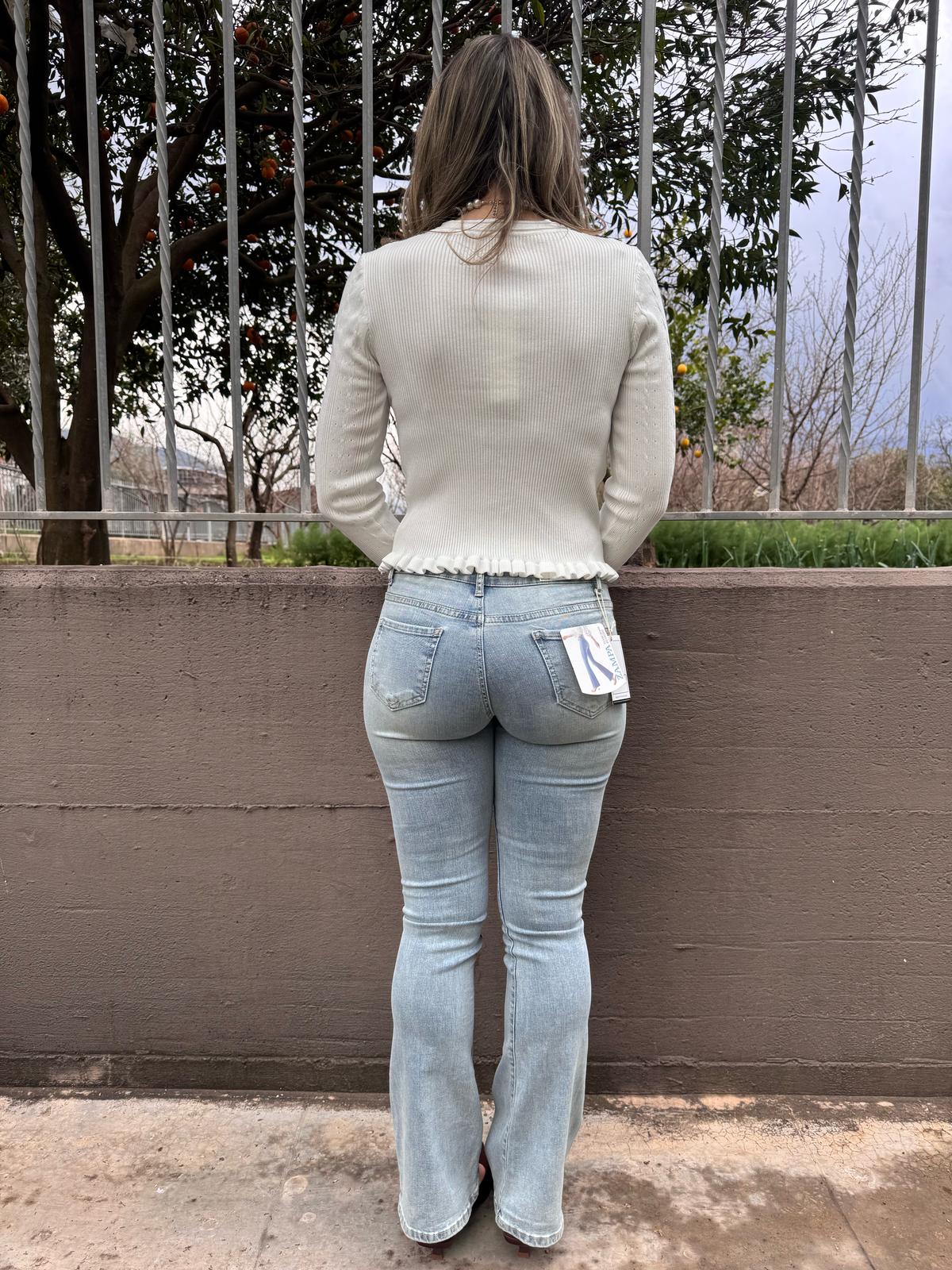 Jeans palazzo con brillantini e taglio laser alle caviglie