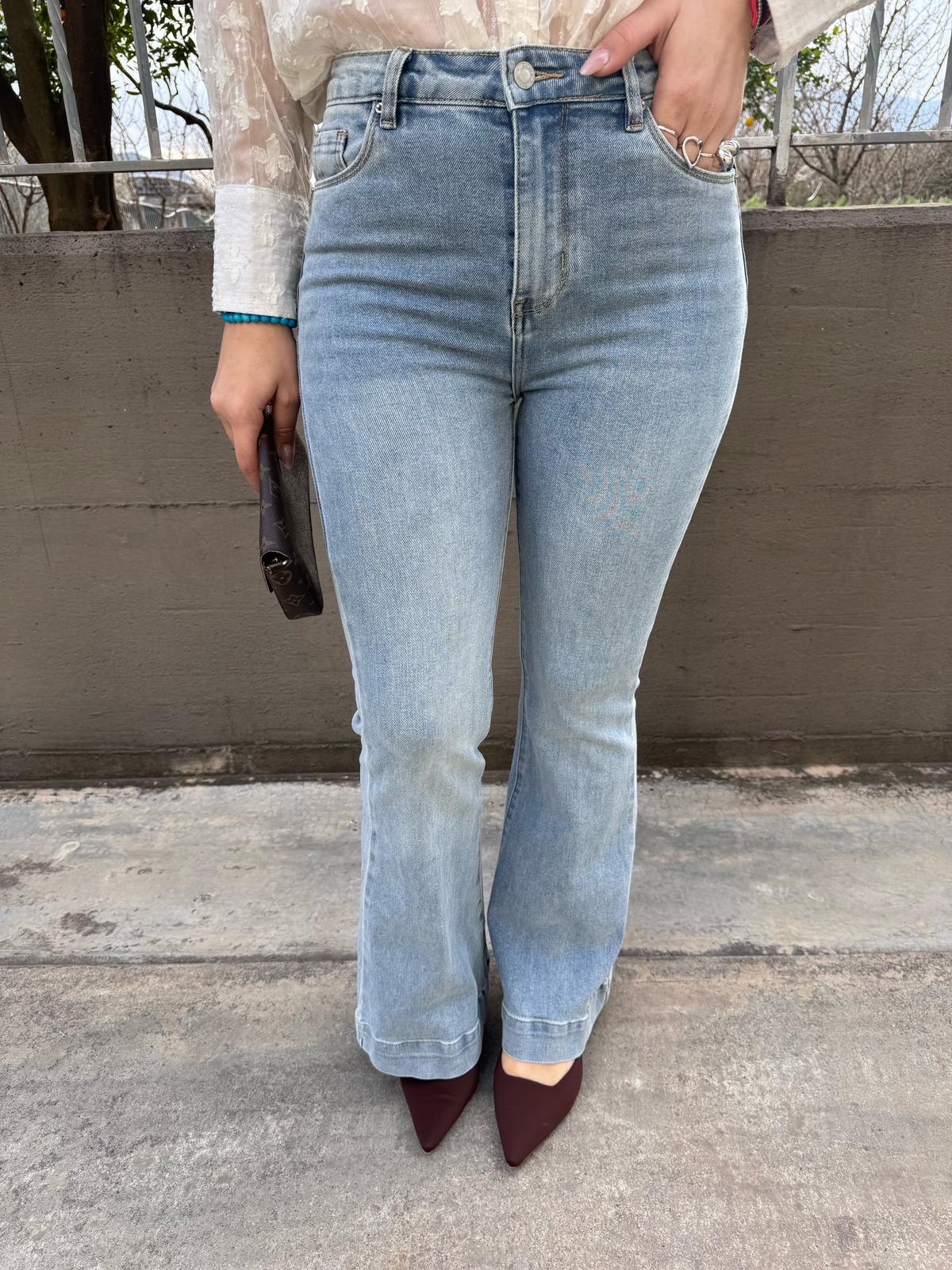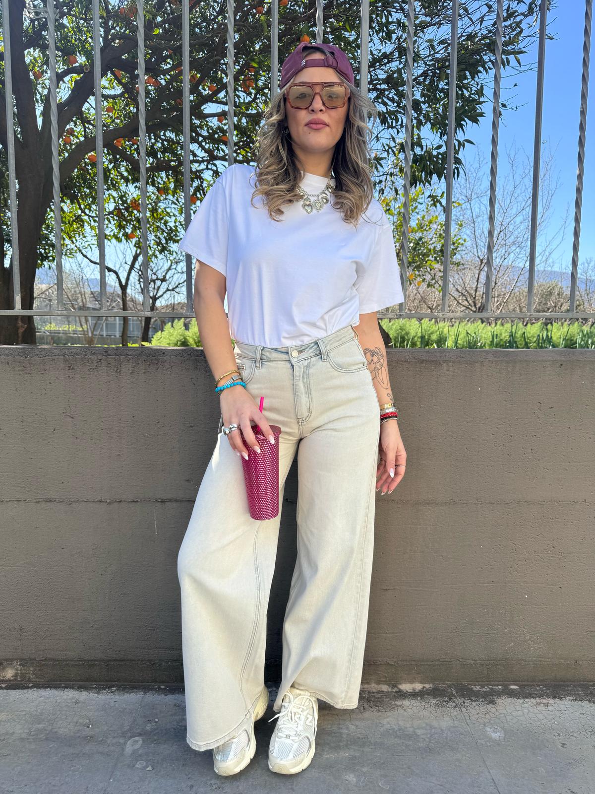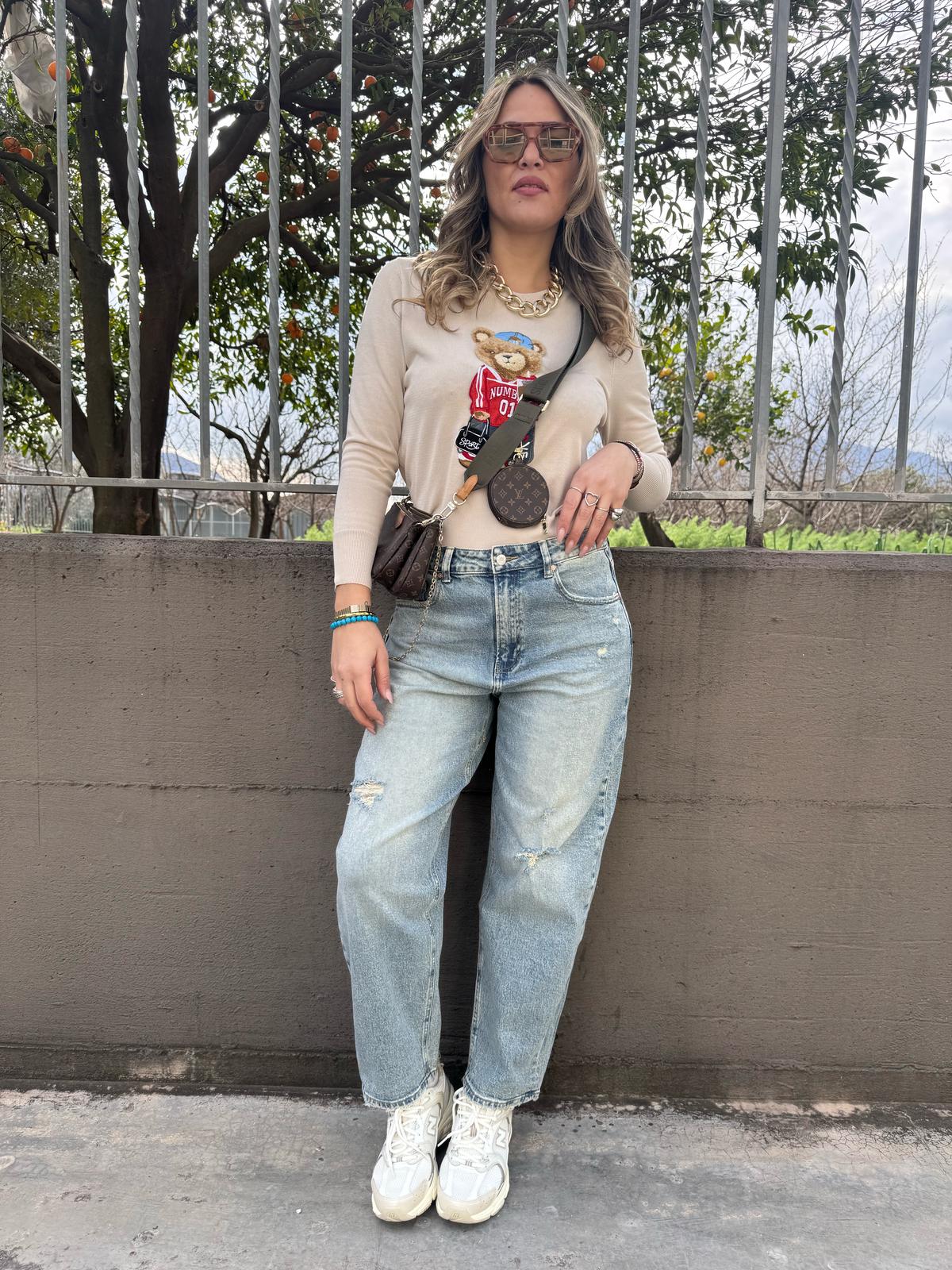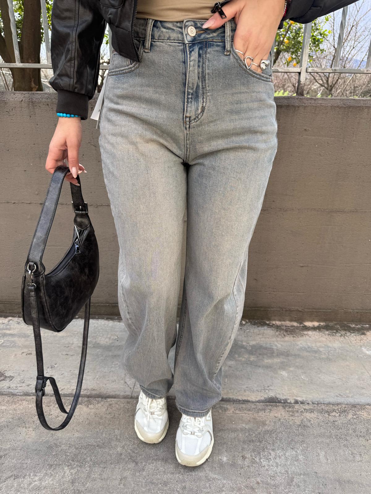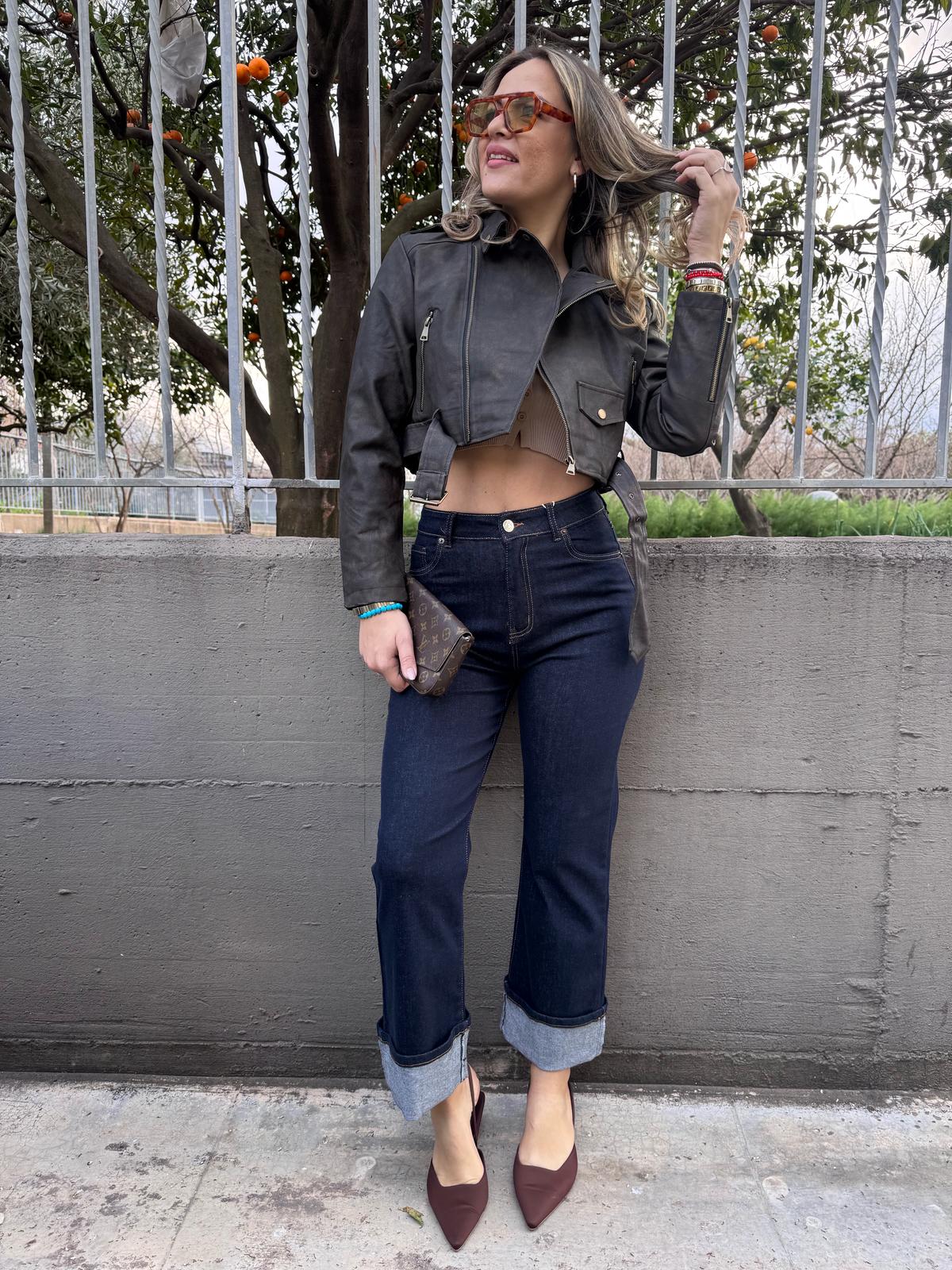 Jeans palazzo con brillantini e taglio laser alle caviglie
