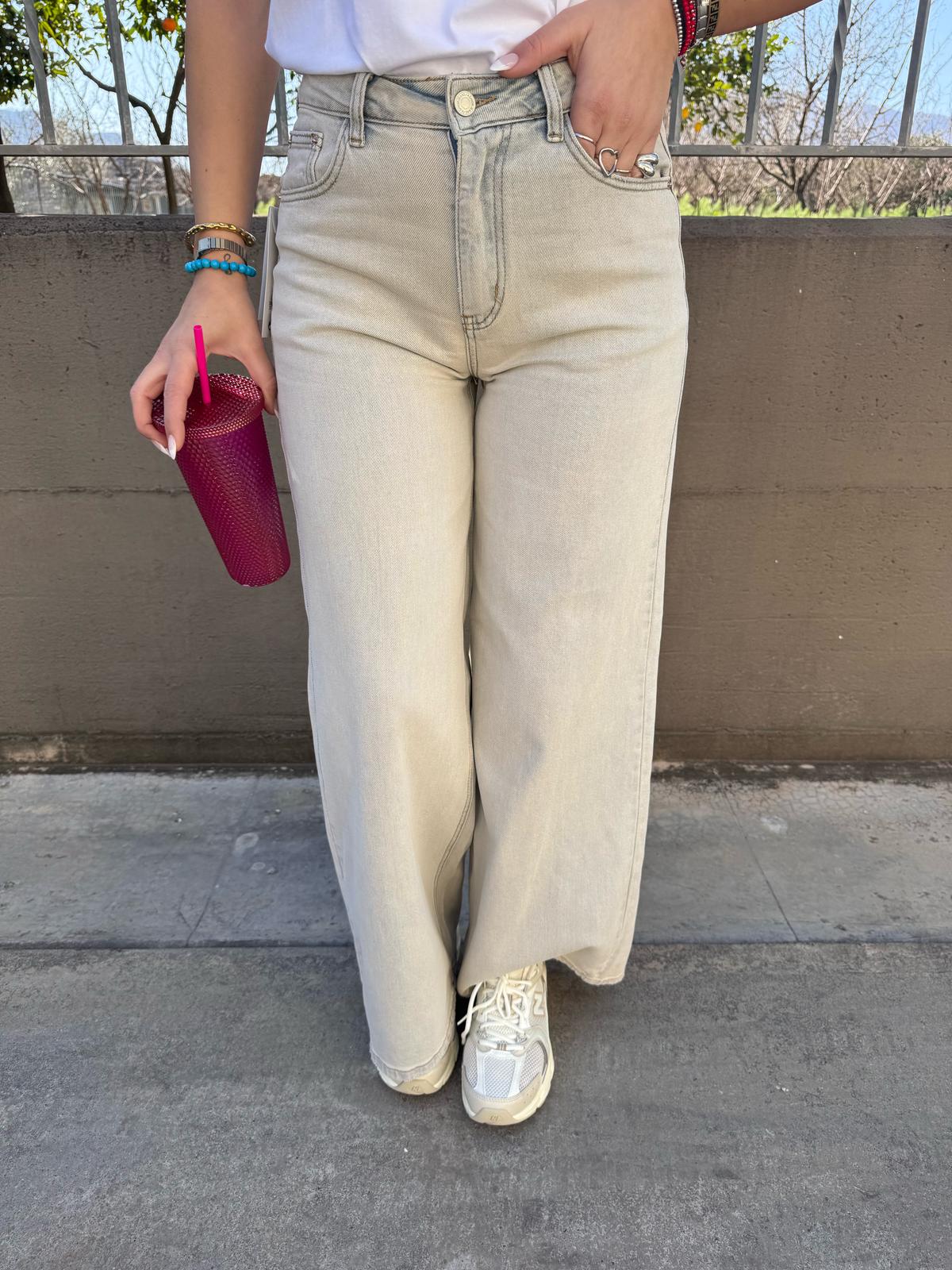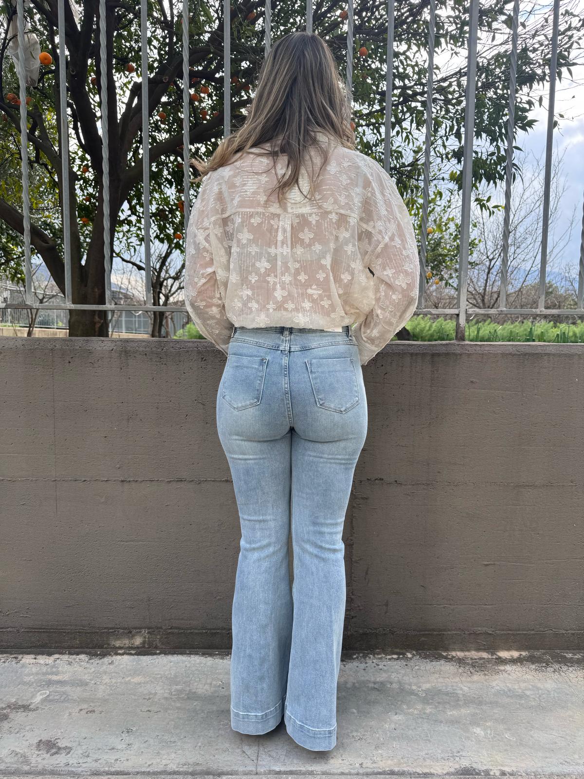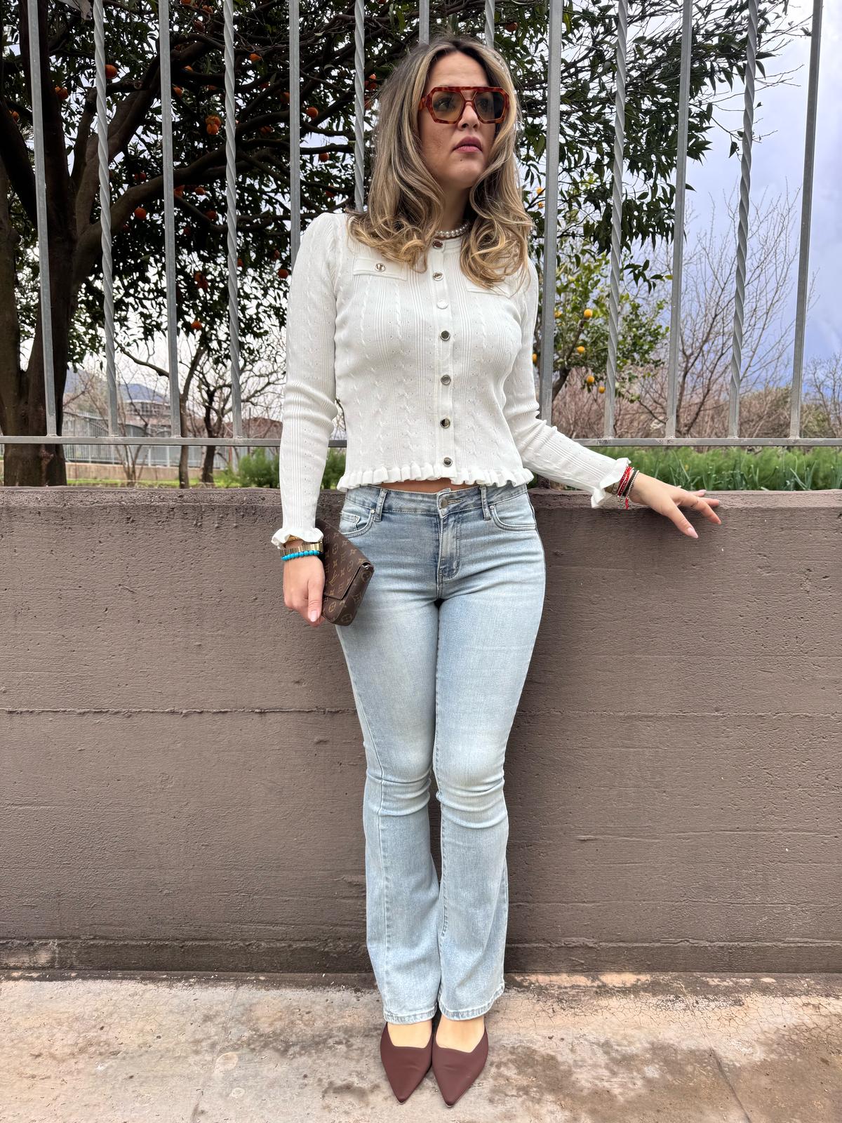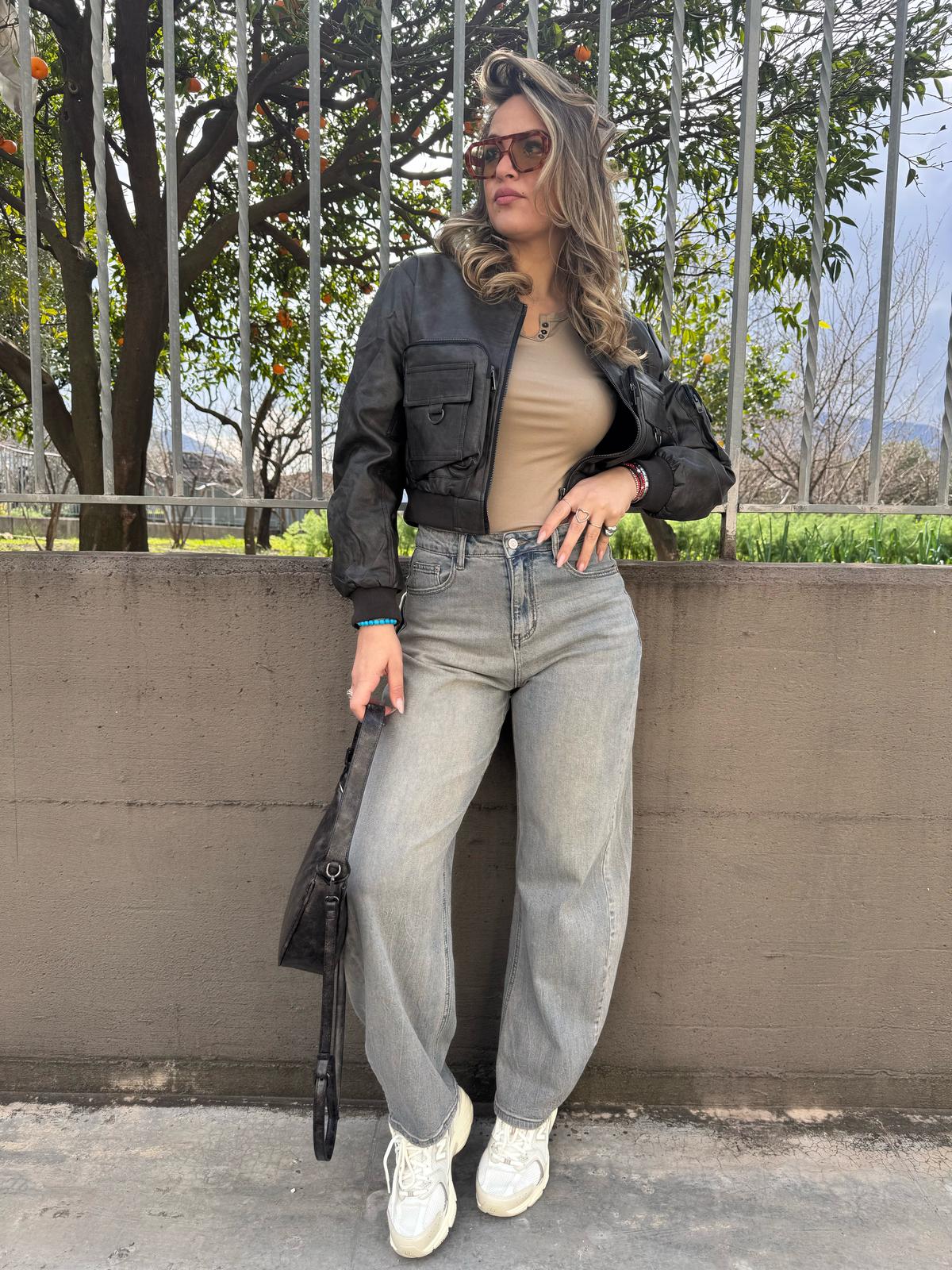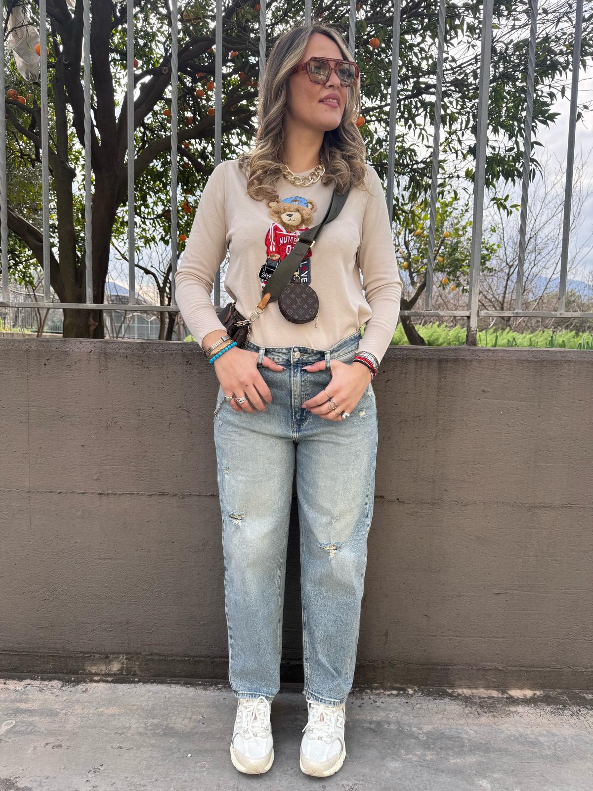 Jeans palazzo con brillantini e taglio laser alle caviglie