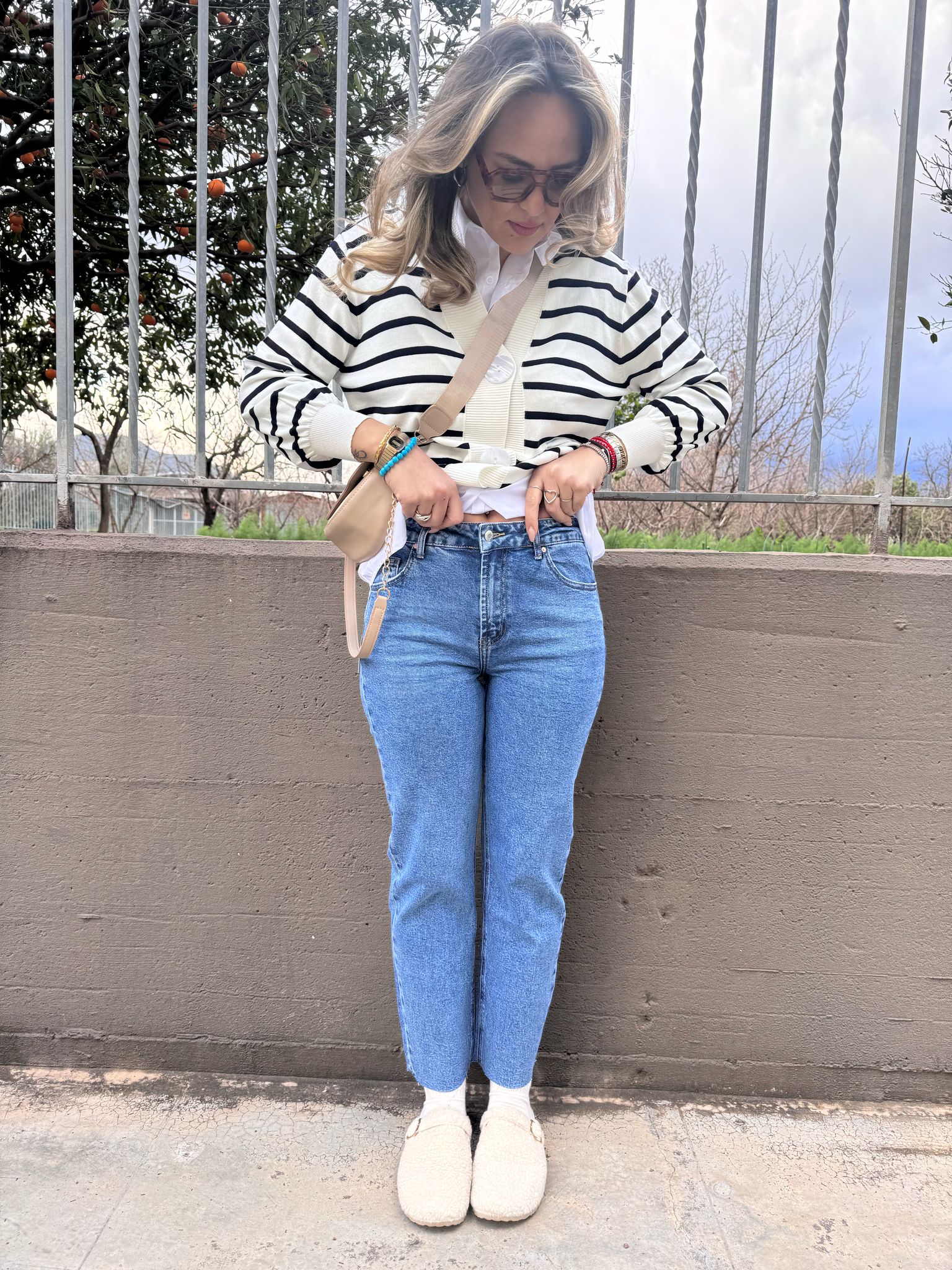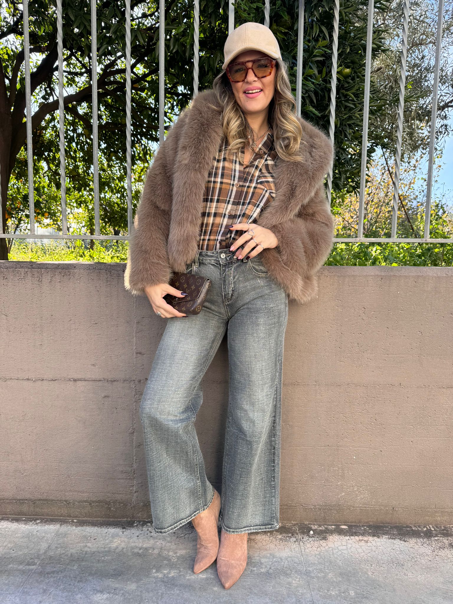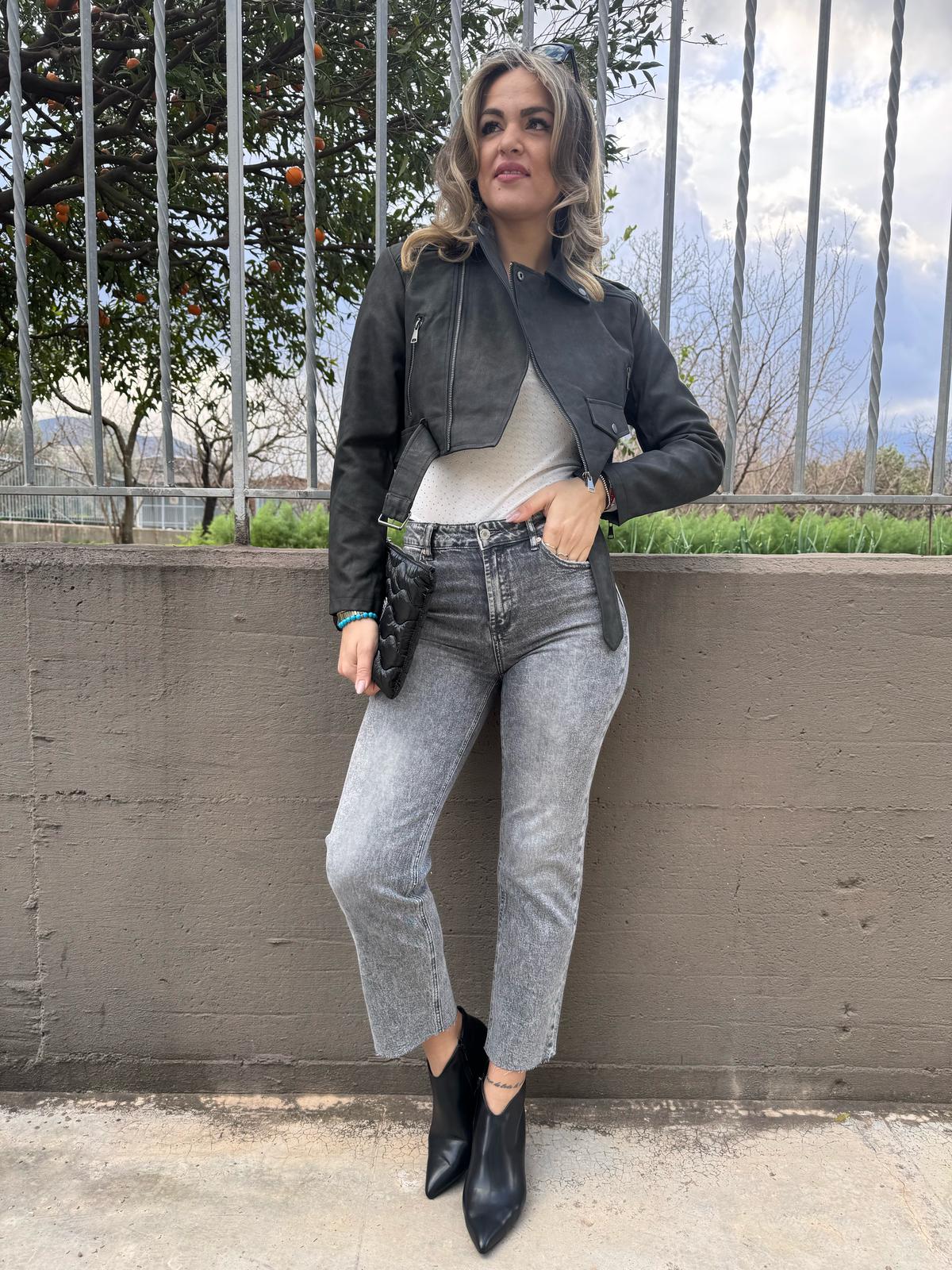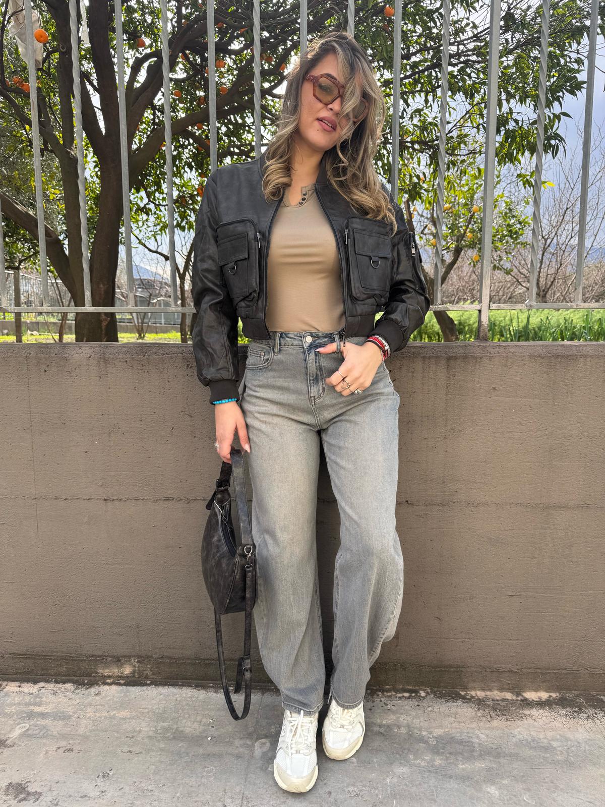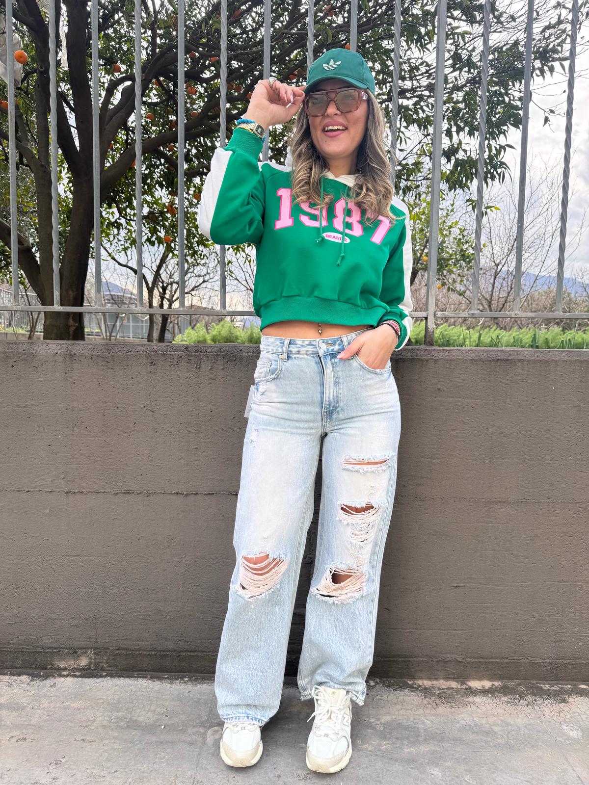 Jeans palazzo con brillantini e taglio laser alle caviglie
