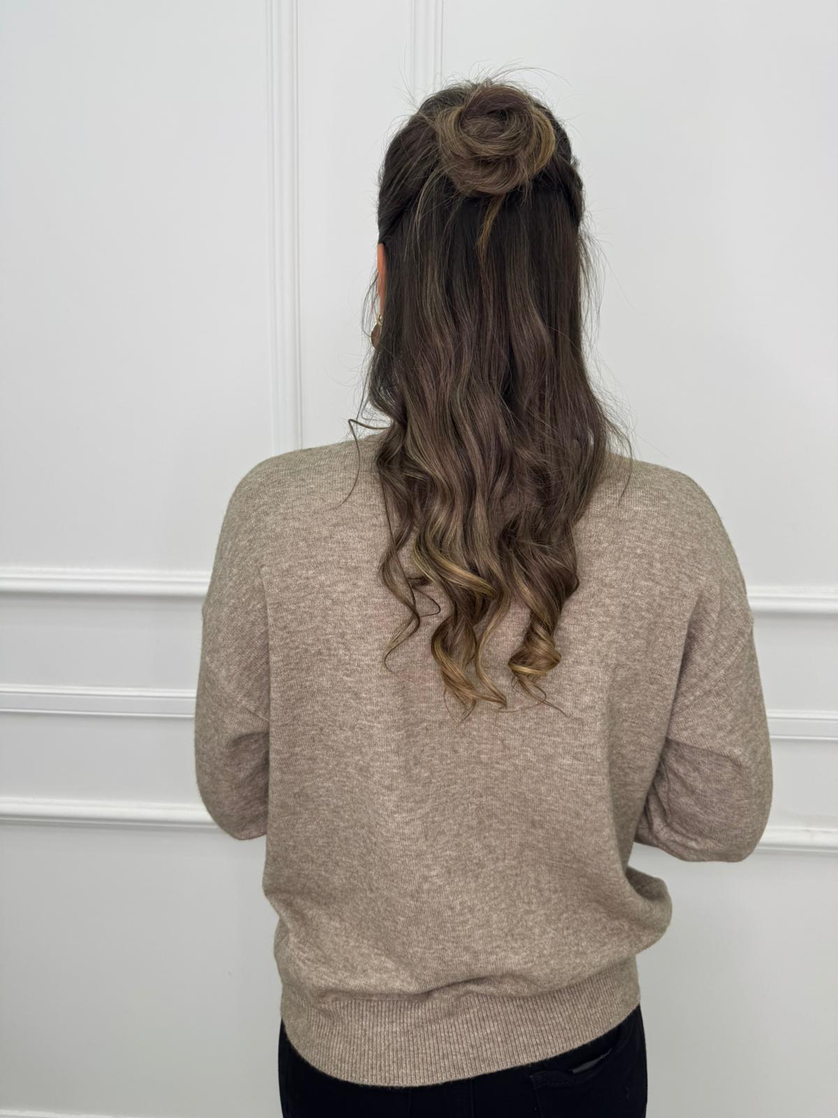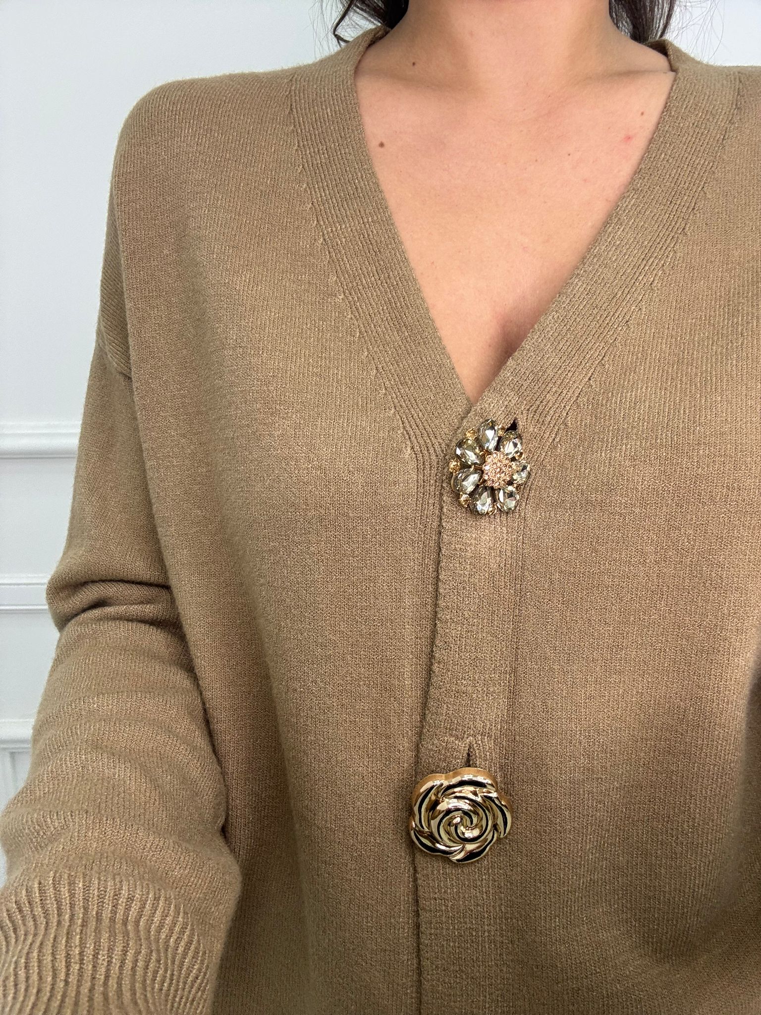 Cardigan over tinta unita con bottoni particolari