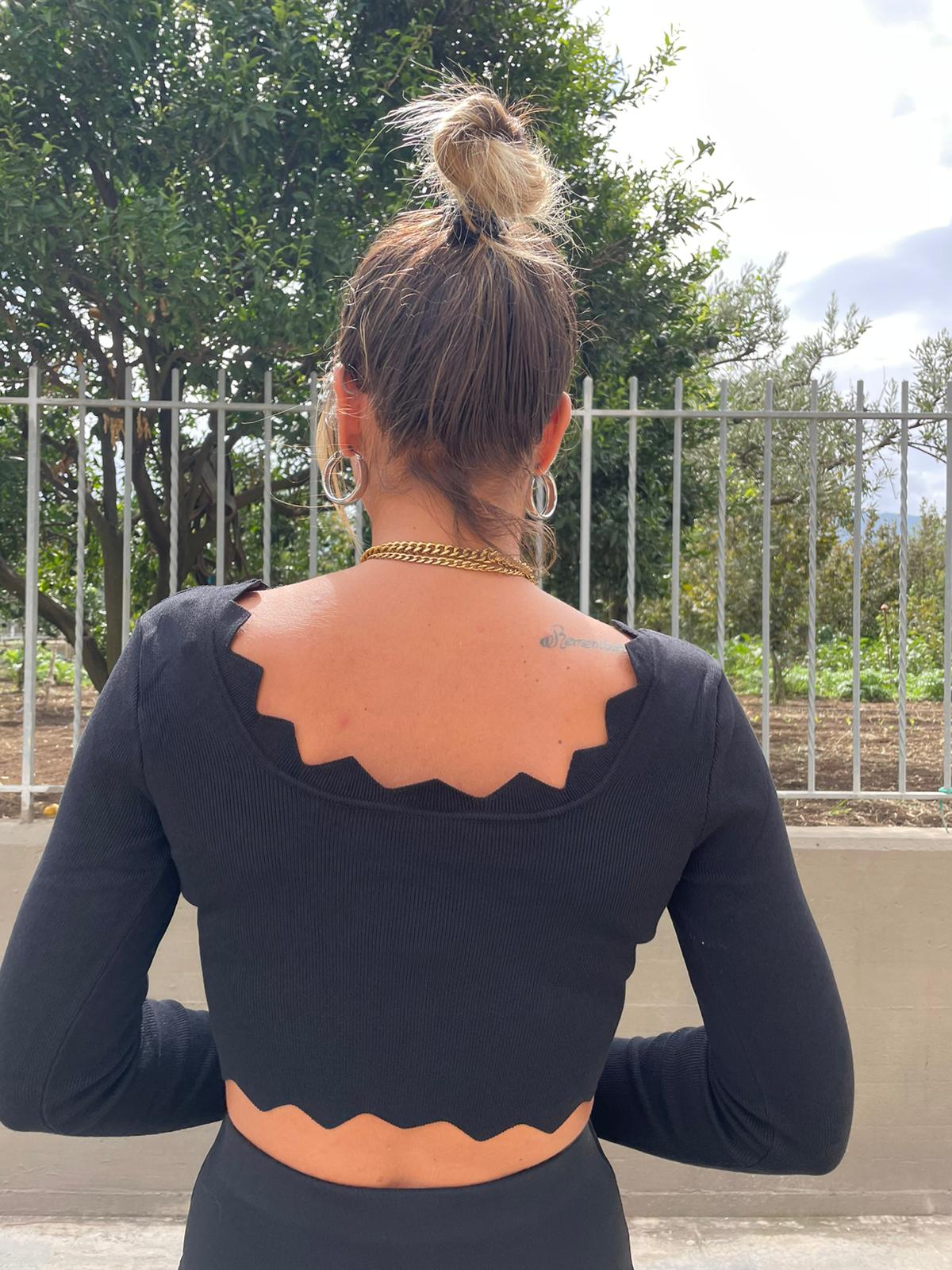 Maglia in lycra con applicazione al centro