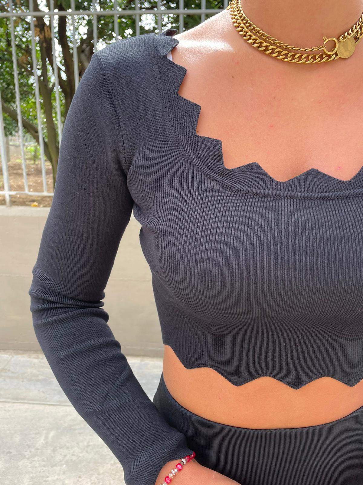 Maglia crop in filo con scollo asimmetrico