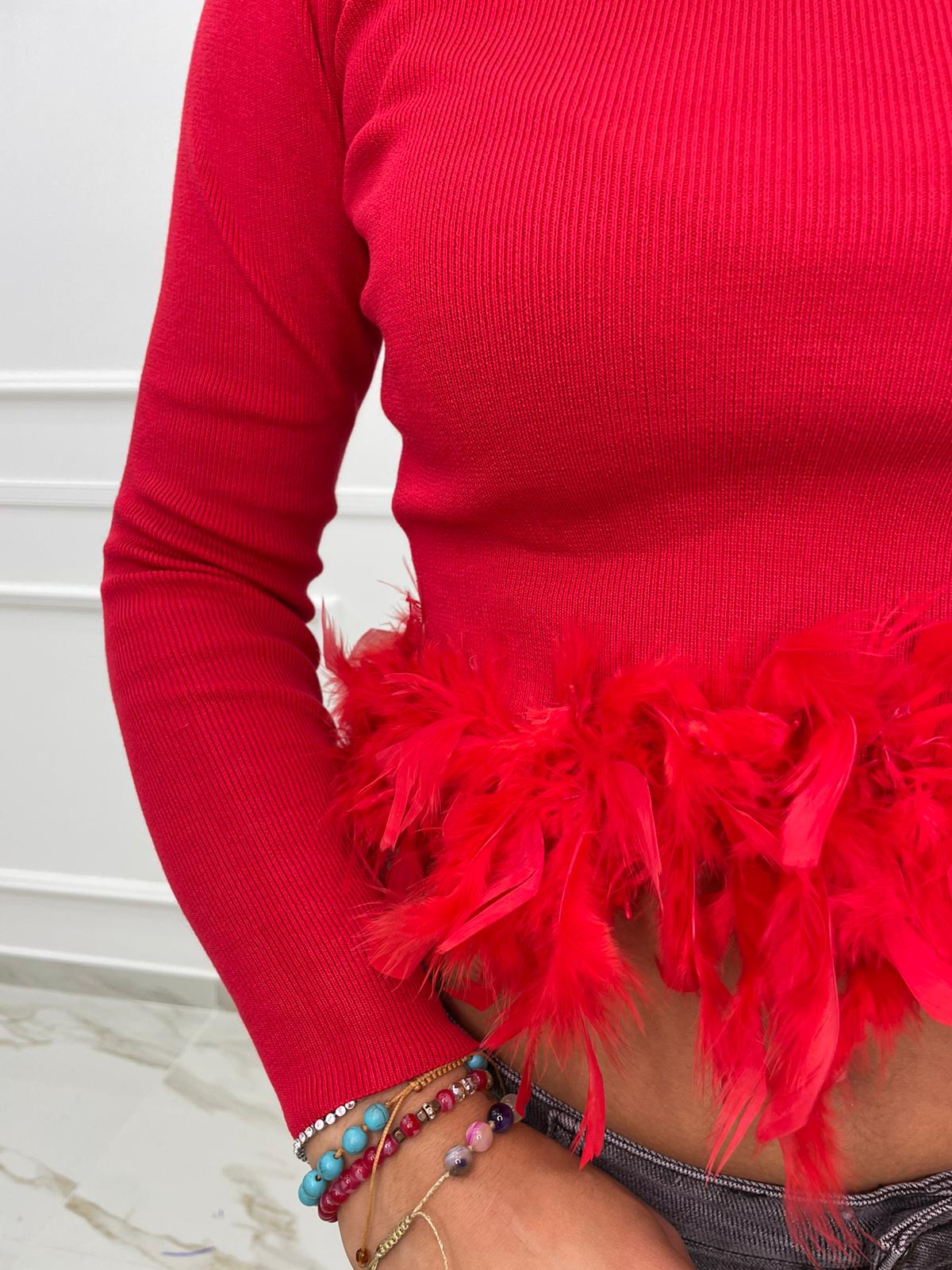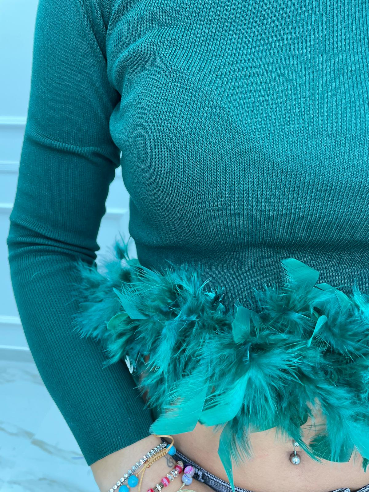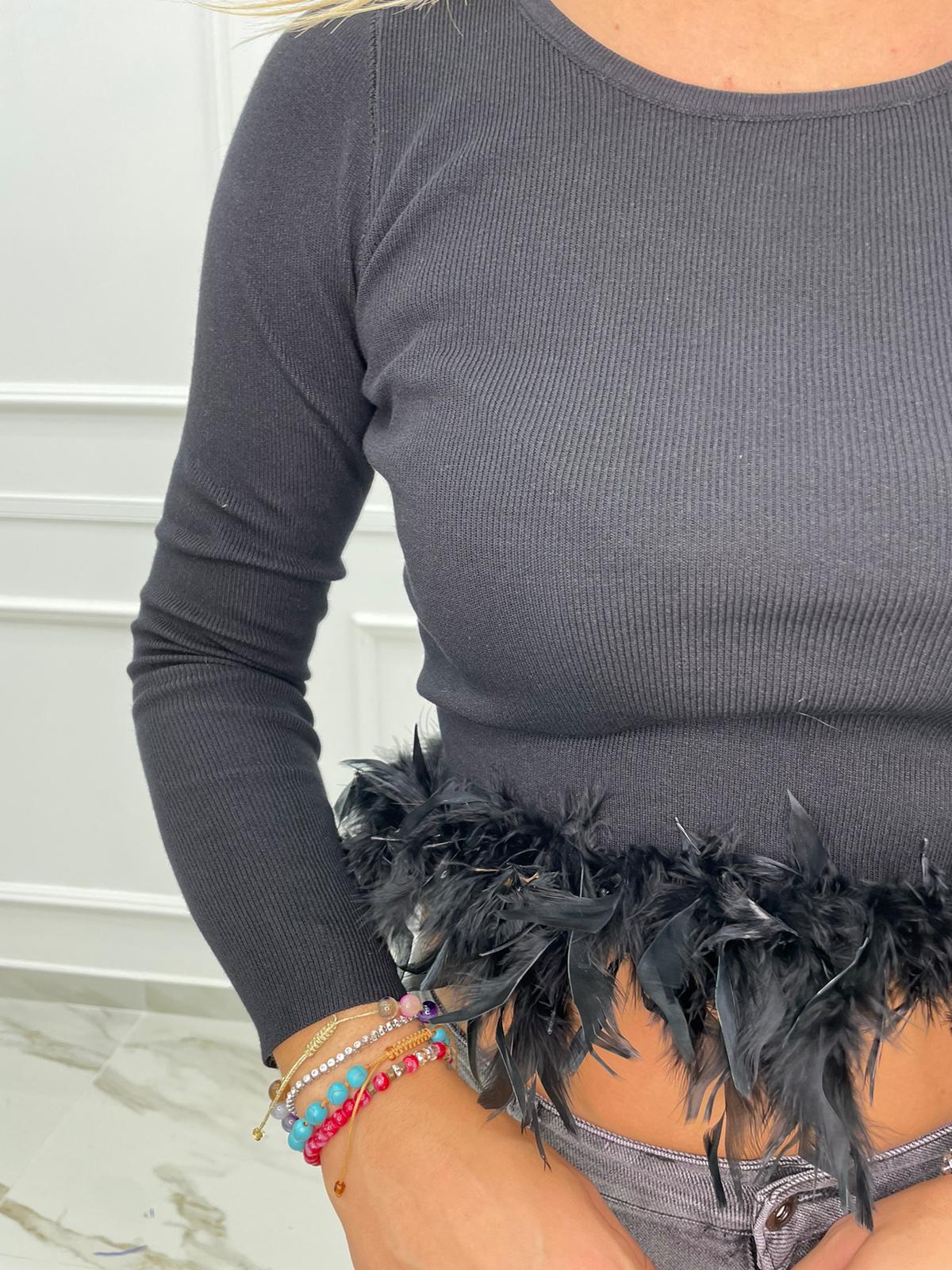 Maglia in filo con piume