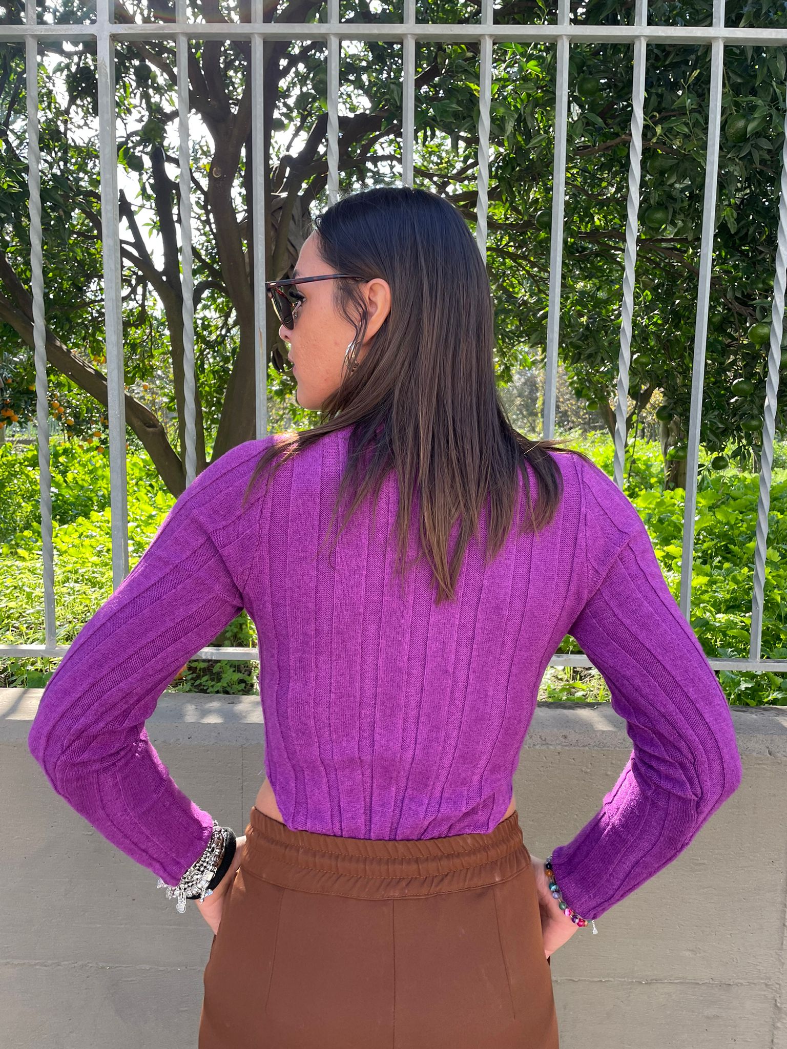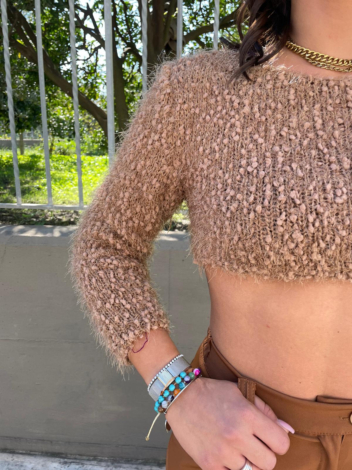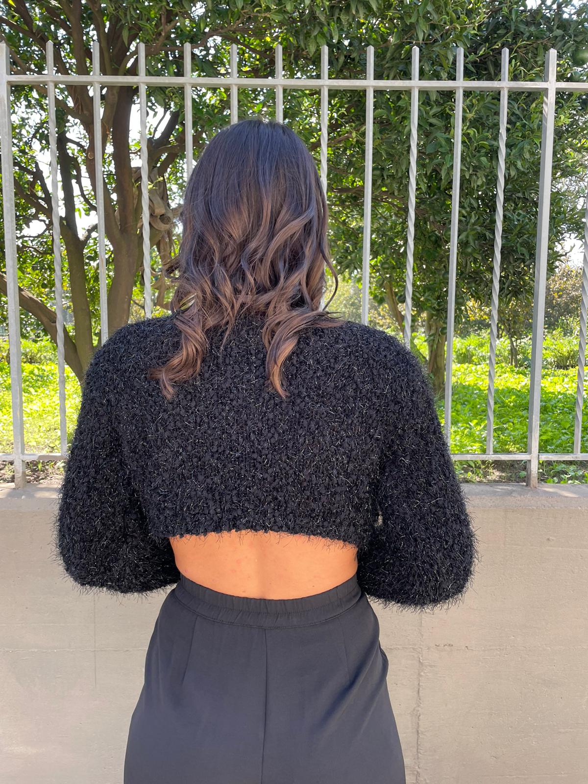 Maglioncino crop con fili laminati