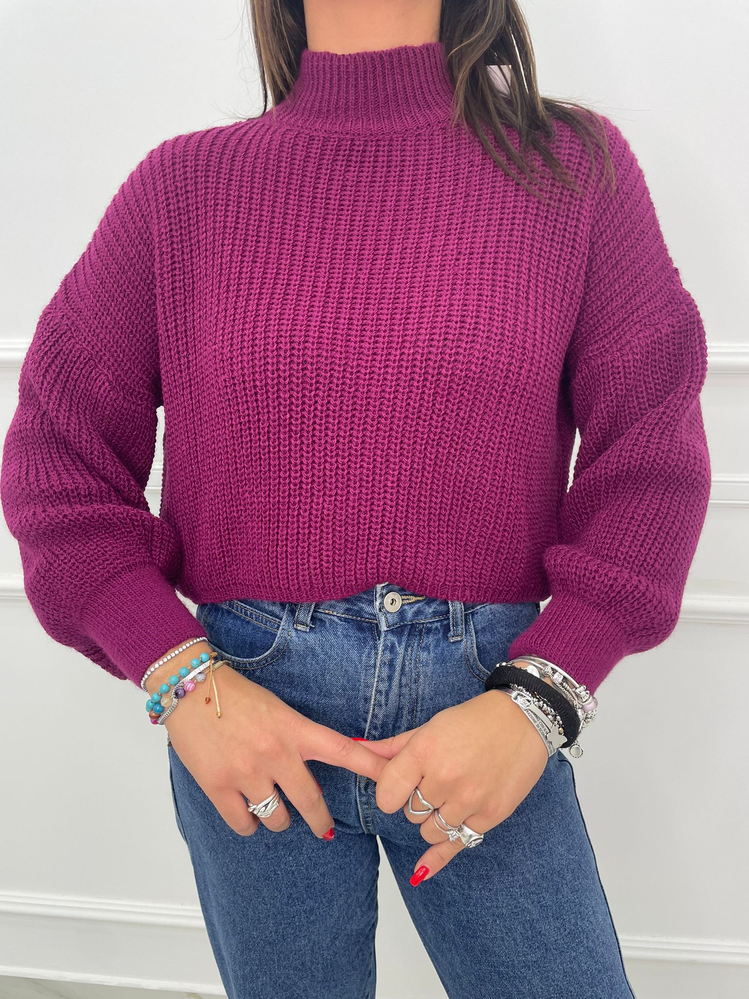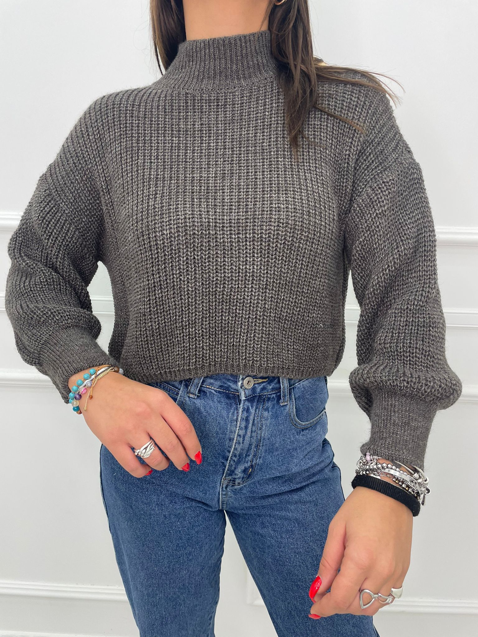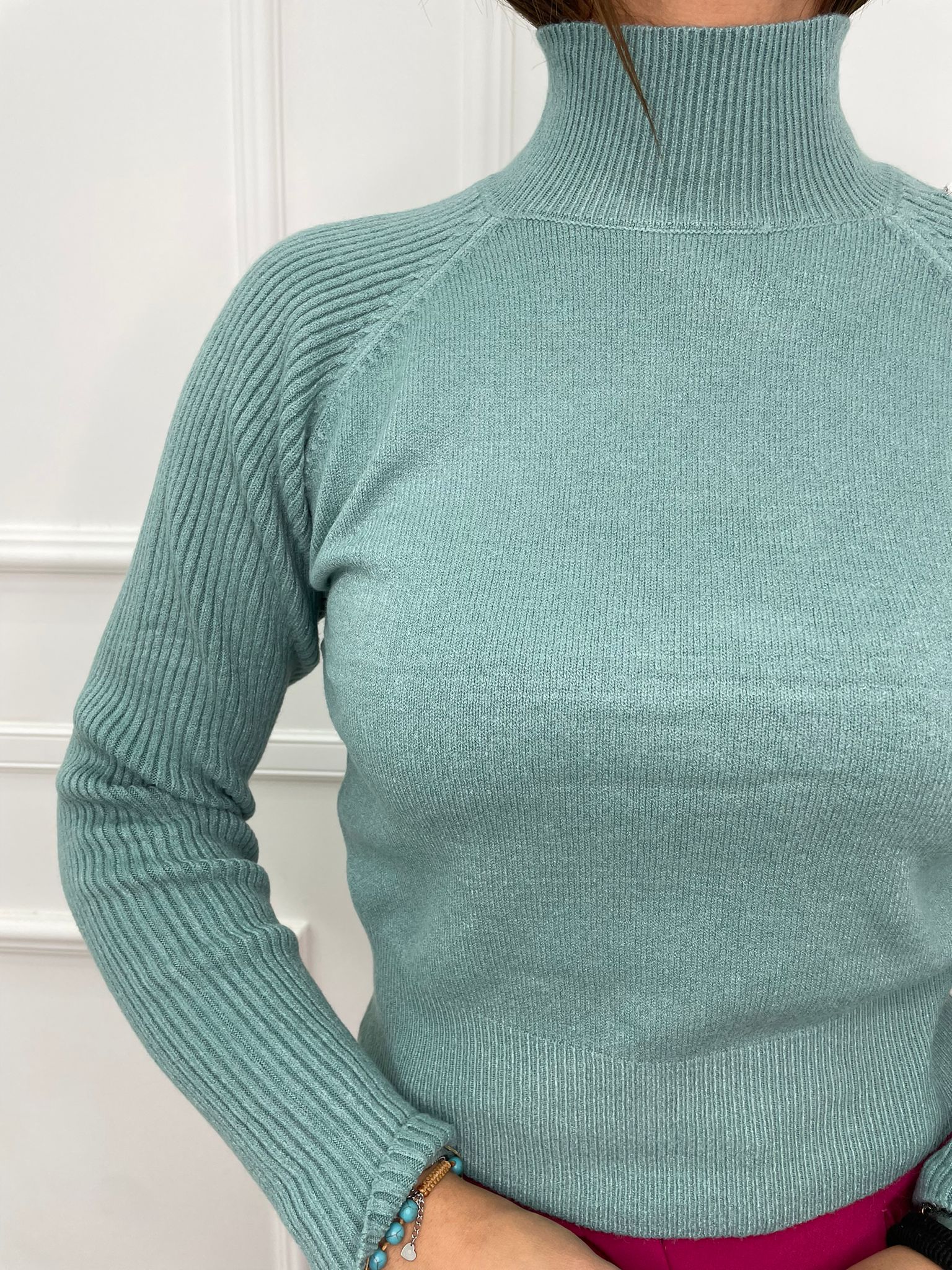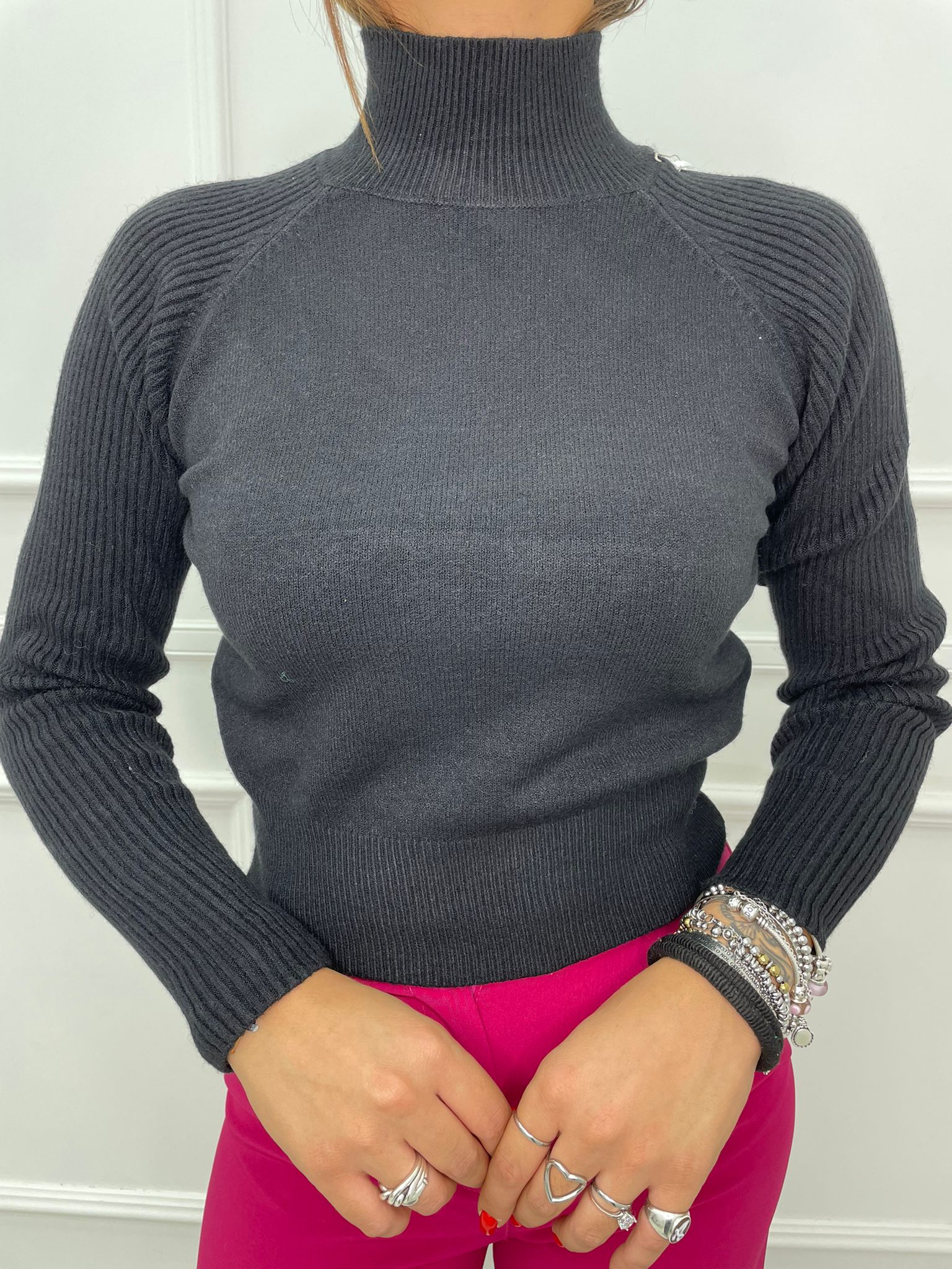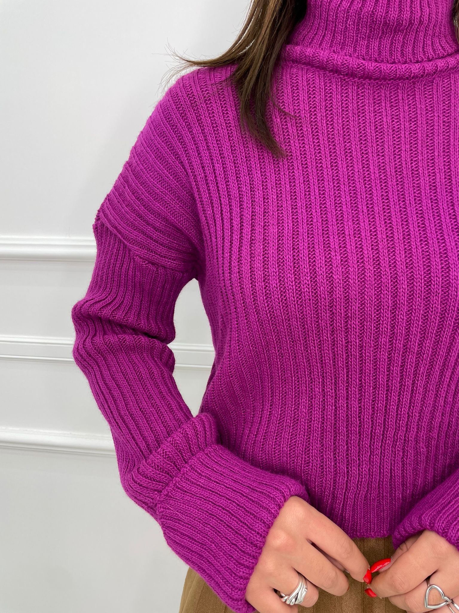 Maglione collo alto con manica con risvolto