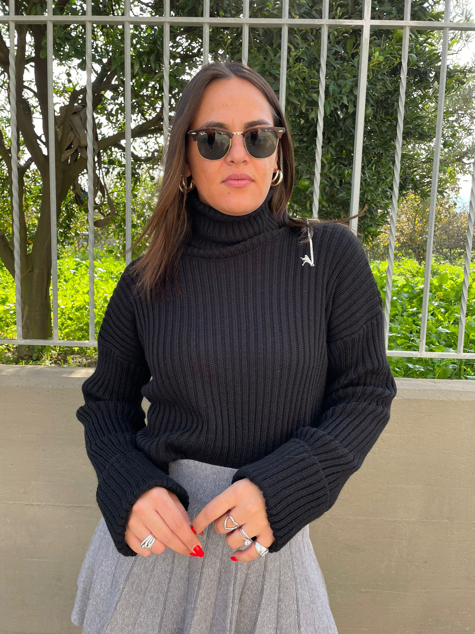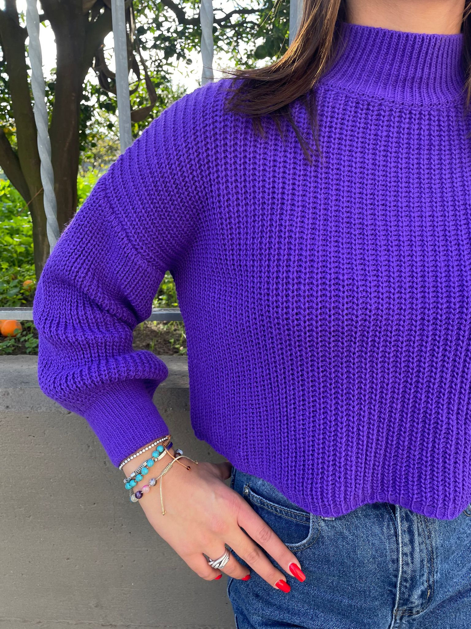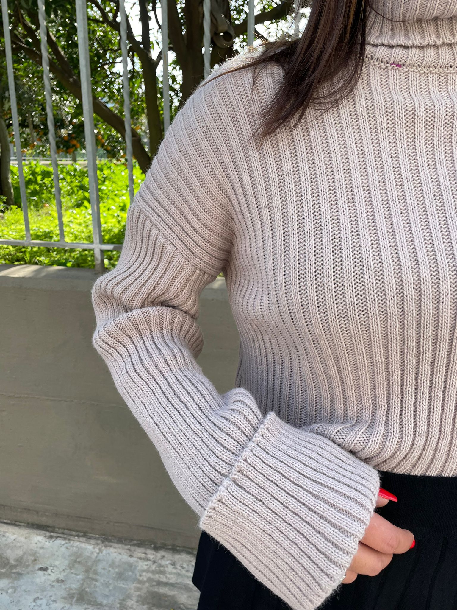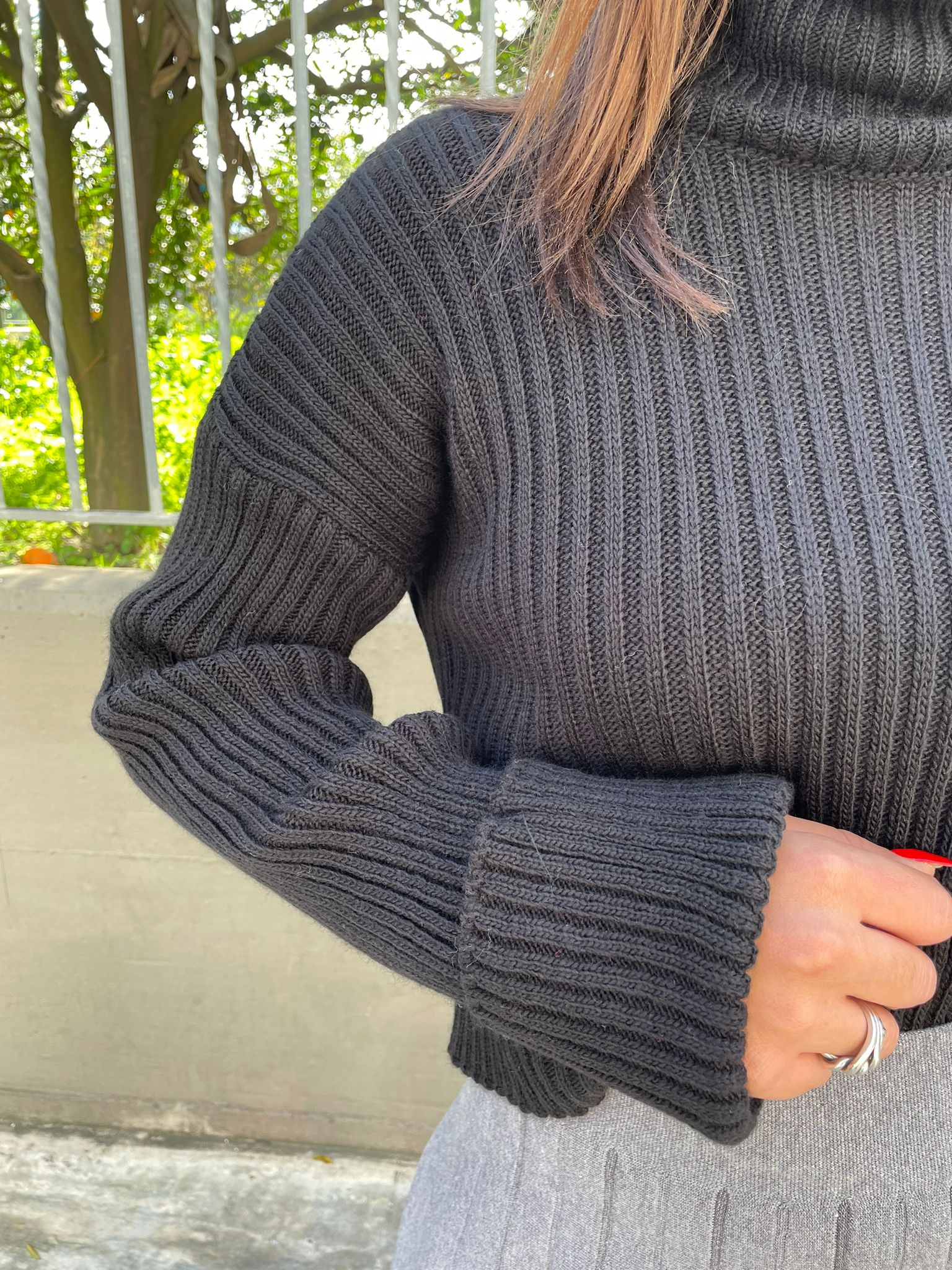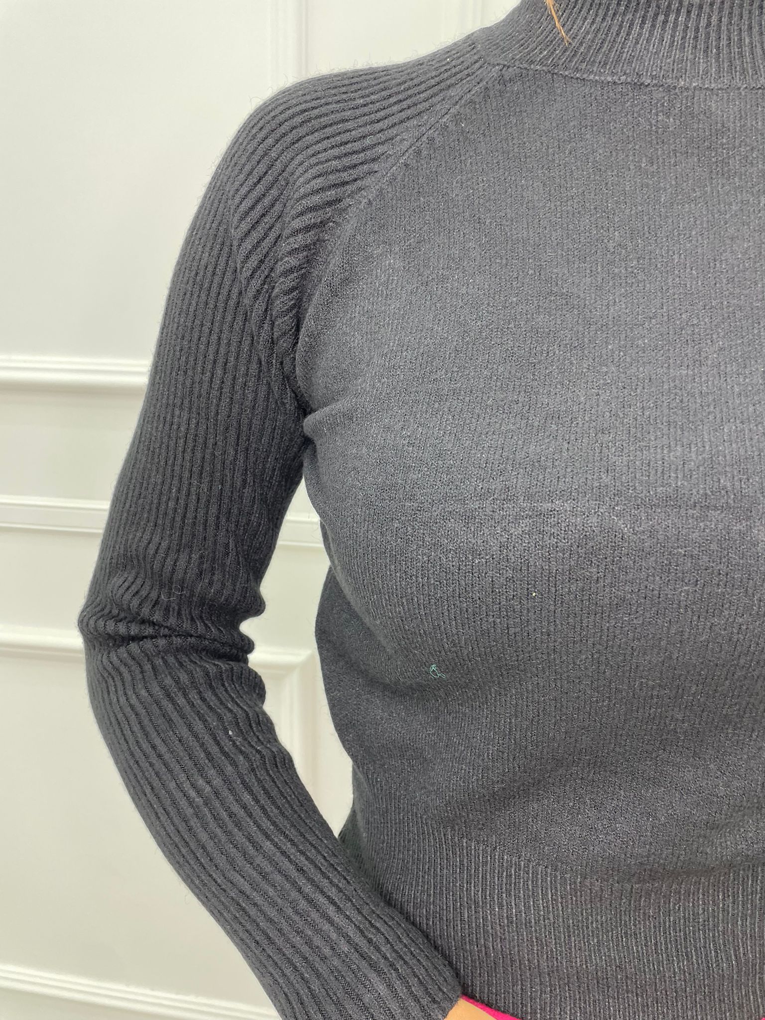 Maglione collo alto con manica con risvolto