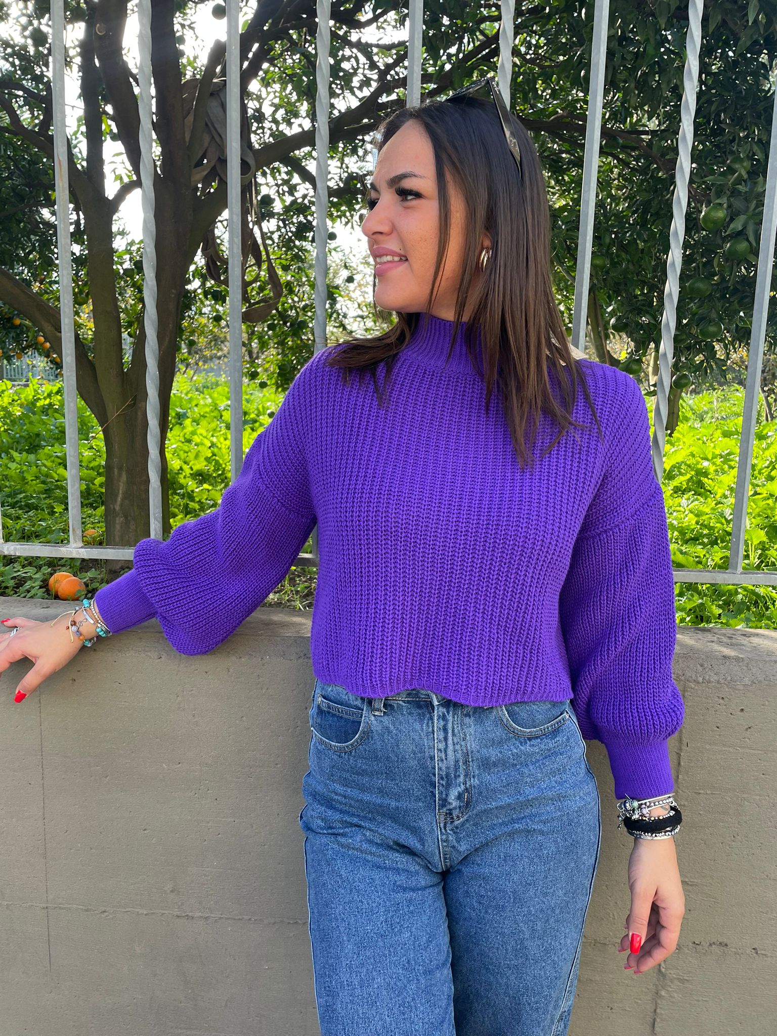 Maglione tinta unita con manica ampia