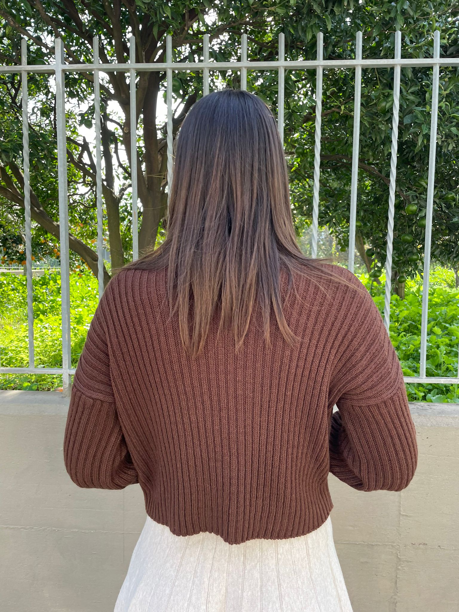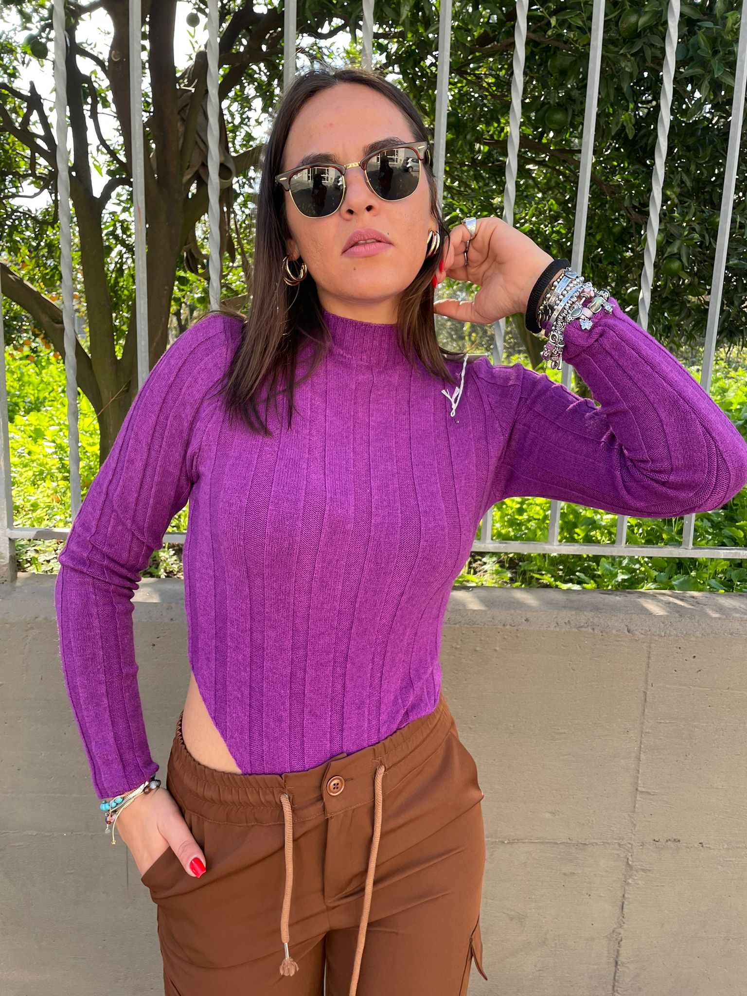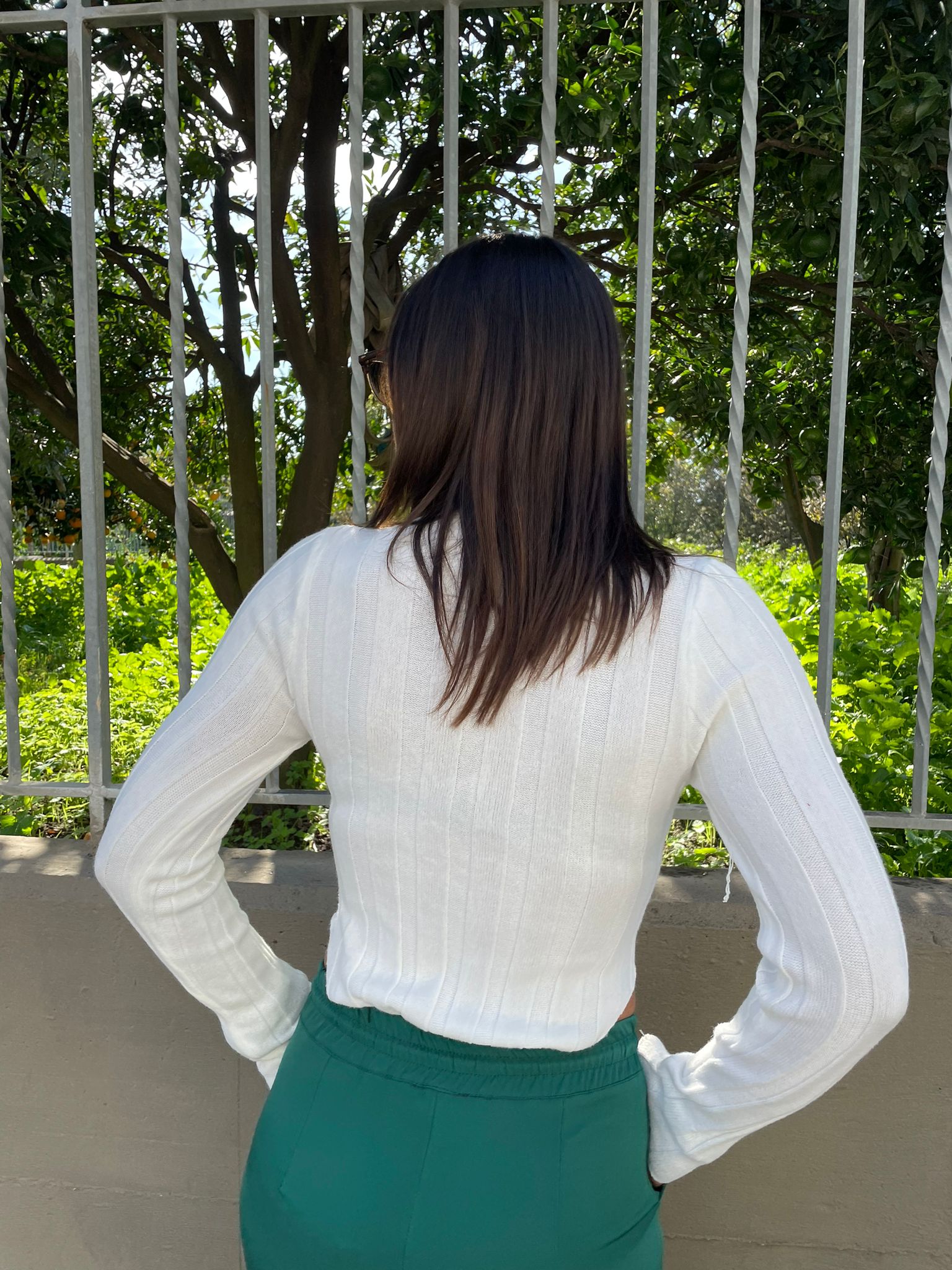 Maglia in filo a costine con apertura e rouches