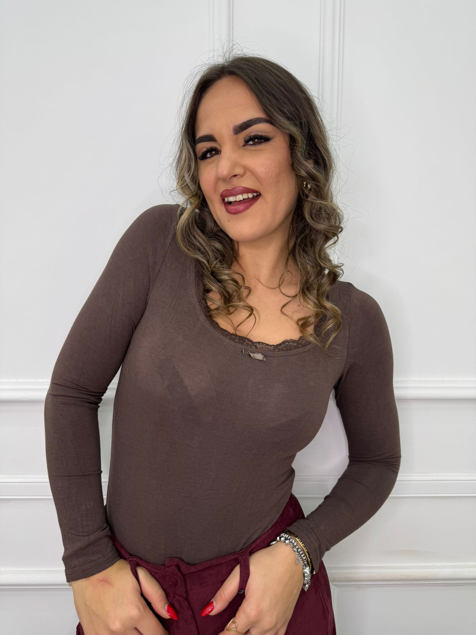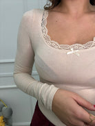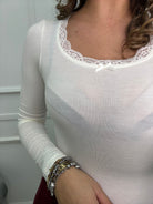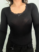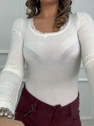 Body in simil cashmere con scollo rotondo e merletto