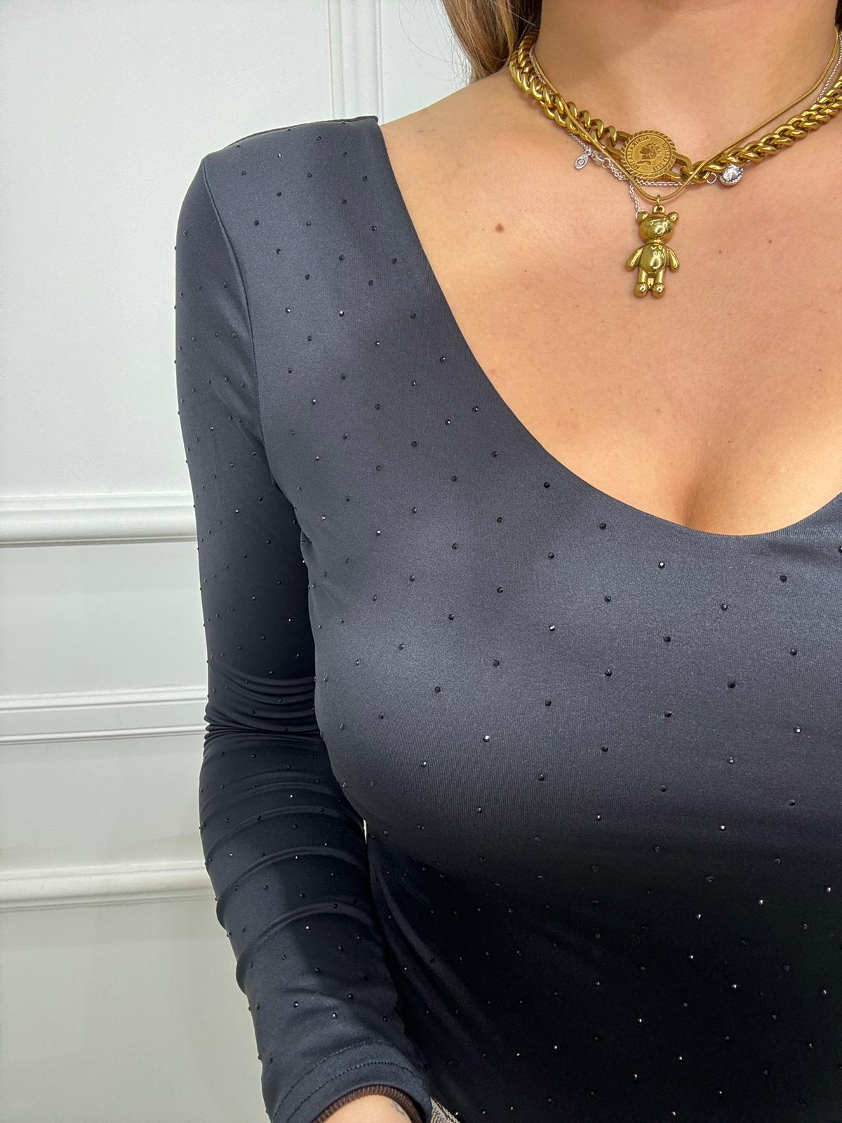 Body scollo a V con brillantini