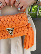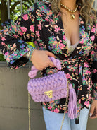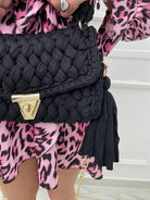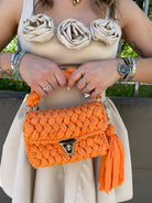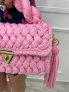 Borsa uncinetto con manico corto e gancio oro