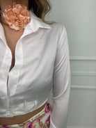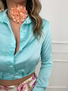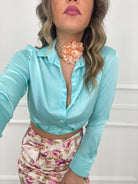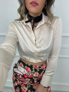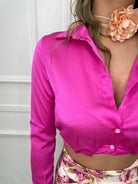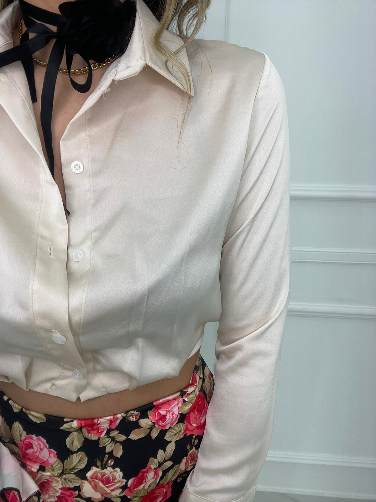 Camicia crop in raso tinta unita