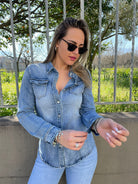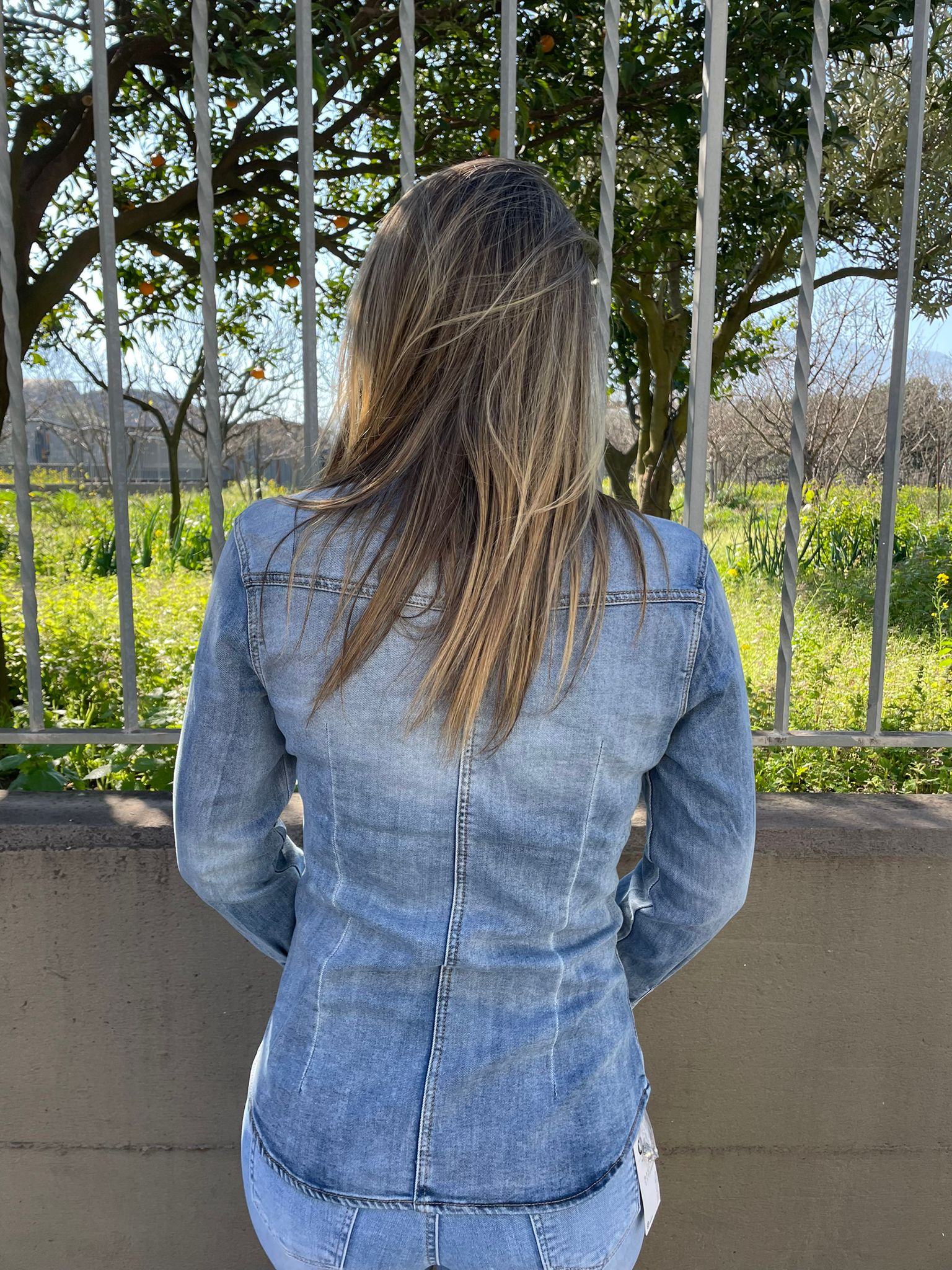 Camicia di jeans lavaggio sfumato con bottoni swarovski