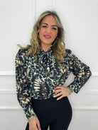Camicia fantasia animalier con fiocco